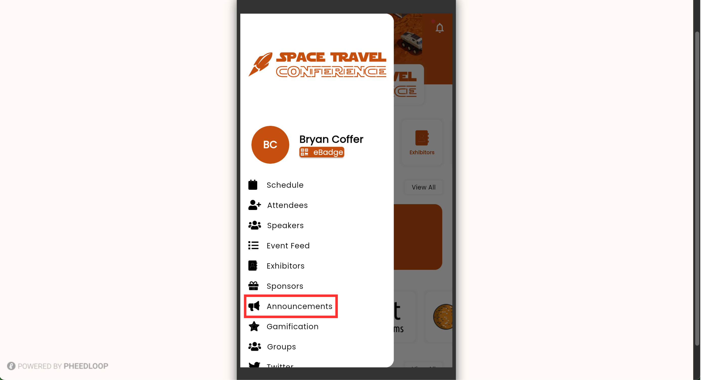 The push notification will now be delivered to the selected attendees. Open the Event App to view the notification.