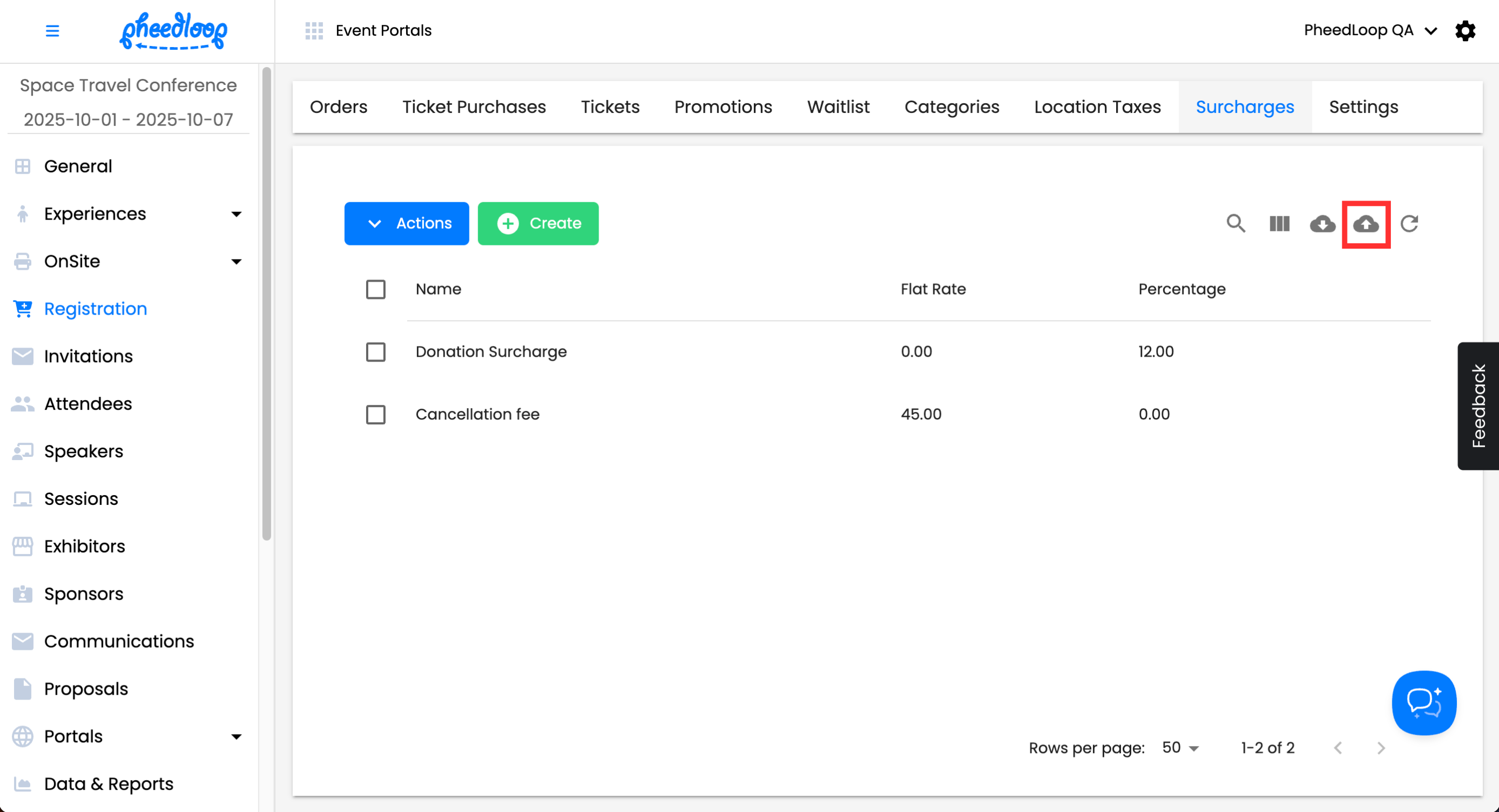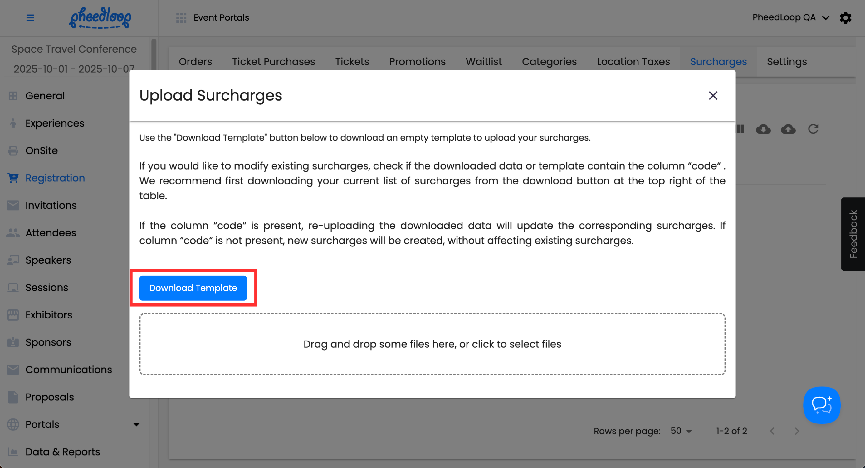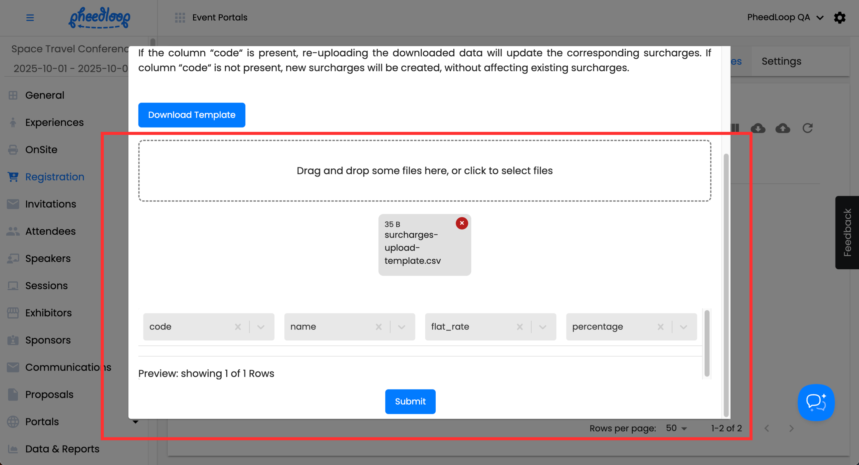 Multiple Surcharges can be uploaded simultaneously into the Event Dashboard.
