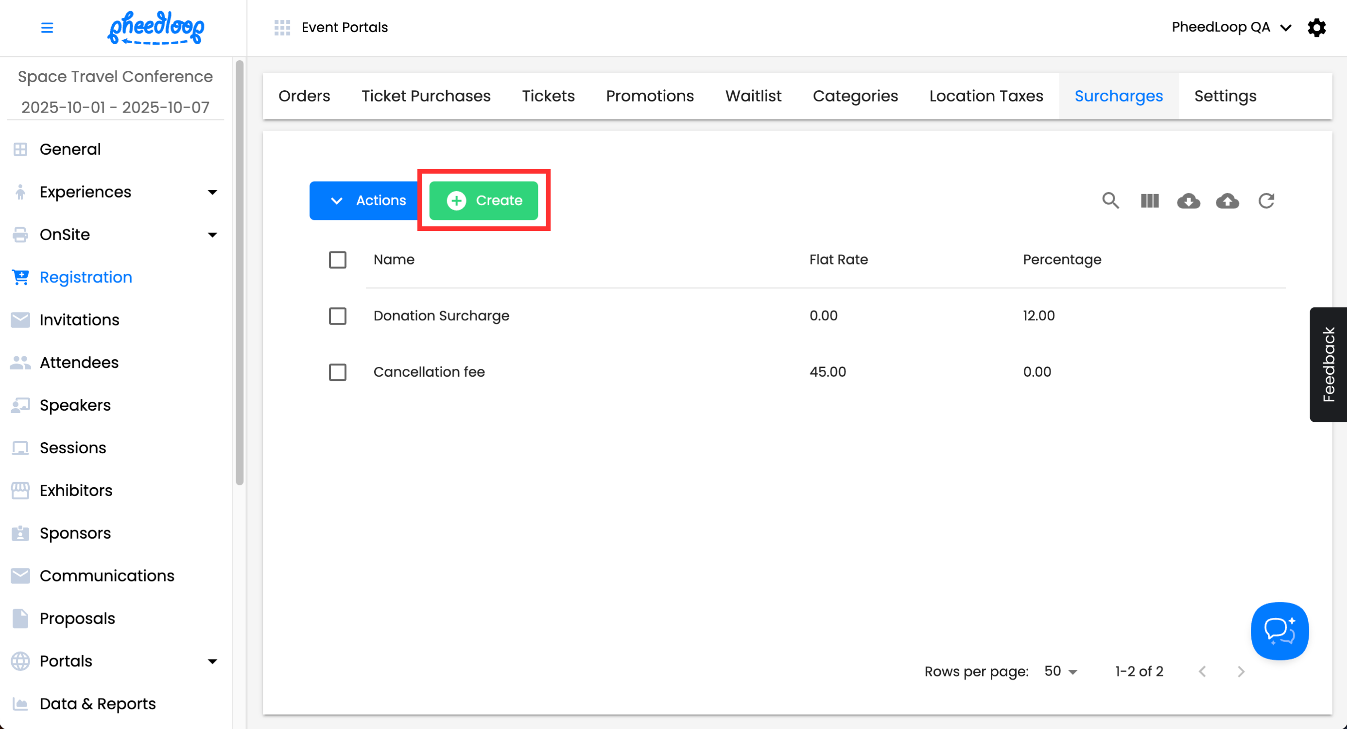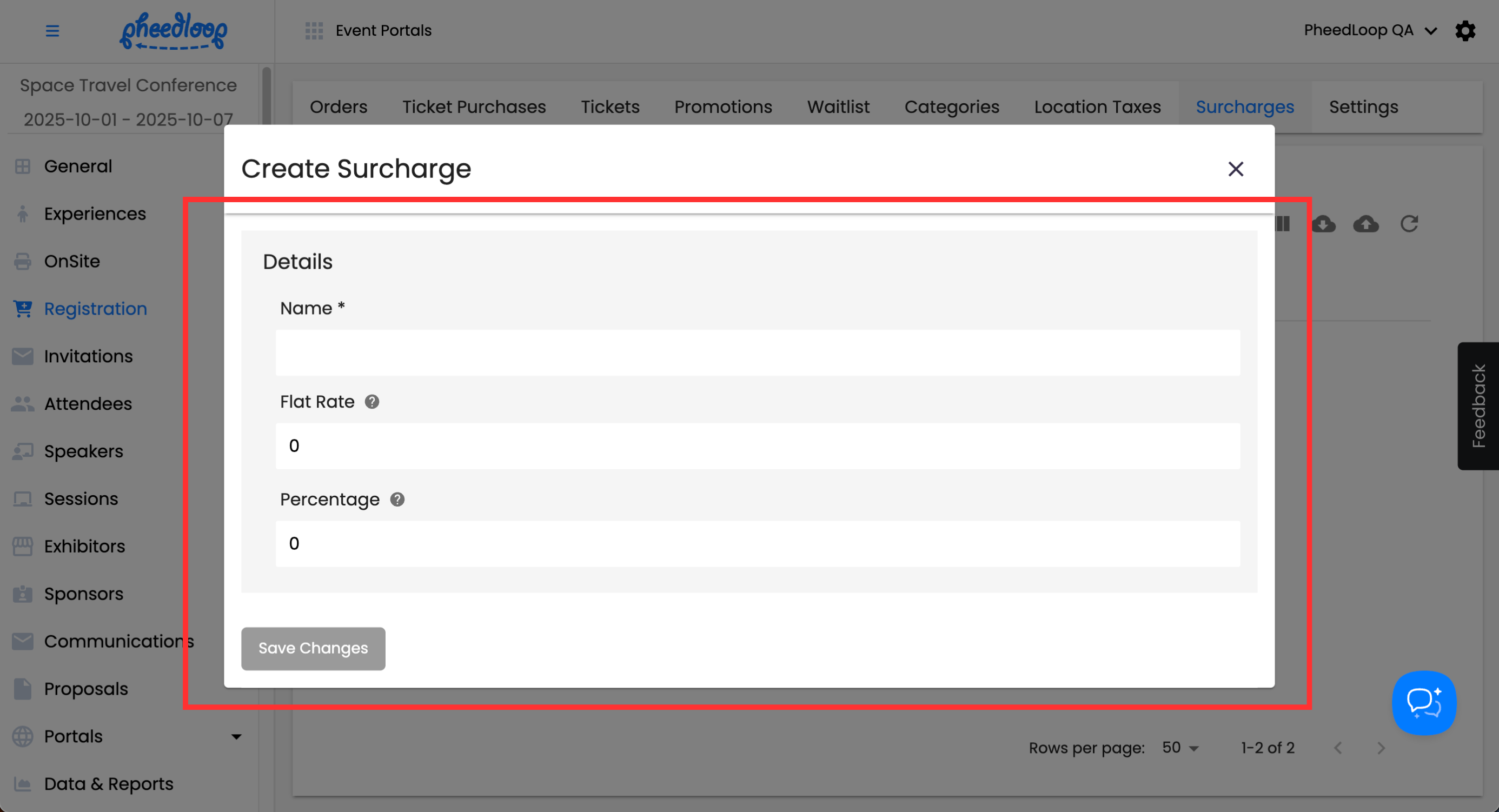 - From the Event Dashboard, navigate to Registration > Surcharges