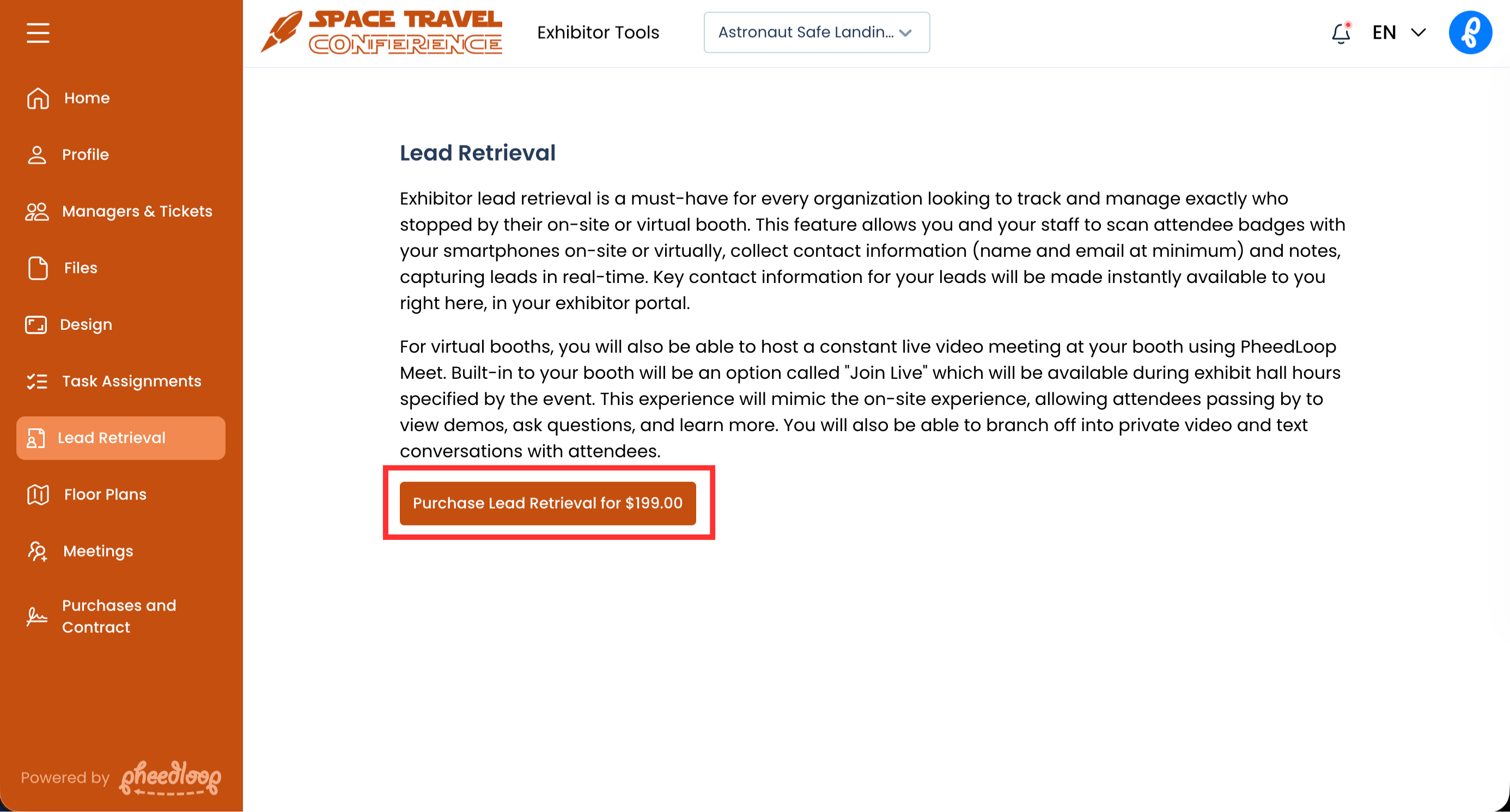 Lead Retrieval can be purchased directly from the Exhibitor Tools page of the Event Portal.