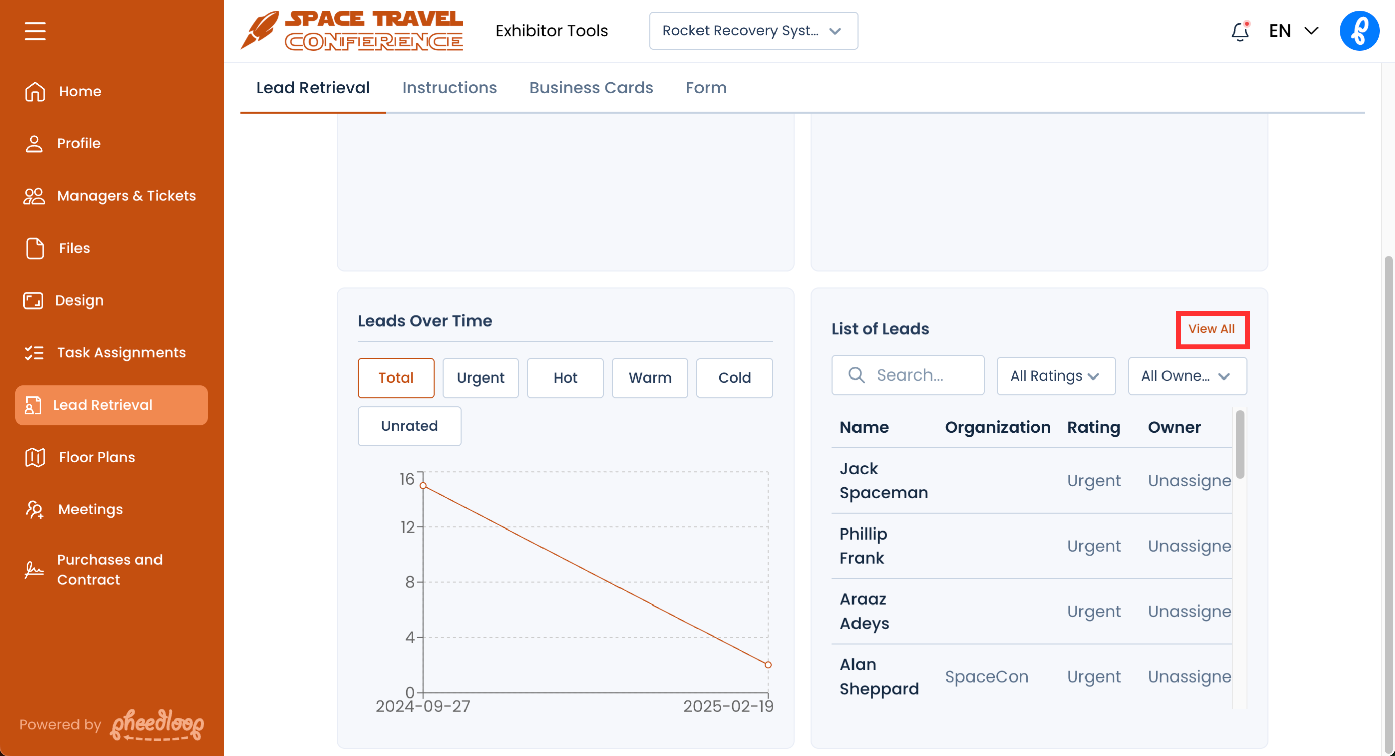 - From the Exhibitor Portal, navigate to the Lead Retrieval tab