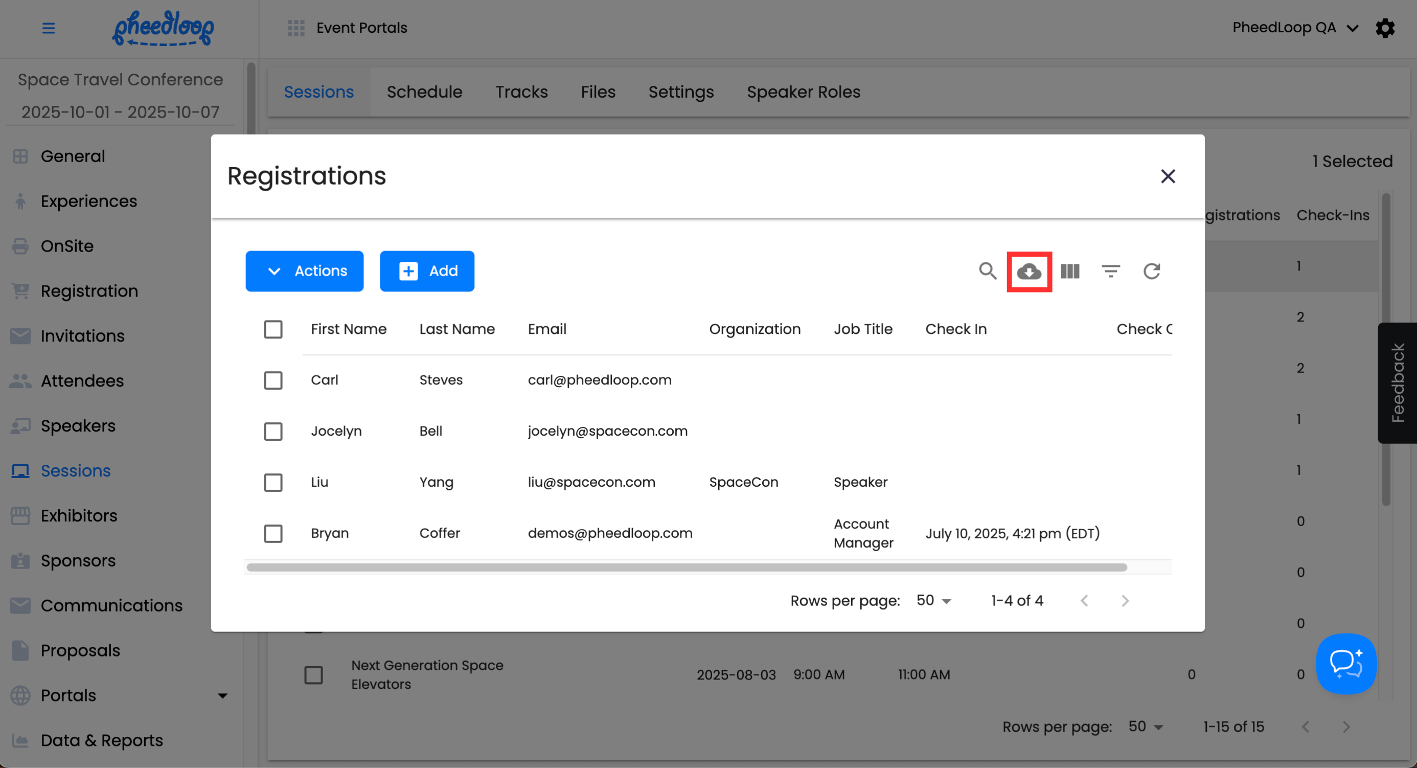 Once your event is complete, you have the option to extract all the session registration information in one report through a custom report.