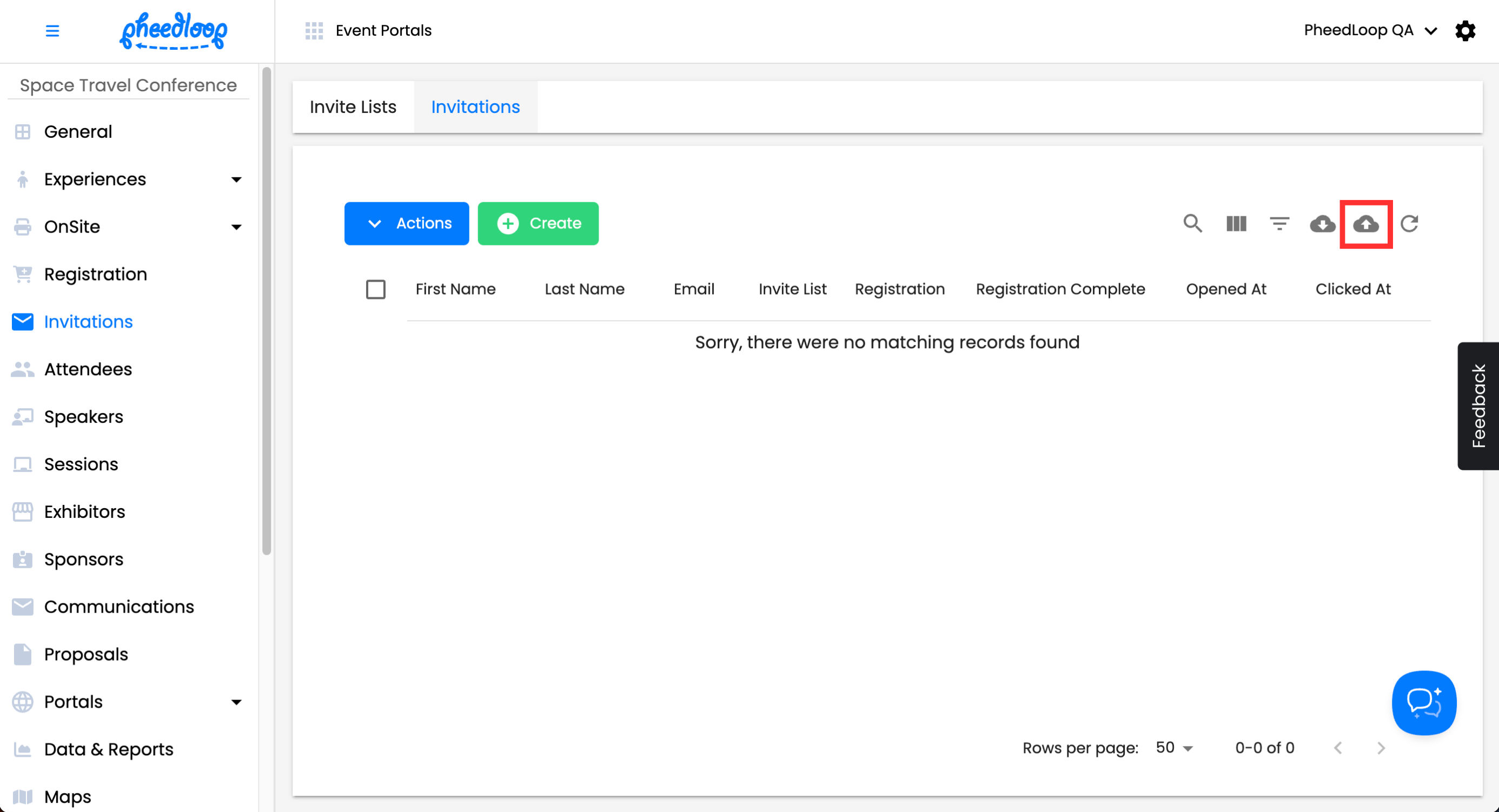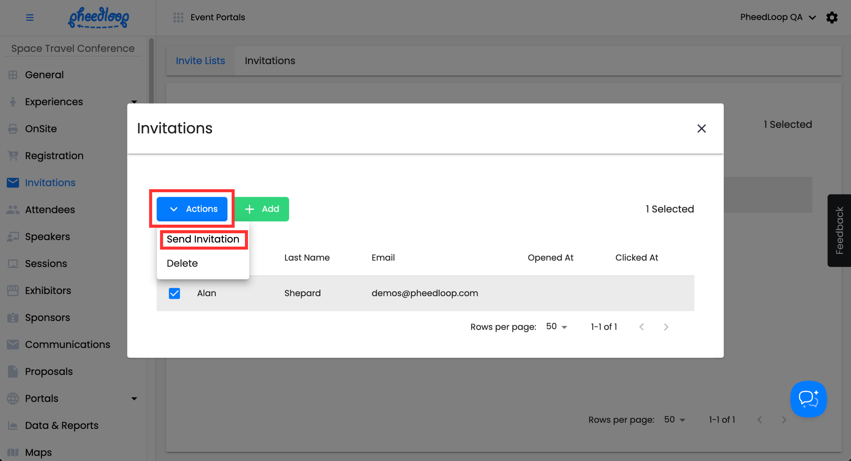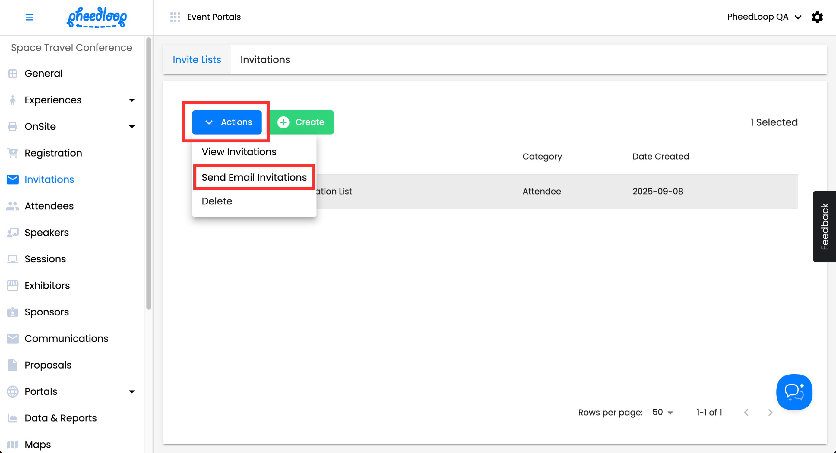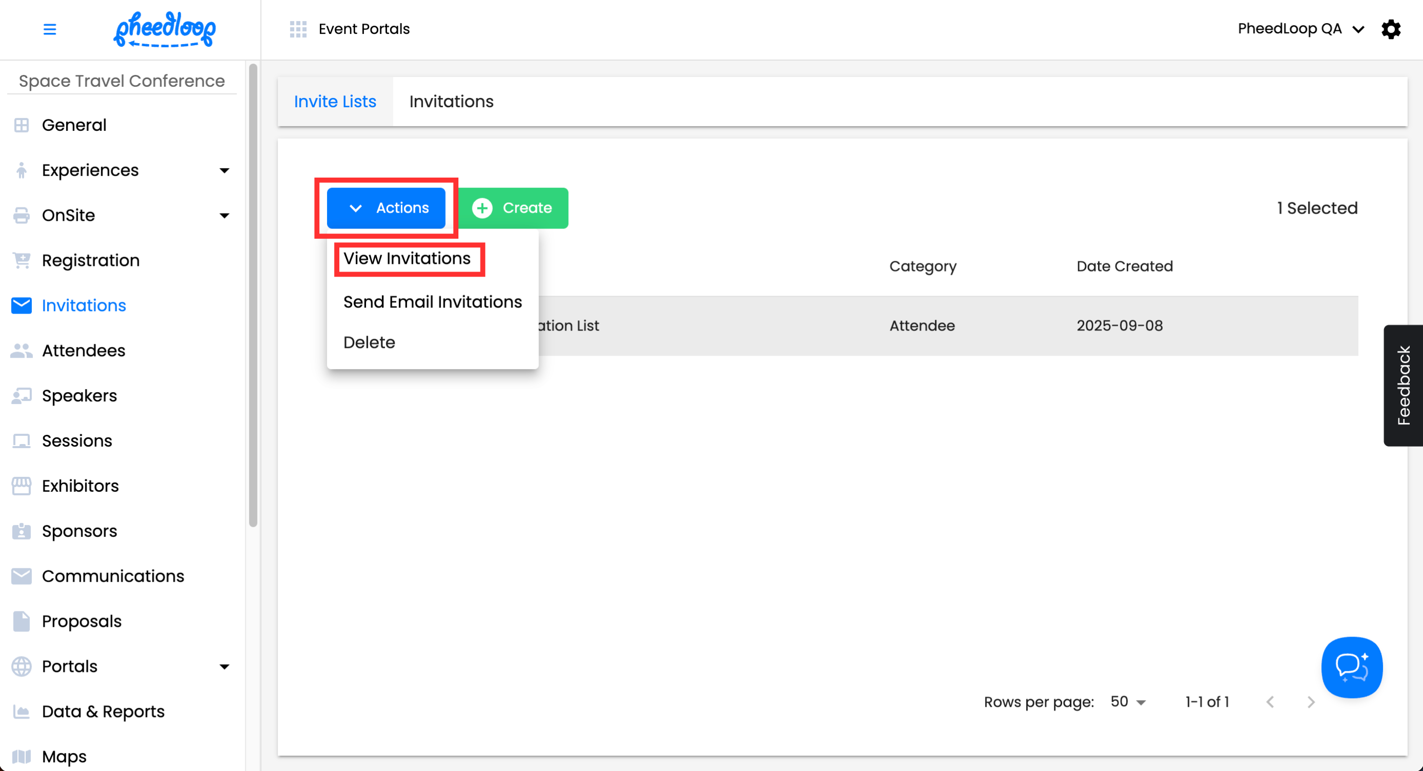 Select the Invite List you wish to use and above the Invite Lists table, select Actions > View Invitations
