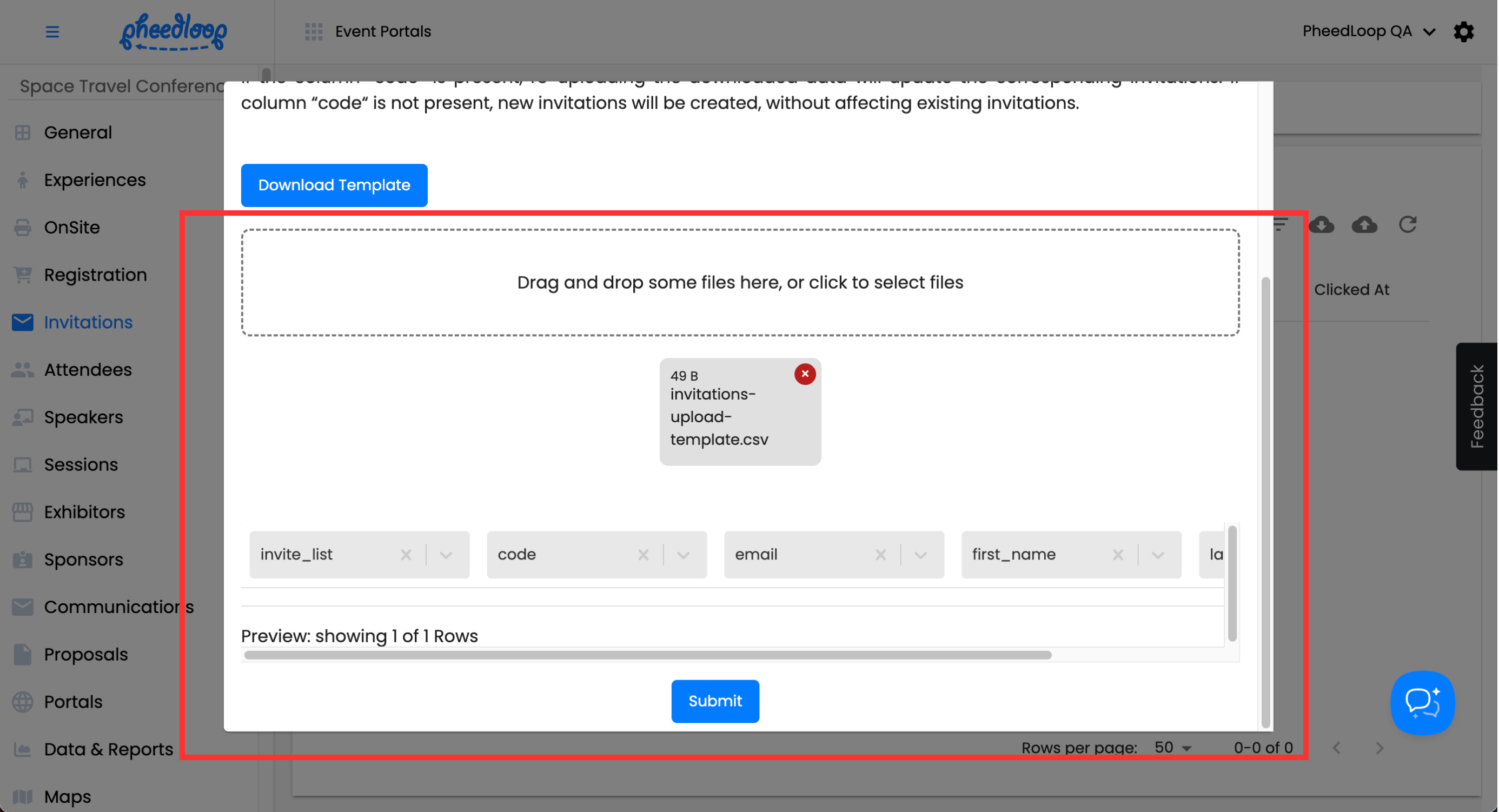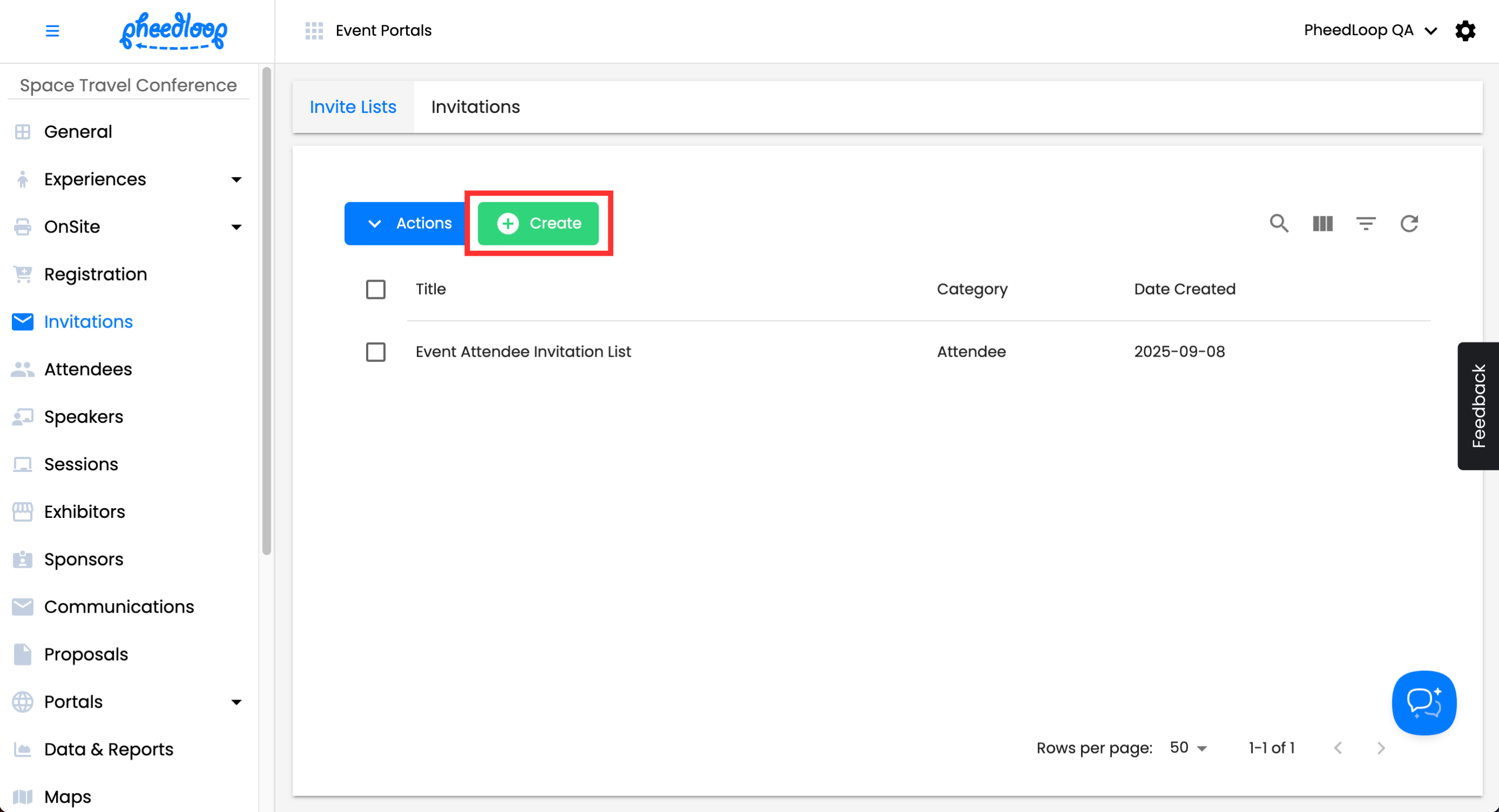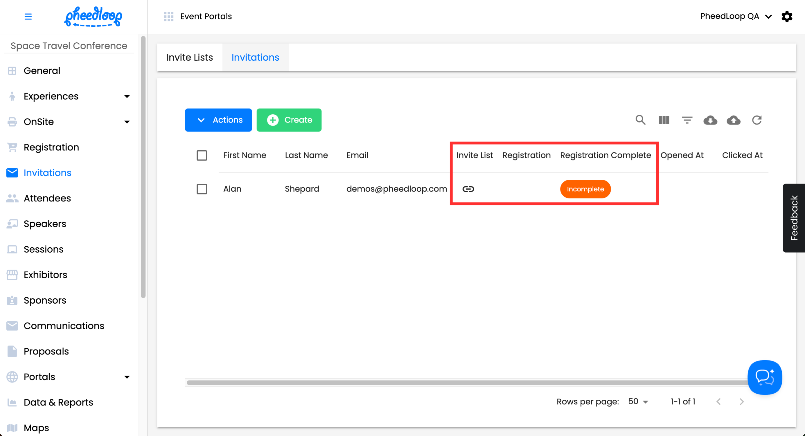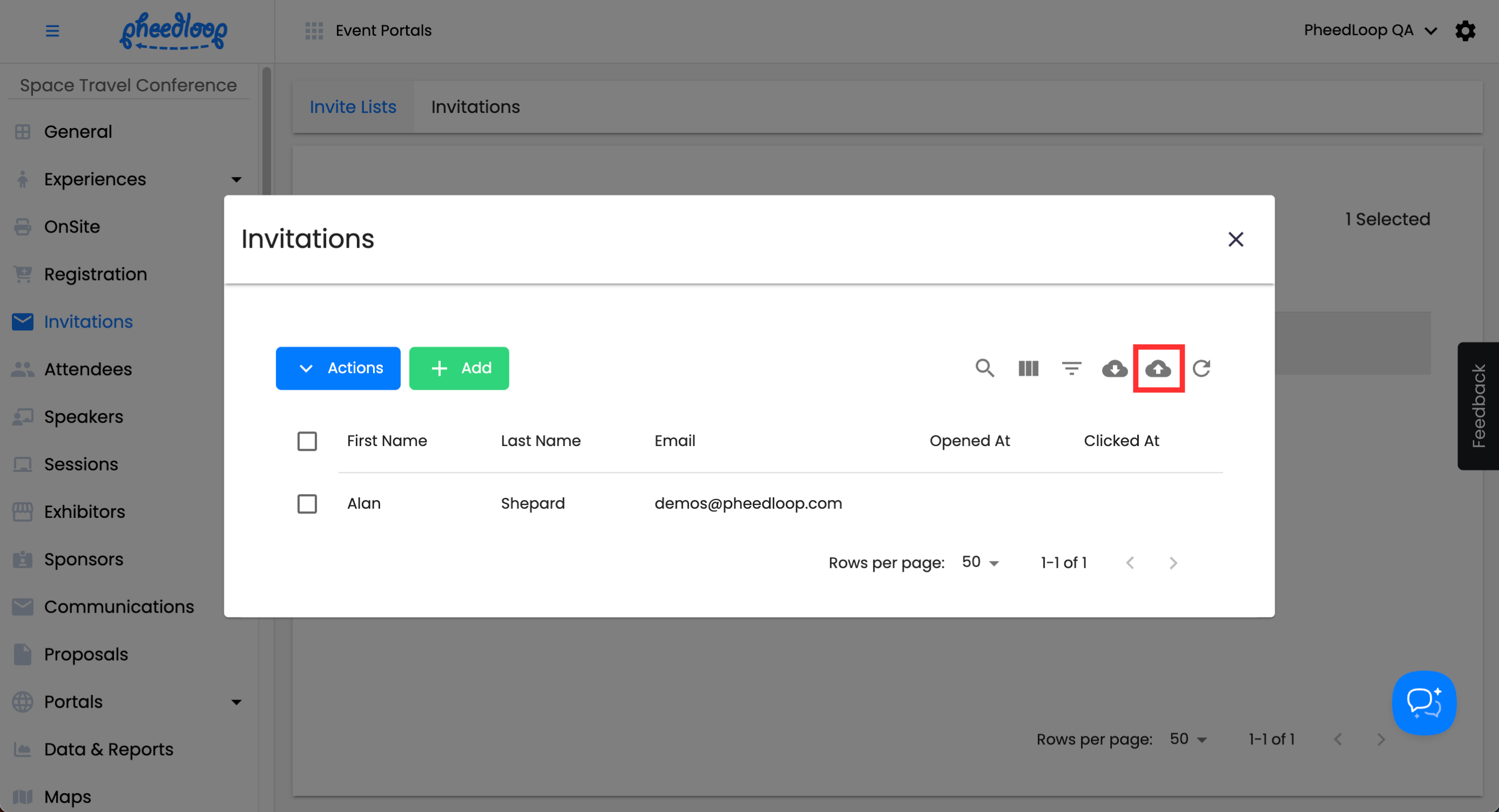 Select the Invite List you wish to use and above the Invite Lists table, select Actions > View Invitations
