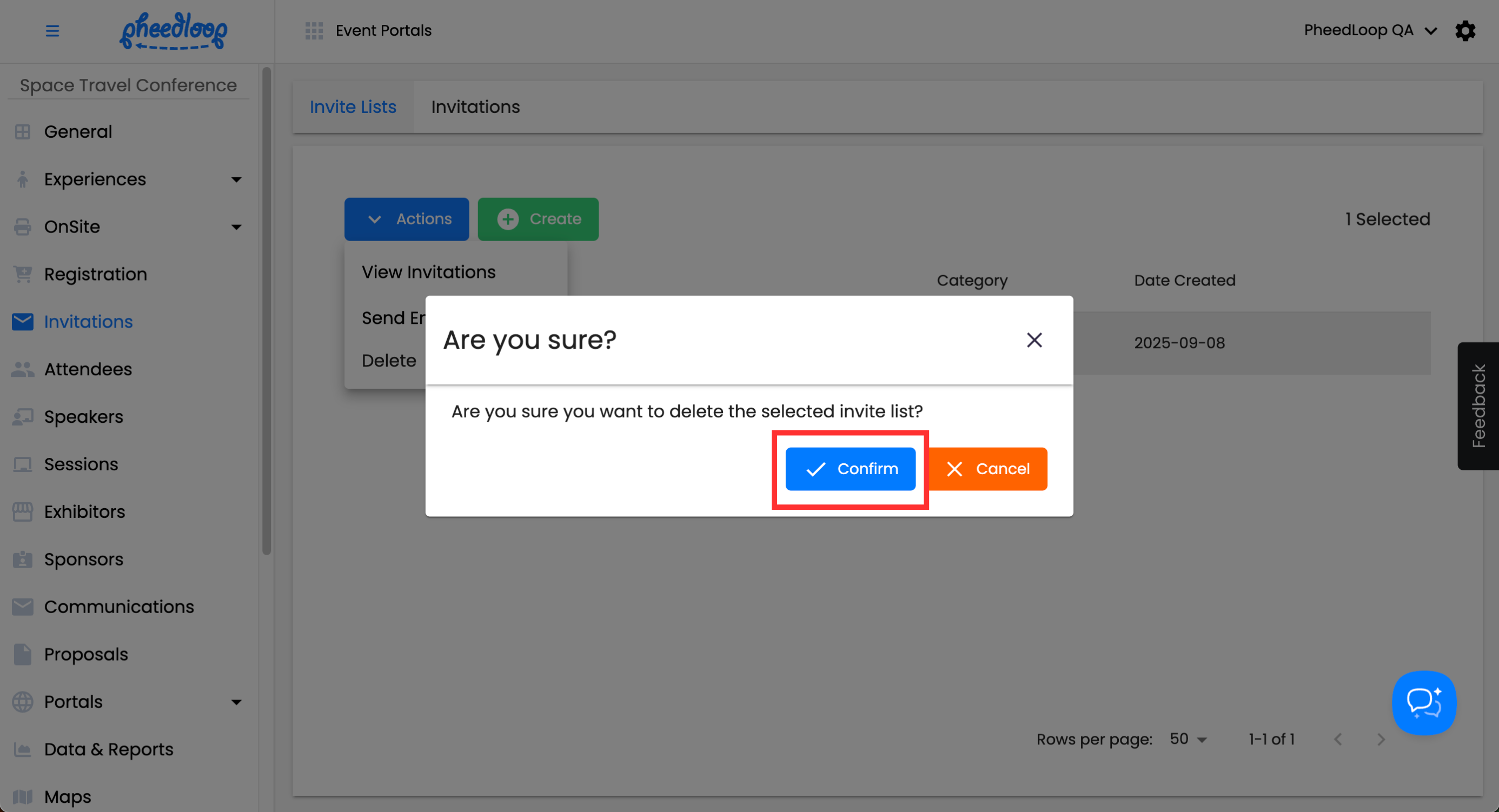 You can also delete an Invite List entirely if no longer necessary, though we do not recommend doing this for record-keeping purposes. Deleting an Invite List will remove all Invitees associated with the list. If an Invitee is listed in multiple Invite Lists, they will remain until all relevant lists have been deleted.