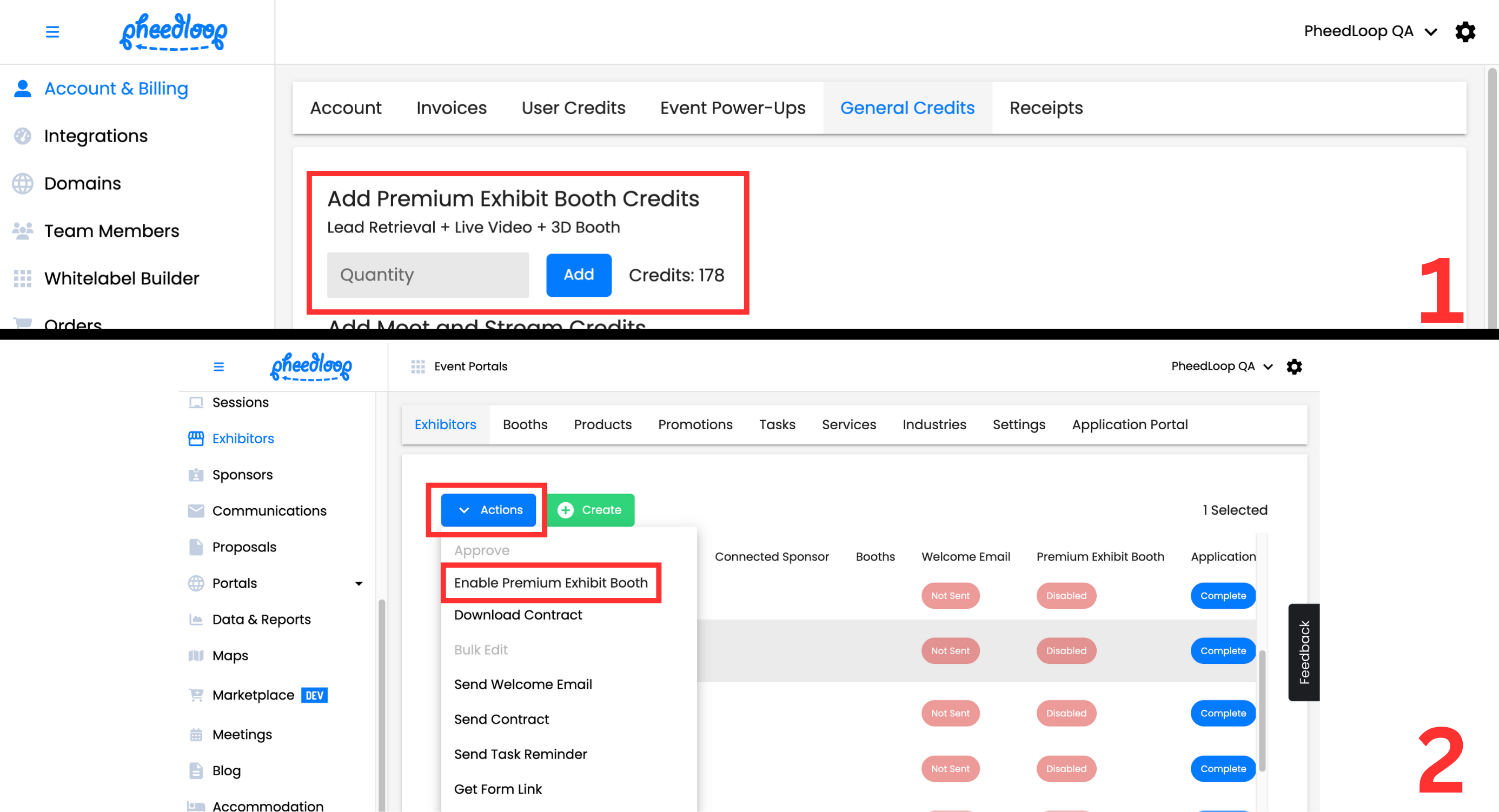 For Event Admins paying from the Event Dashboard, they will need to apply the credit to their desired exhibitor.