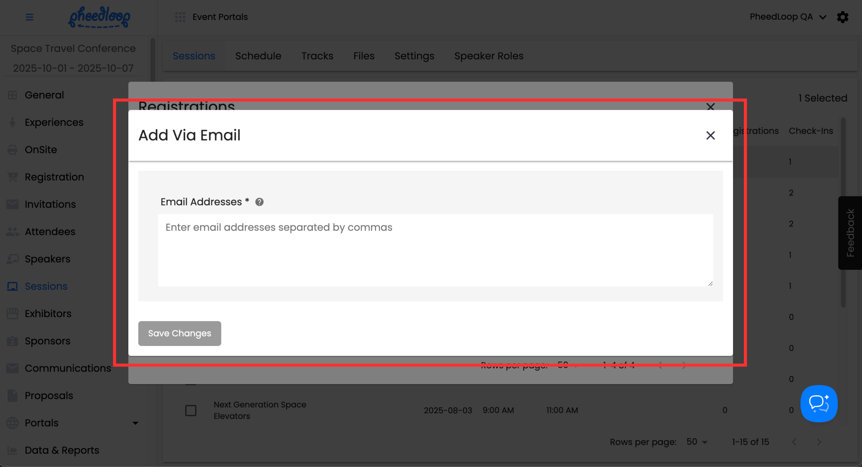- Under the Email Addresses field, paste your list of attendee emails you wish to register for the session