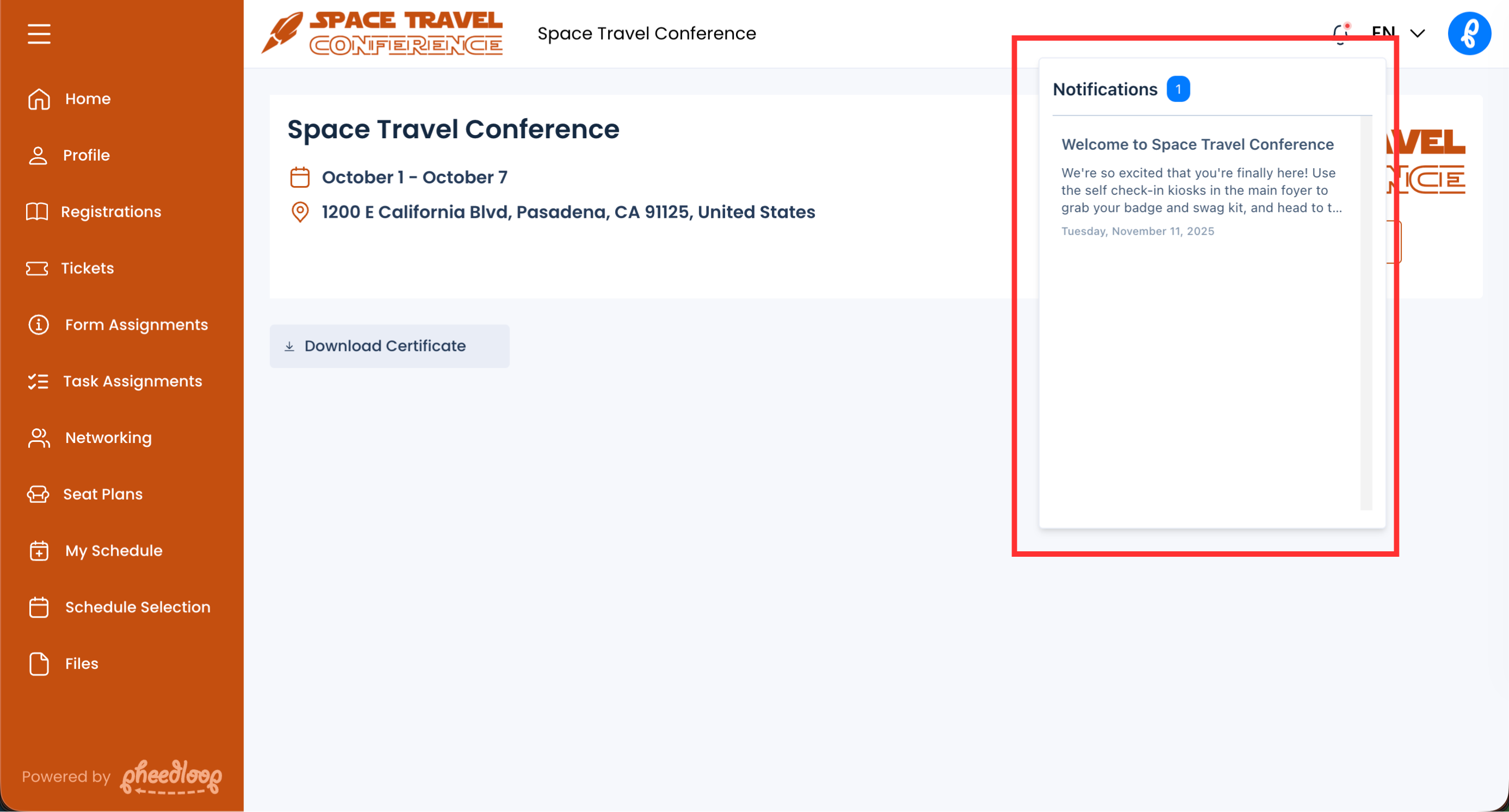 The Event Portal is your central hub for all event information. Here, you can access and adjust your session schedule, ticket information, task assignments, and more! Understanding the Event Portal is crucial for your event success as an attendee. This article will walk you through the important features of the Event Portal.