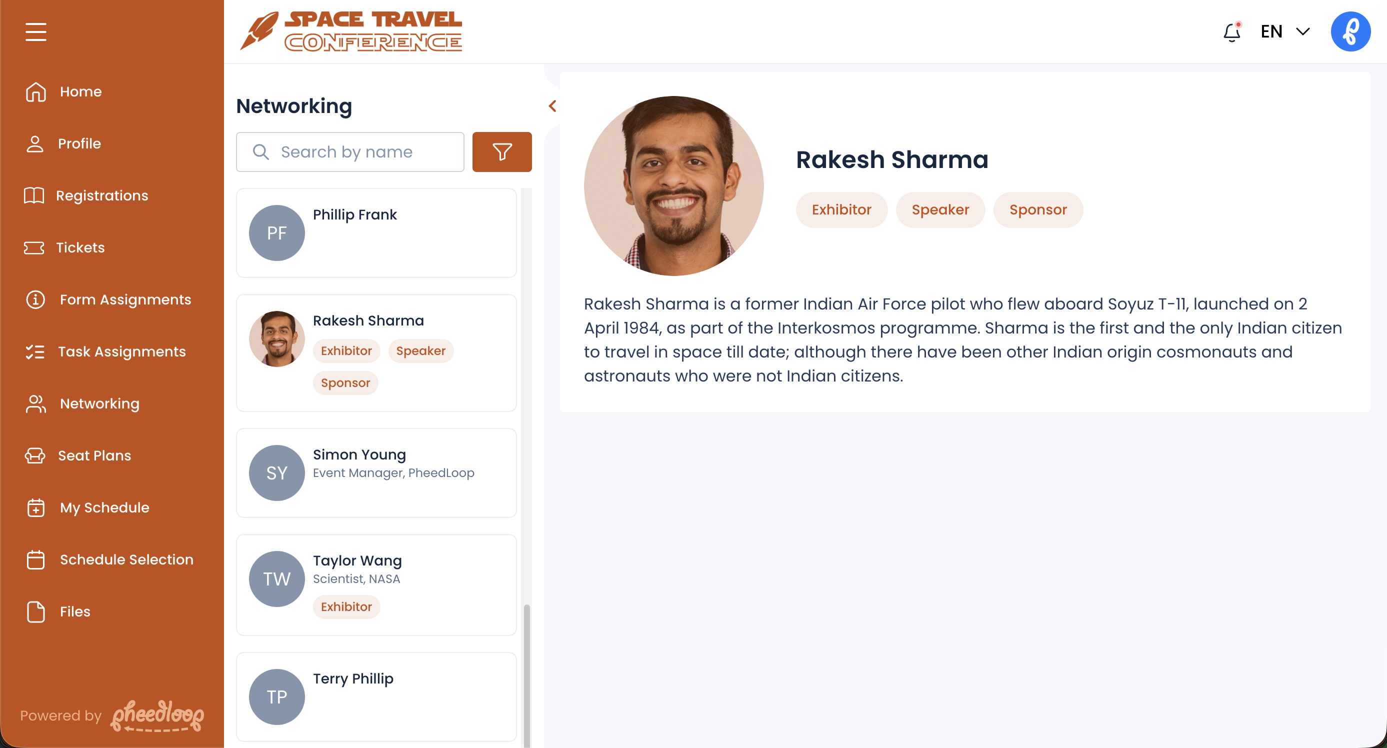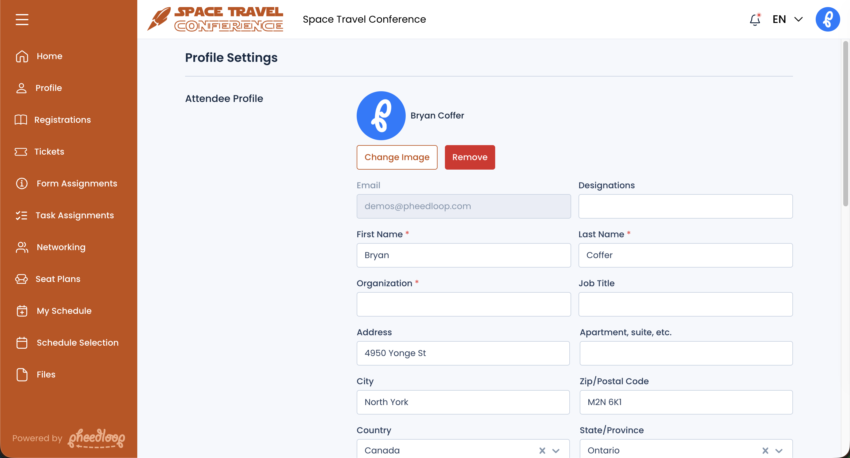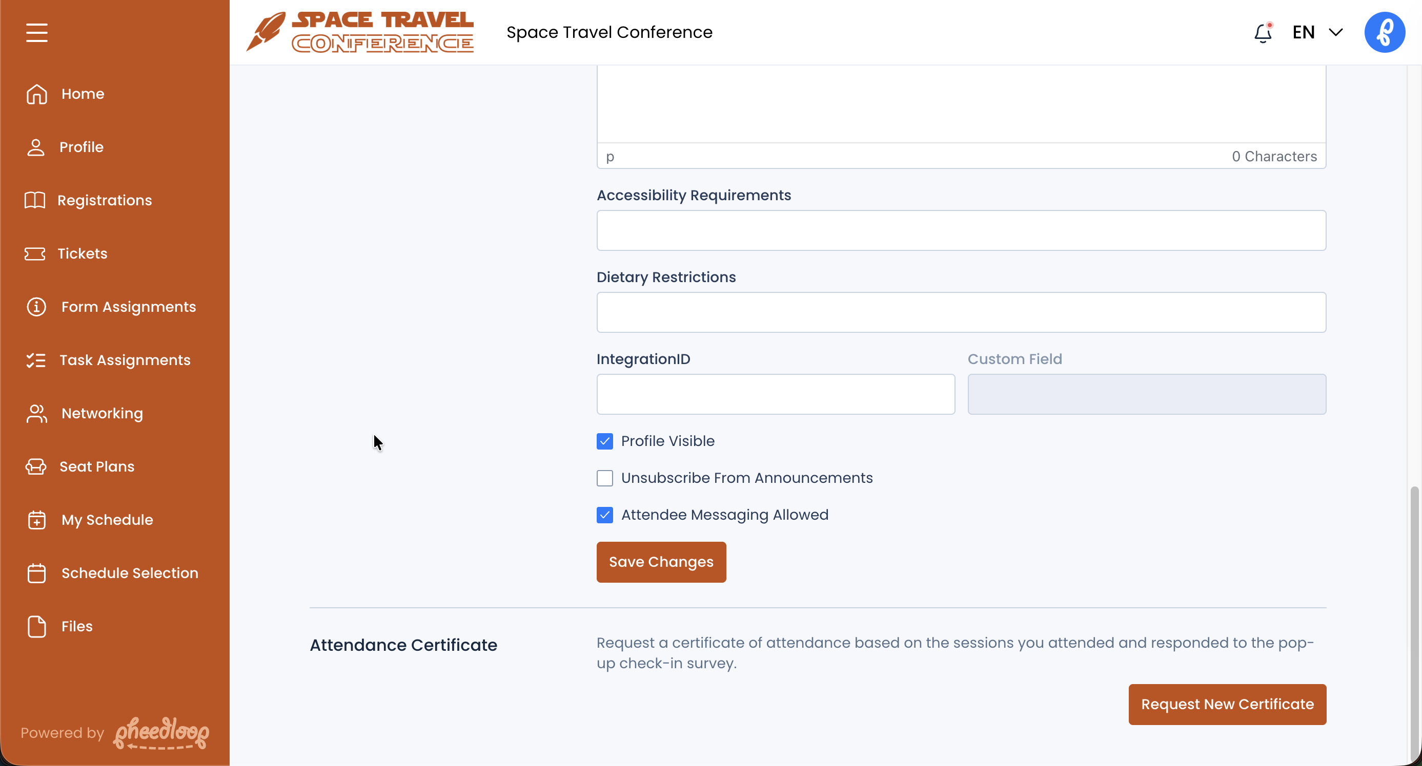 The Profile page is where you can customize attendee information, including editing your contact details.