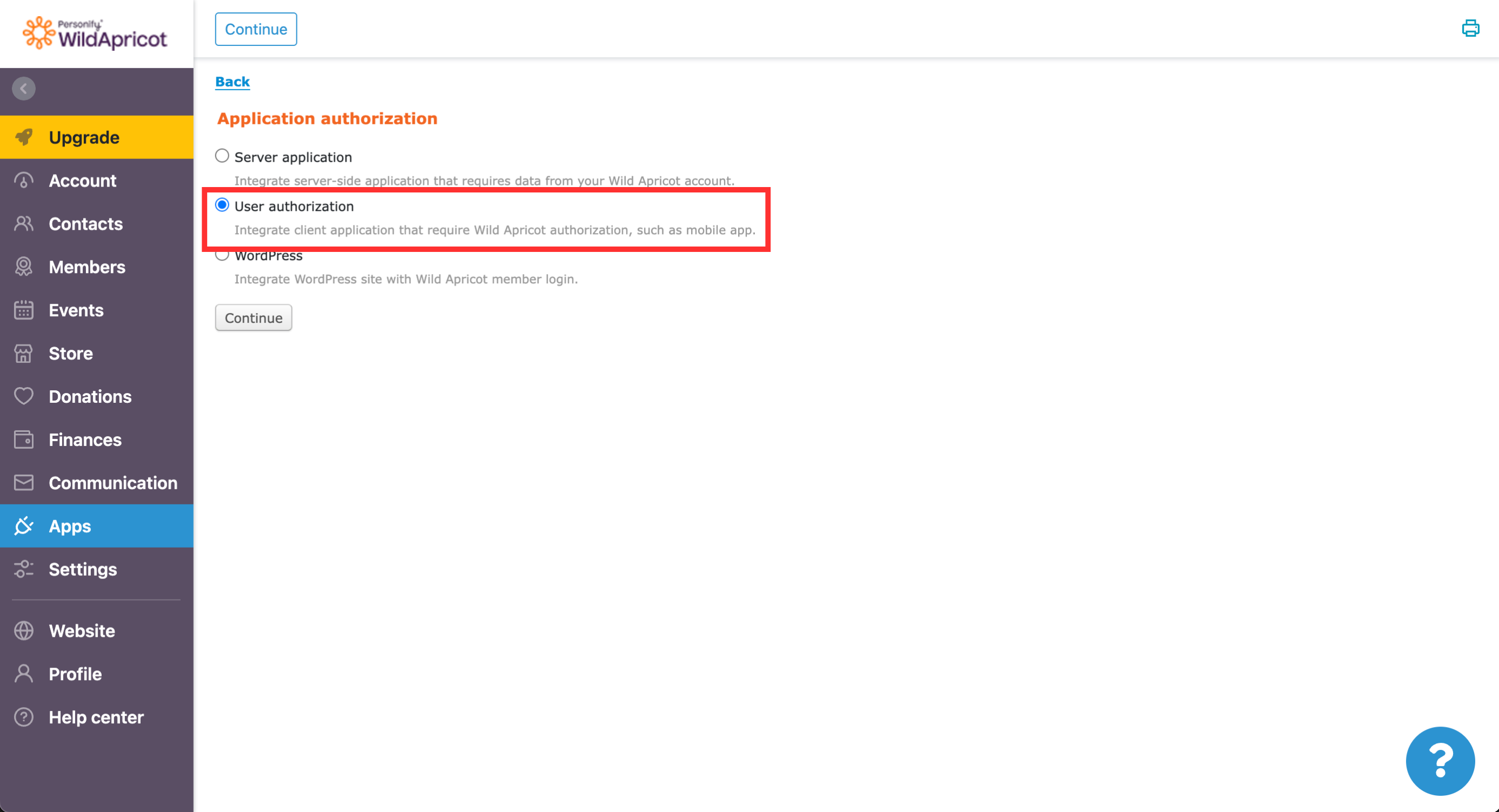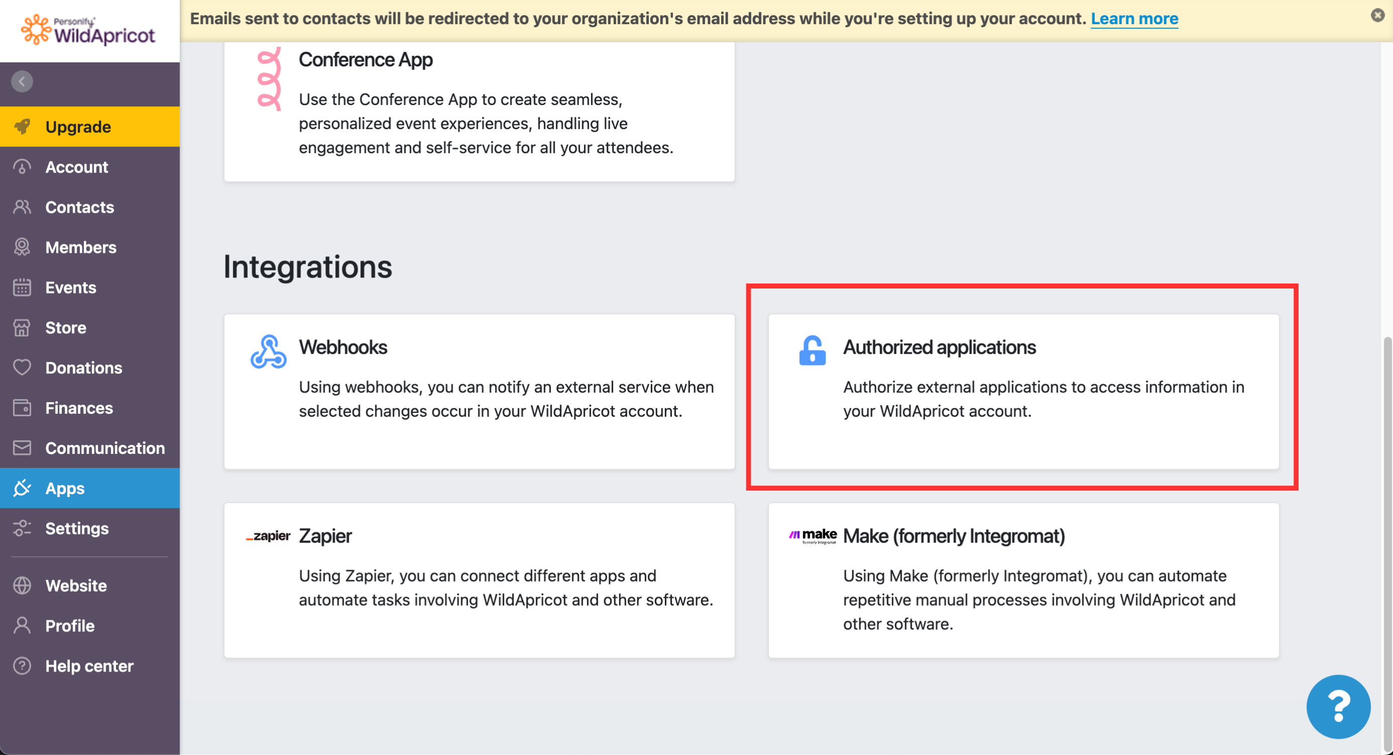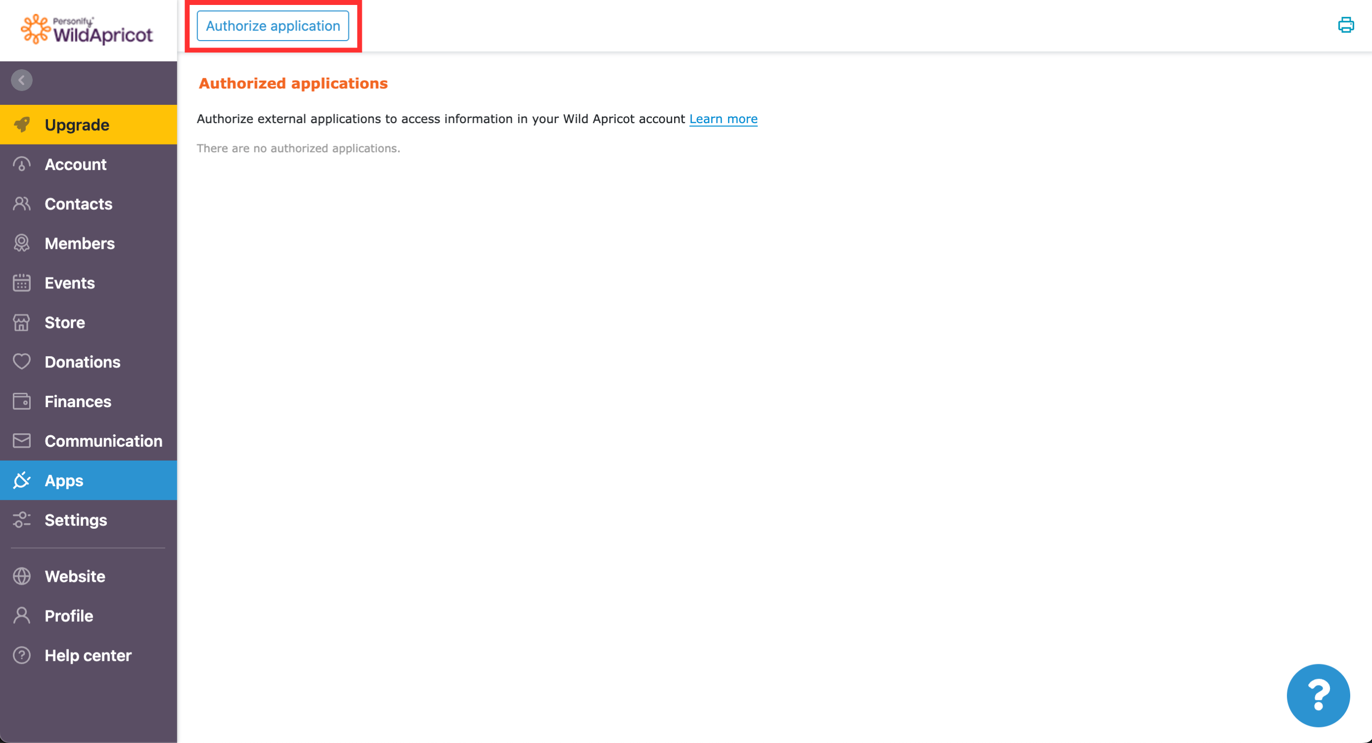 From the Wild Apricot Dashboard, navigate to Apps > Authorized Applications