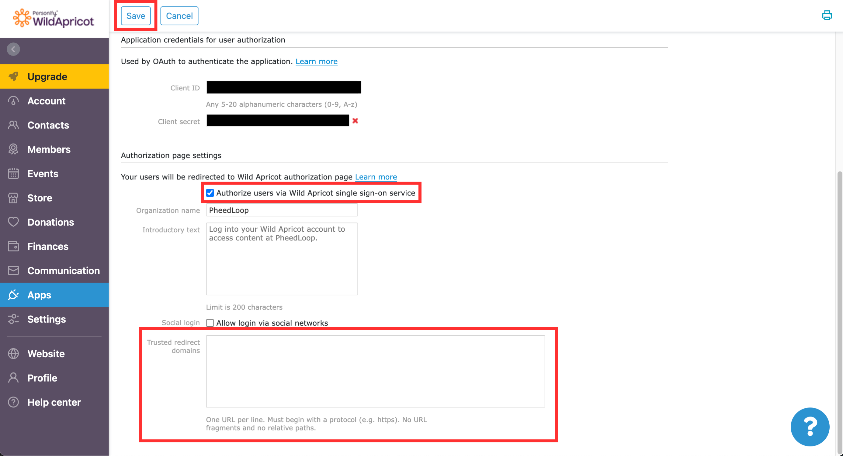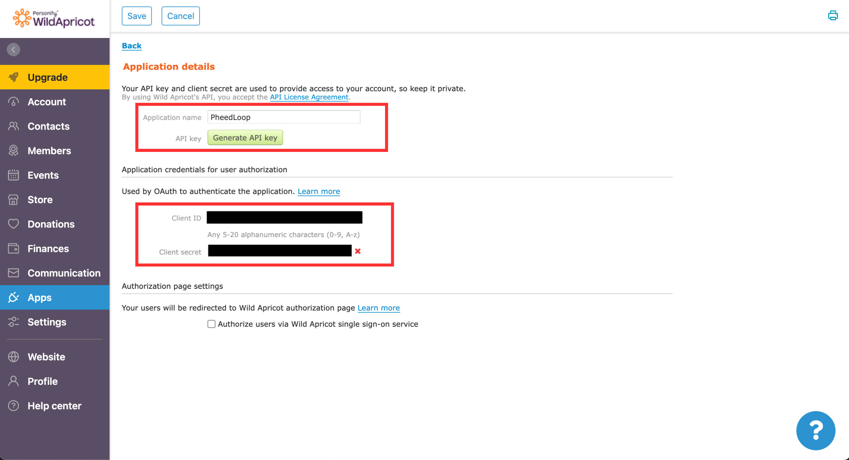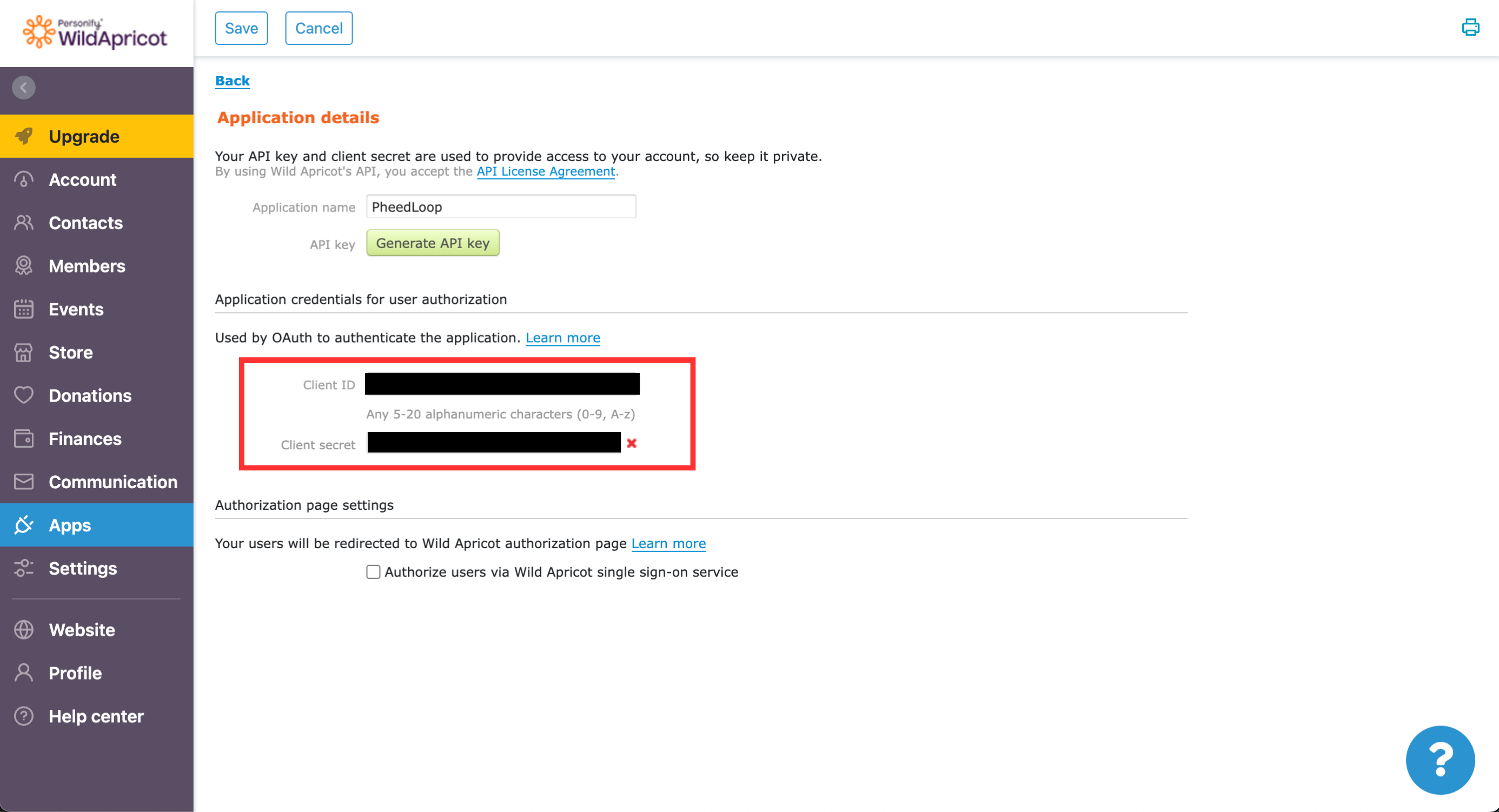 You will now need to copy over your Wild Apricot Client ID, Client Secret, and Authorize URL