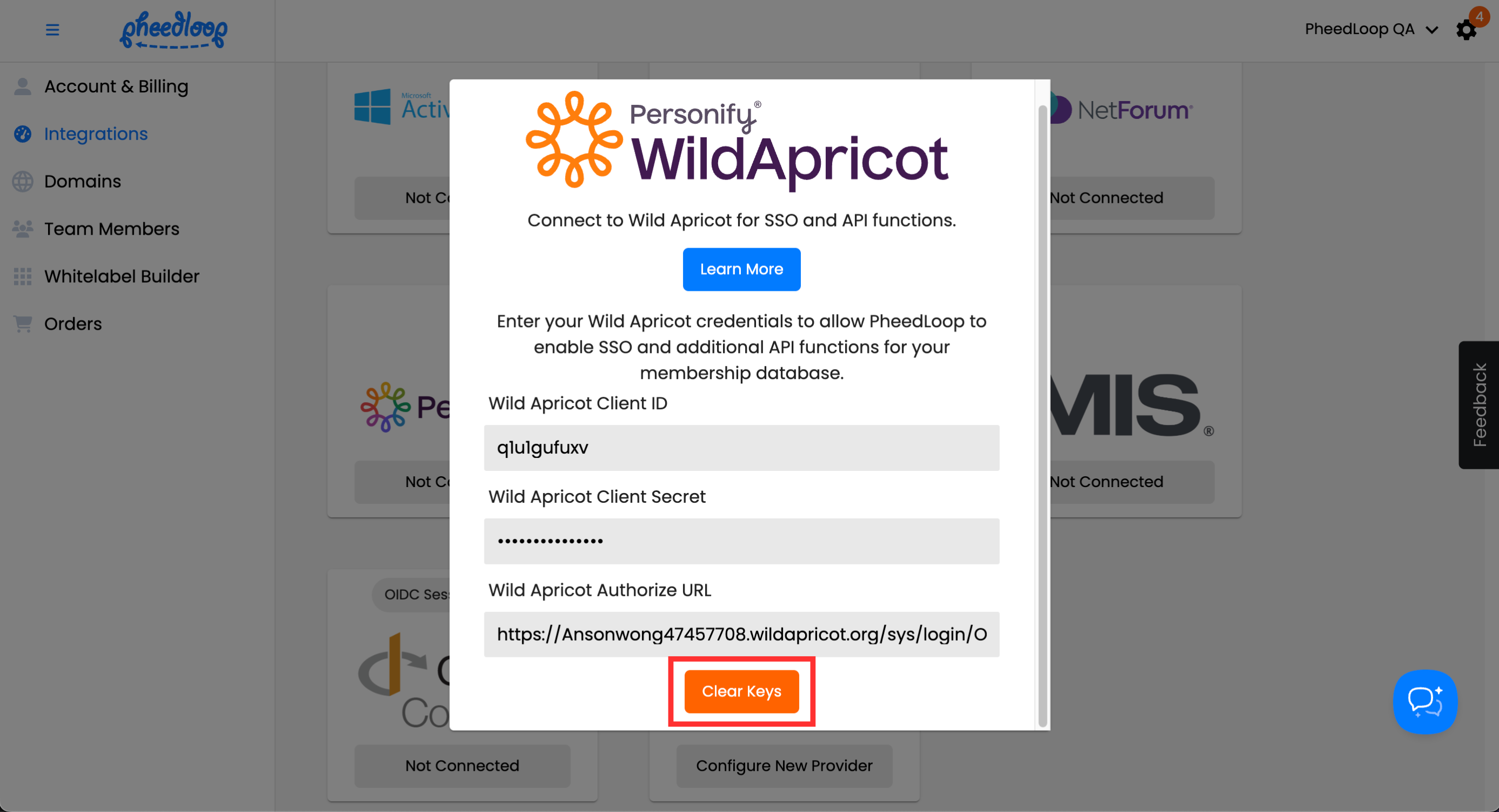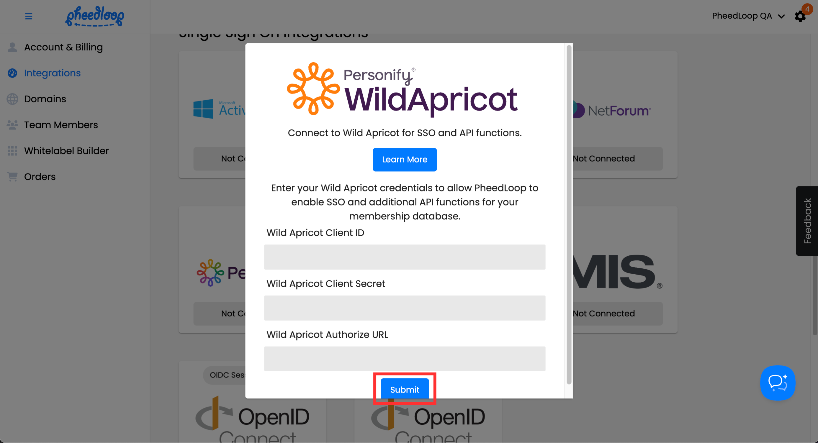 At this point, you will have completed all the configuration steps necessary on Wild Apricot. Now that this is done, you need to copy and paste certain information to PheedLoop before this process can be complete.