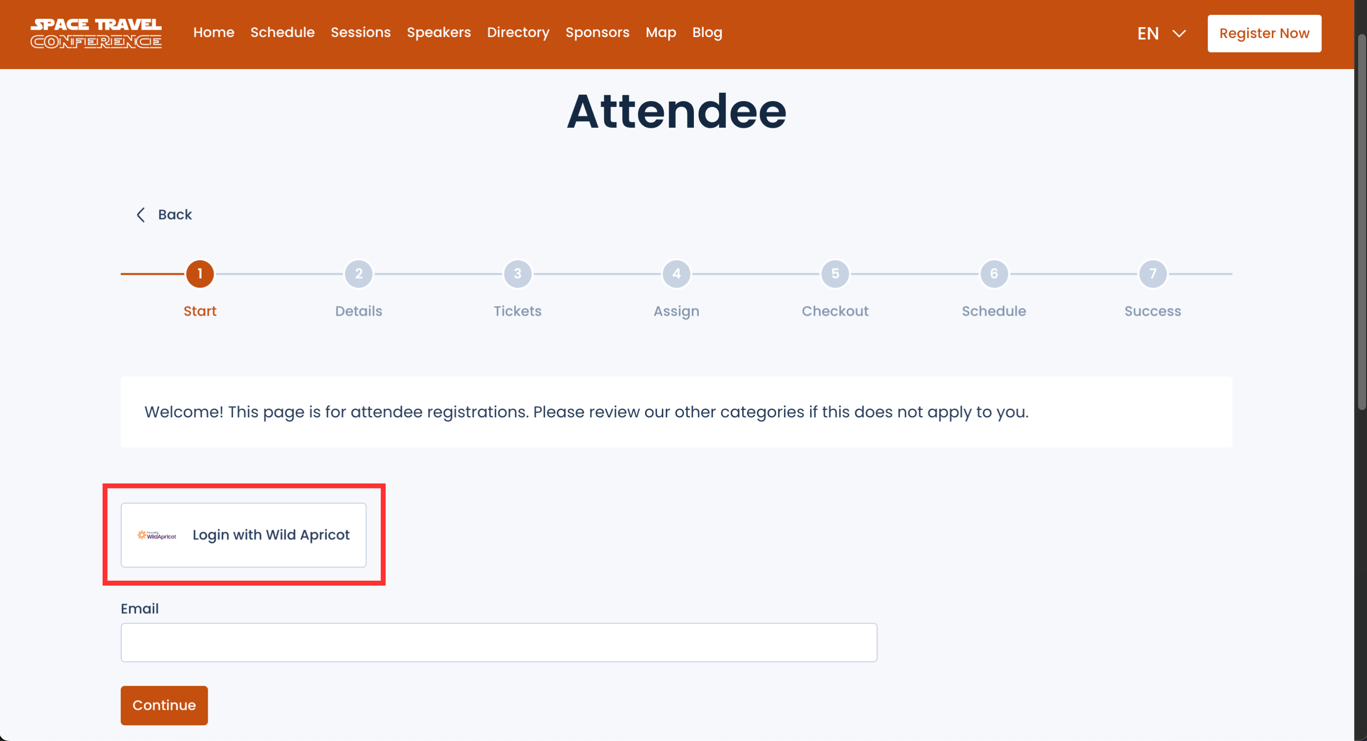 - You will now be signed in with your Wild Apricot account, where you can continue with your registration.