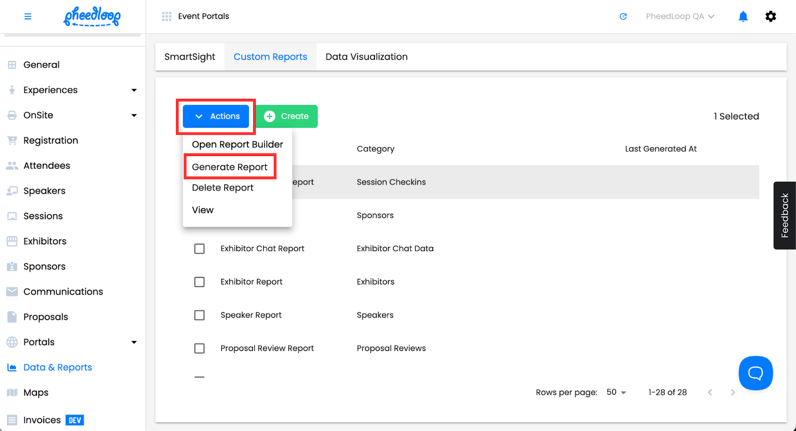 - From the Event Dashboard, navigate to Data & Reports > Custom Reports