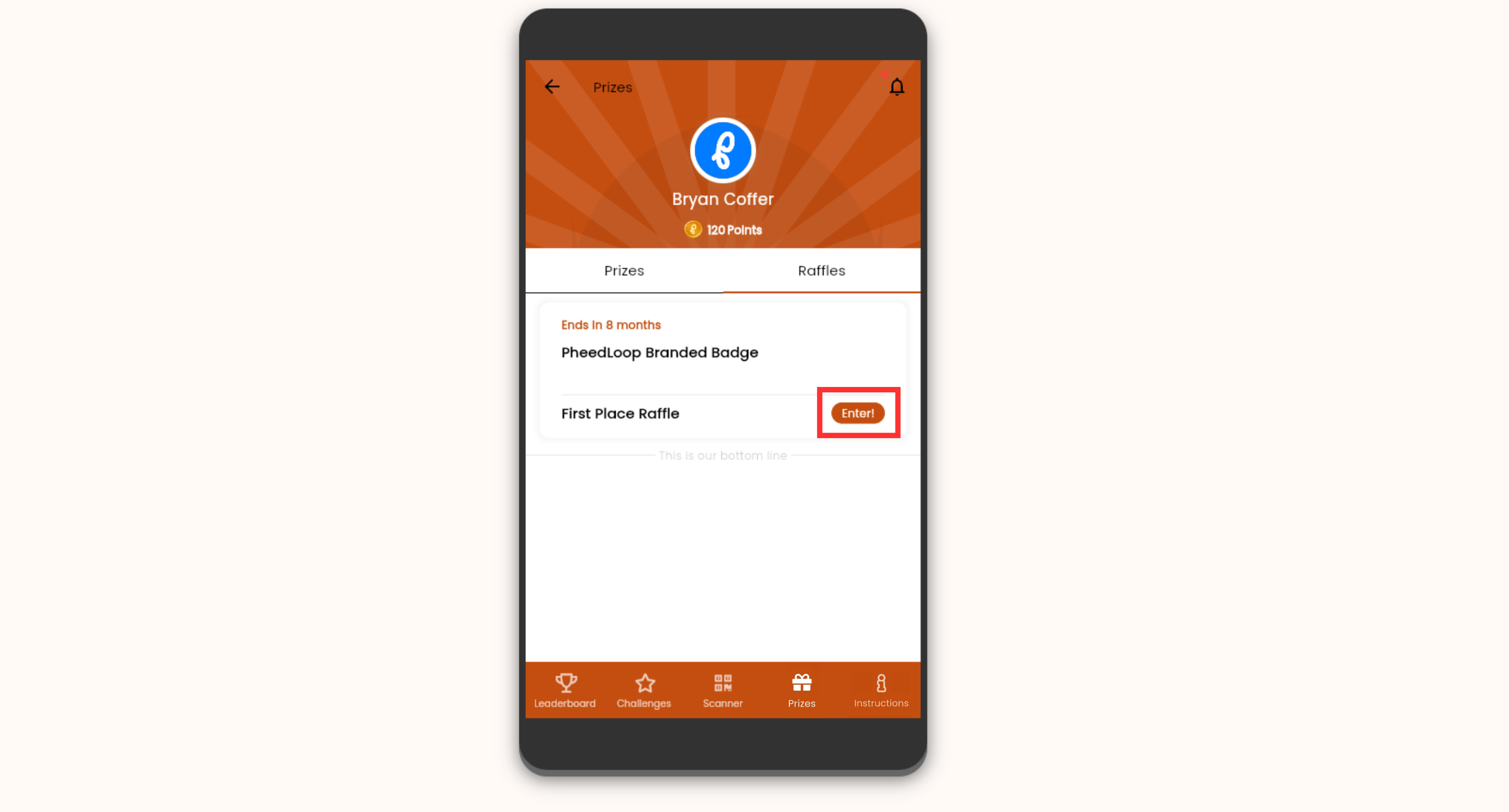 If your event includes raffles, you can find them in the Prizes section under the dedicated Raffles tab. Select Enter! to enroll in the raffle.