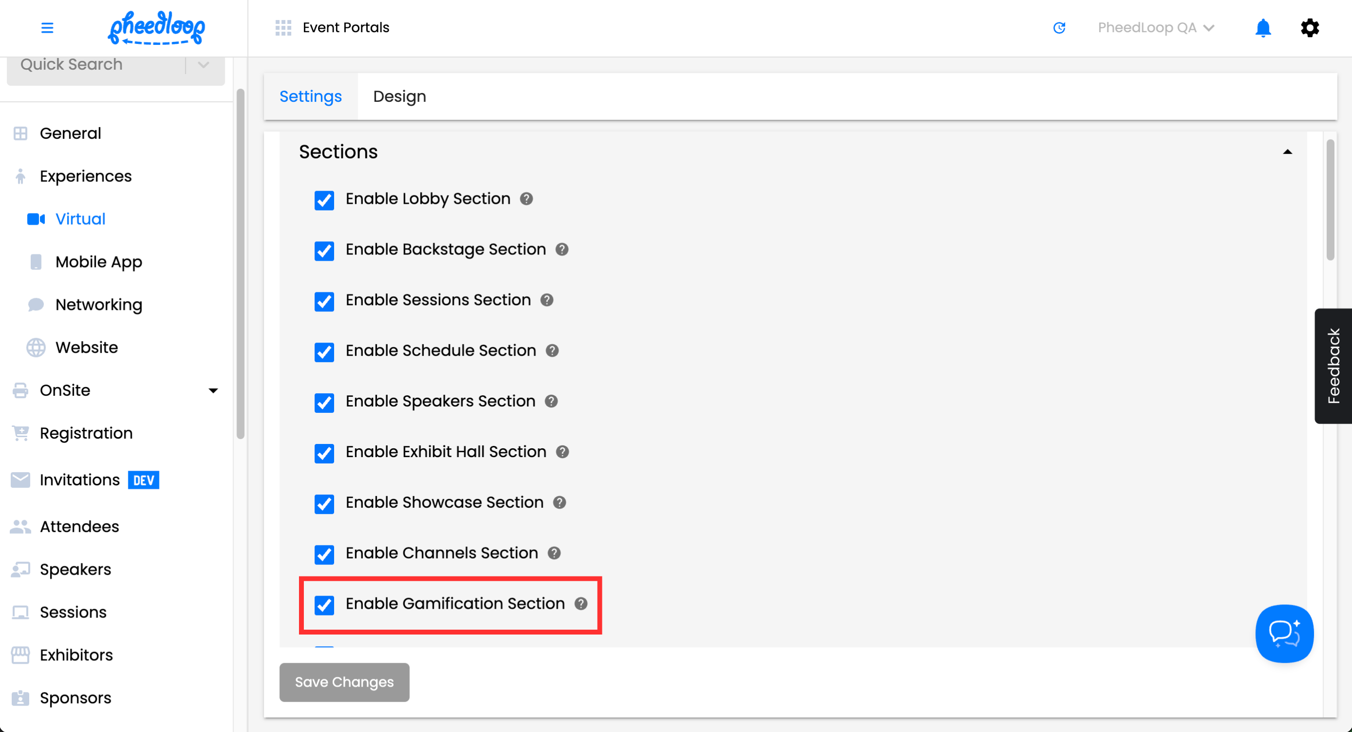 - From the Event Dashboard, navigate to Advanced > Gamification > Settings
