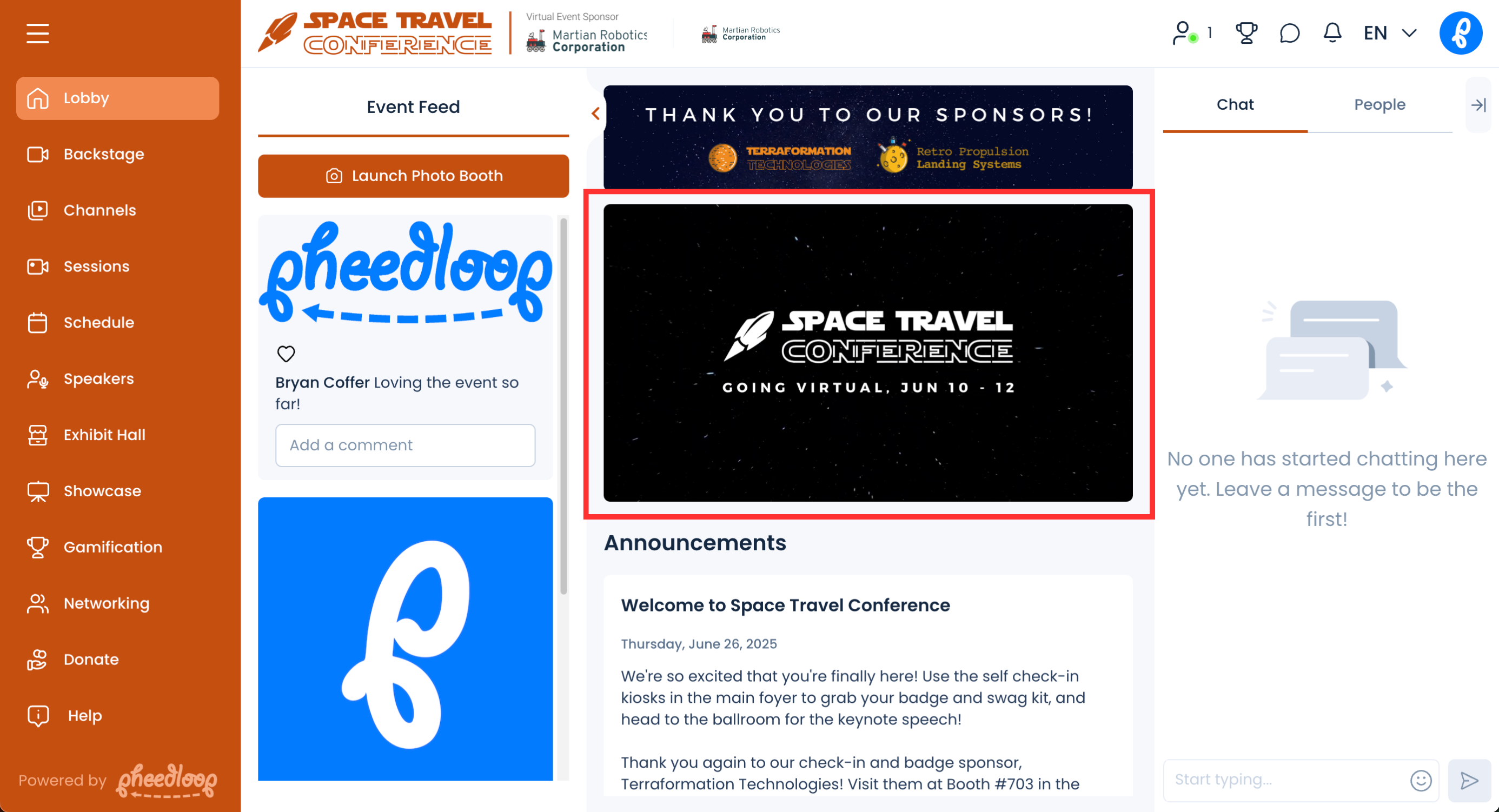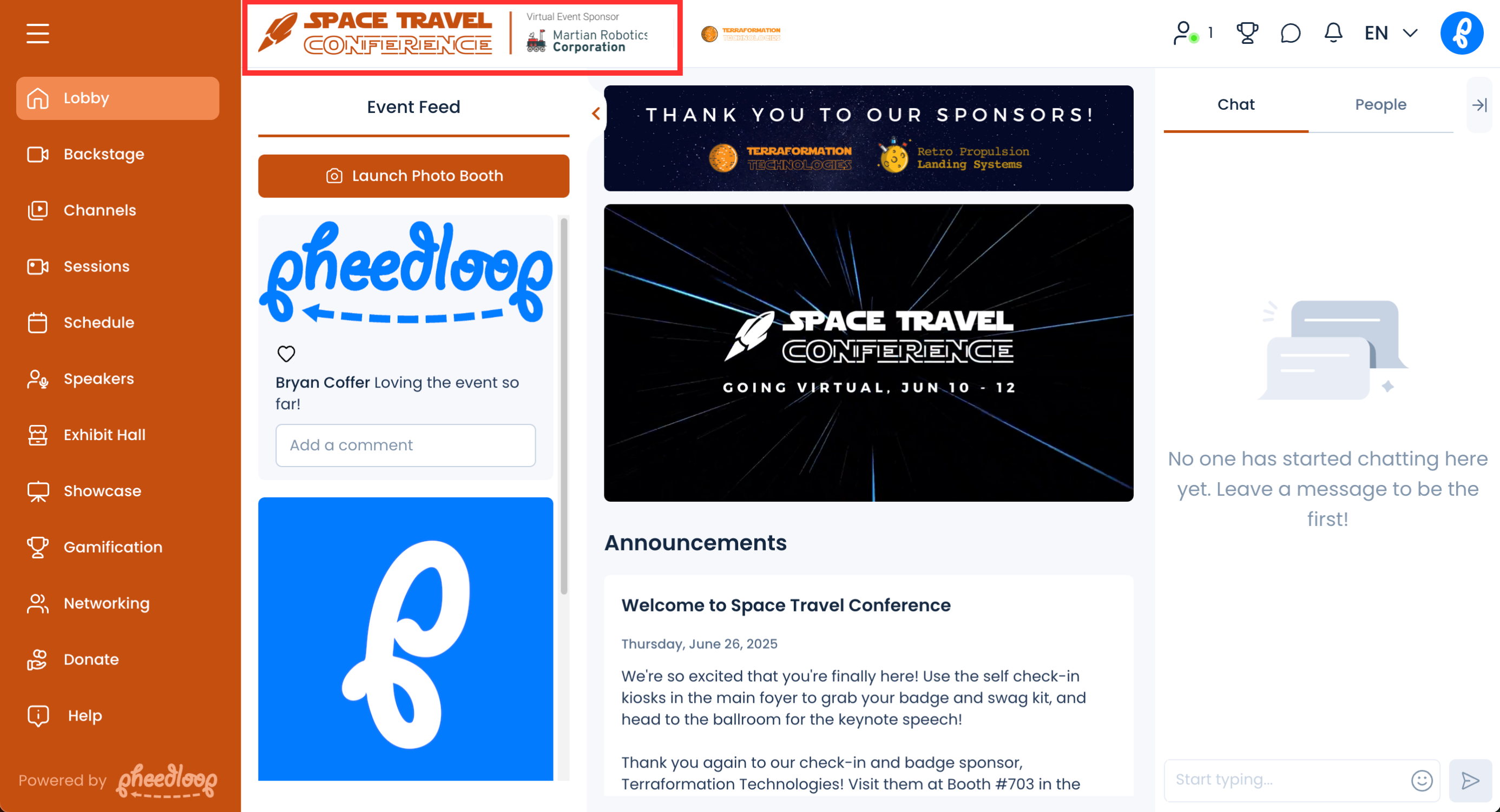 For most events, sponsors make their world go round. They allow us, as event planners, to do what we love best - plan events! With events going virtual and things having changed so much, one of the biggest challenges event planners face is finding ways to promote sponsors appropriately. We're constantly adding new ways to help you promote sponsors, so if you ever have ideas, please let us know. In this article, we'll describe the primary ways (in no particular order) we've built or suggest within PheedLoop to promote sponsors. Our goal is always to provide as many opportunities as possible for sponsorship, without the platform feeling like a logo piñata you crack open the moment you log in as an attendee.