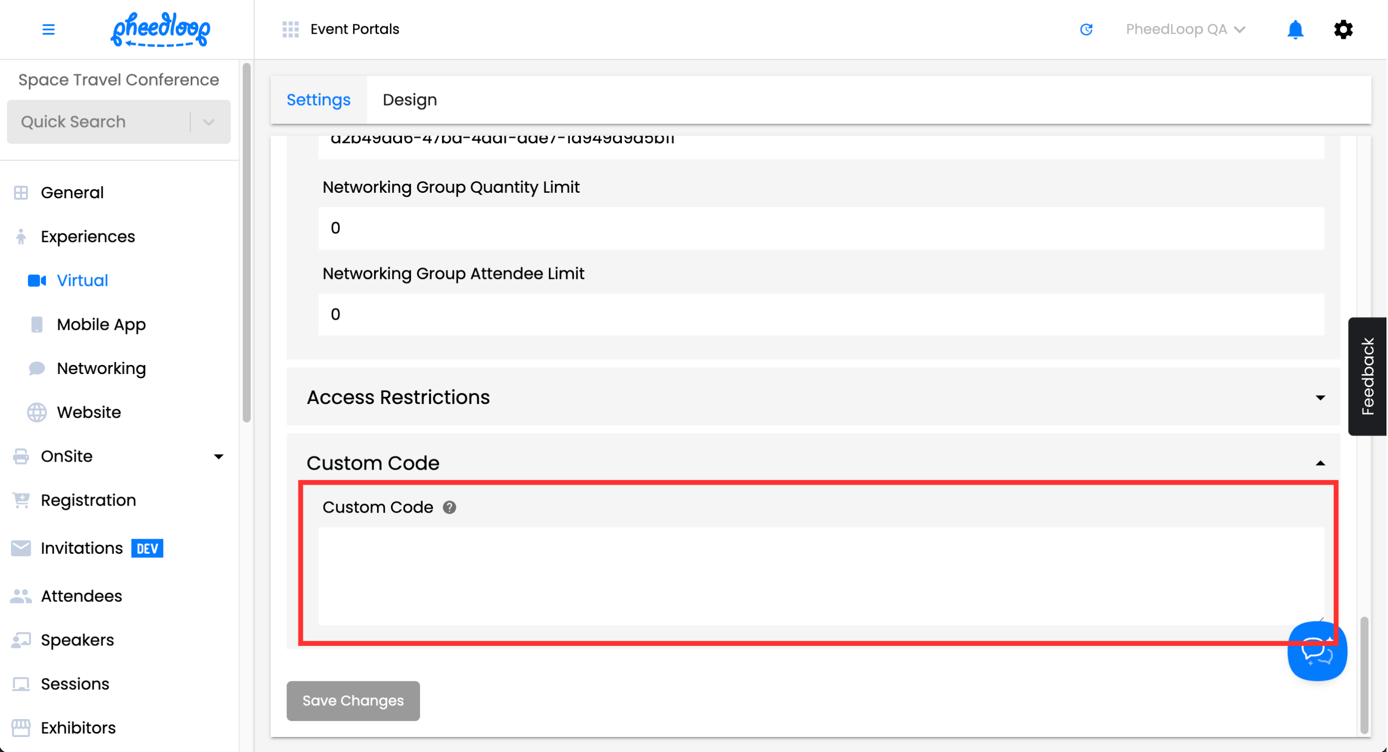 Note: These steps only work for virtual events in PheedLoop. This integration is not meant to service on-site events, at least in the same capacity as virtual.