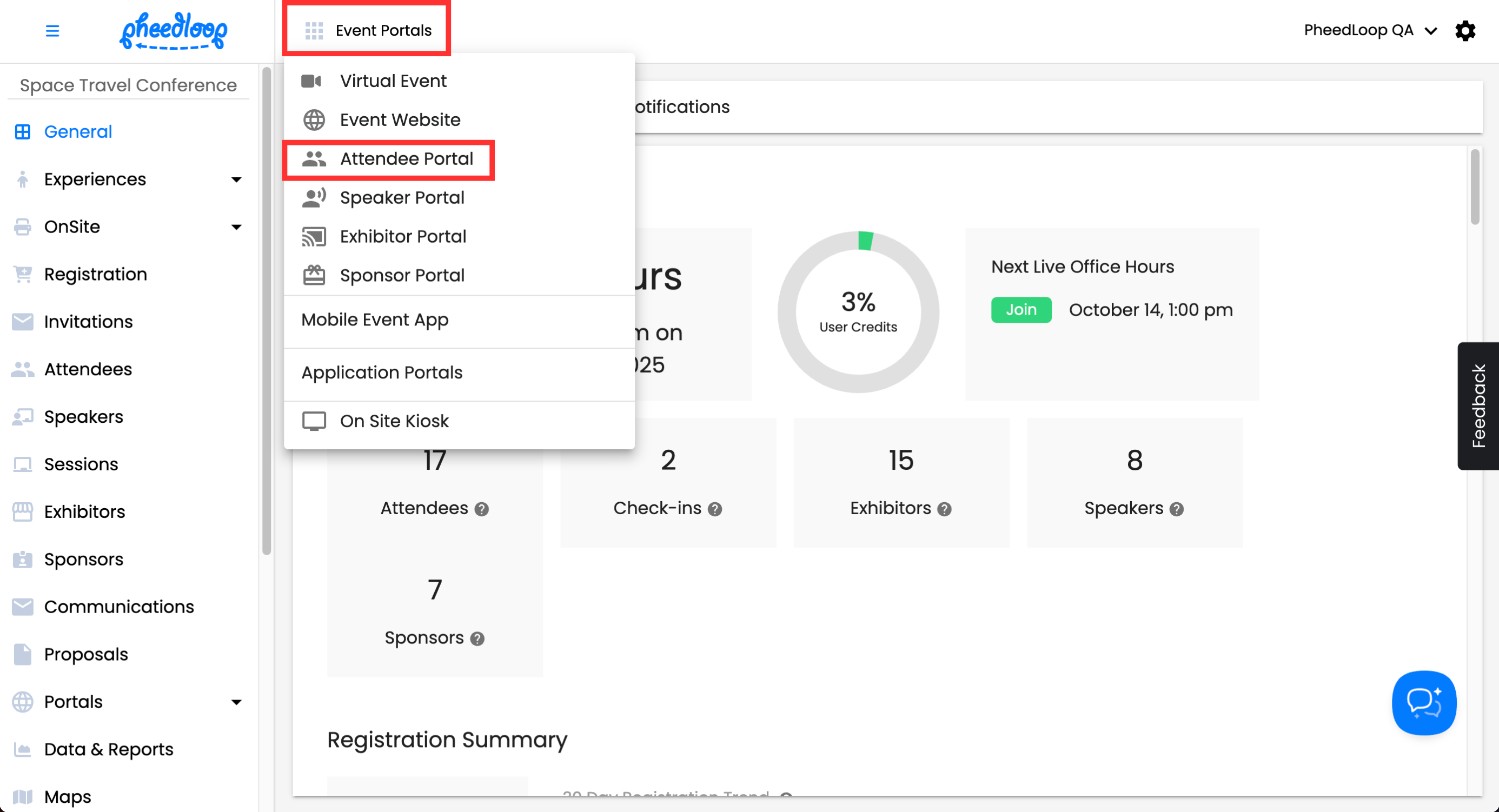 - From the Event Dashboard, navigate to Event Portals > Attendee Portal