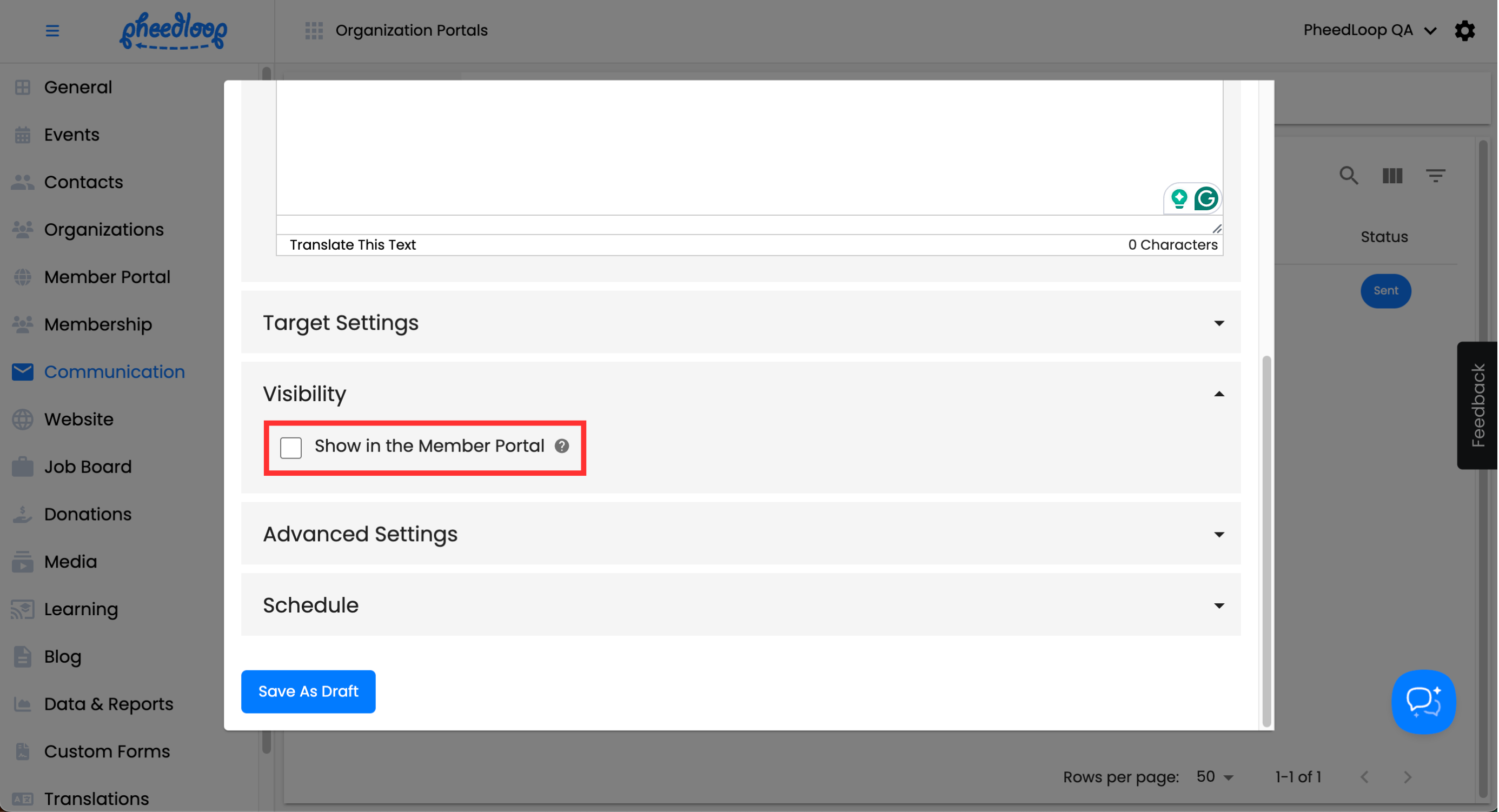 | Show in Member Portal | If toggled on, the announcement will appear on the Member Portal. If toggled off, the announcement will not be present in the Member Portal. |