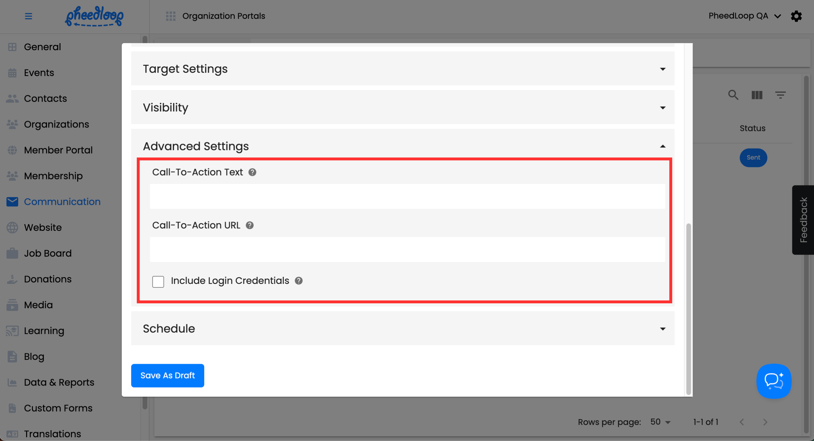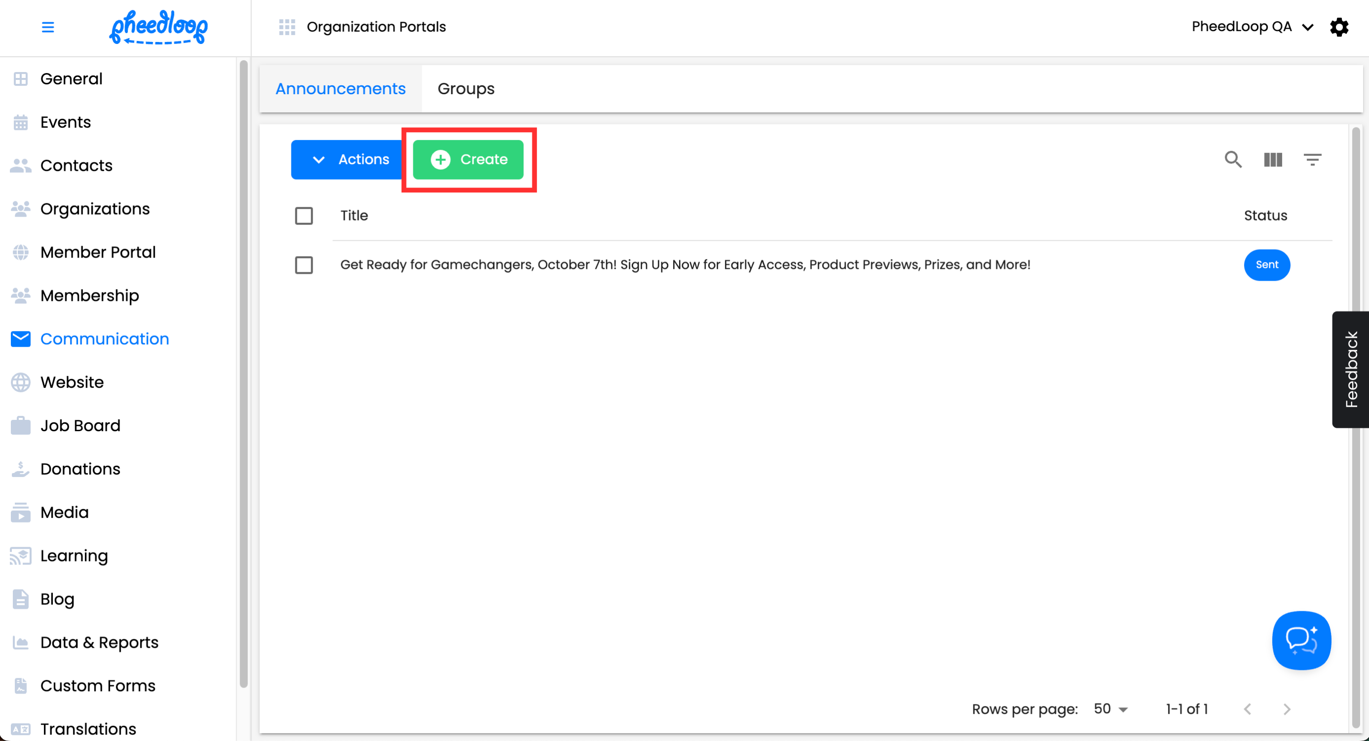 - From the Membership Dashboard, navigate to Communications > Announcements
