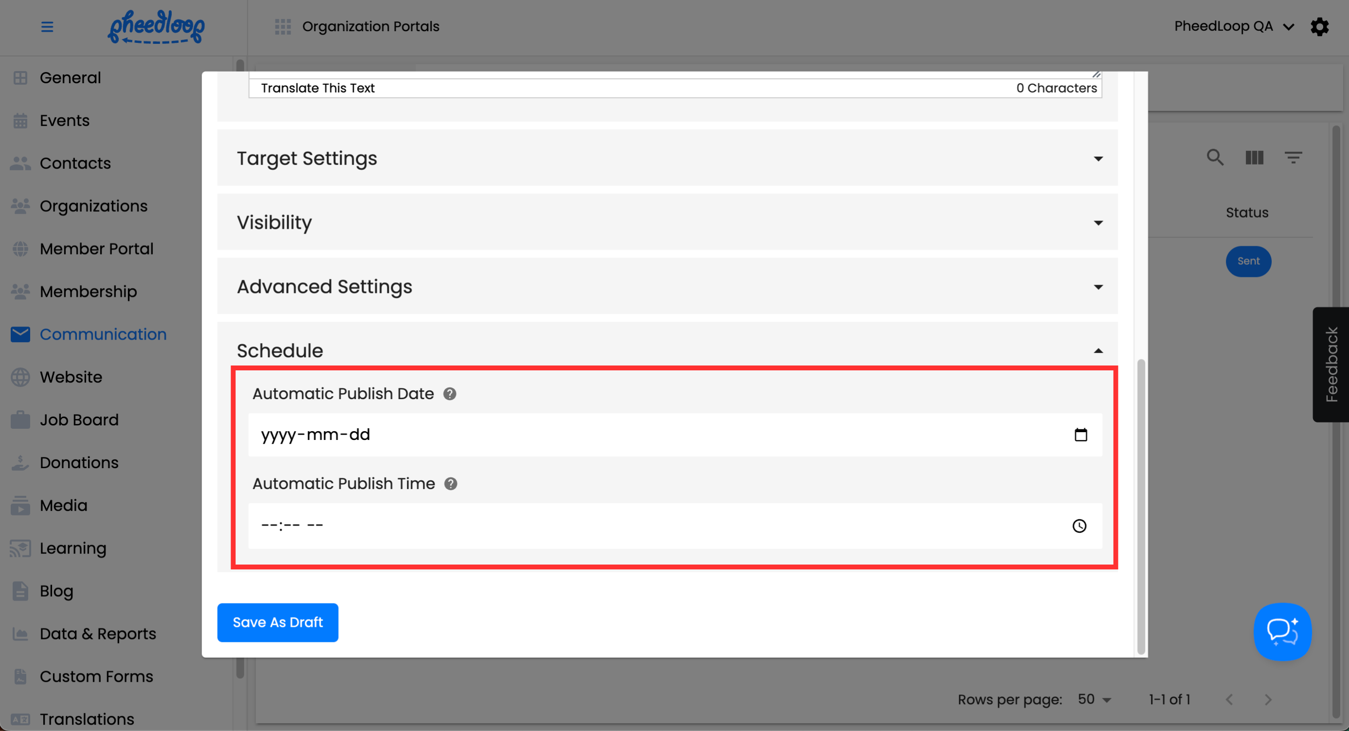 | Automatic Publish Time | Automatically publishes the announcement at the specified time. |