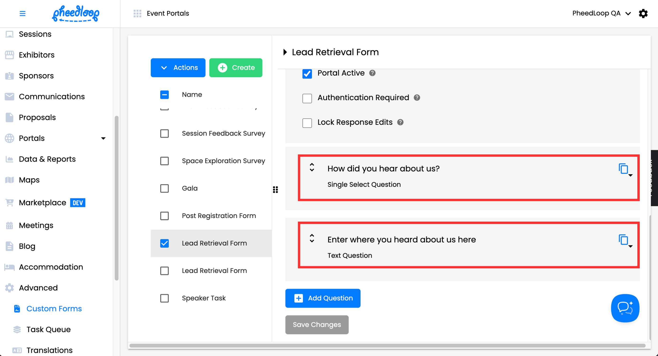 - Toggle on Authentication Required to require attendees to login before they can use the form portal