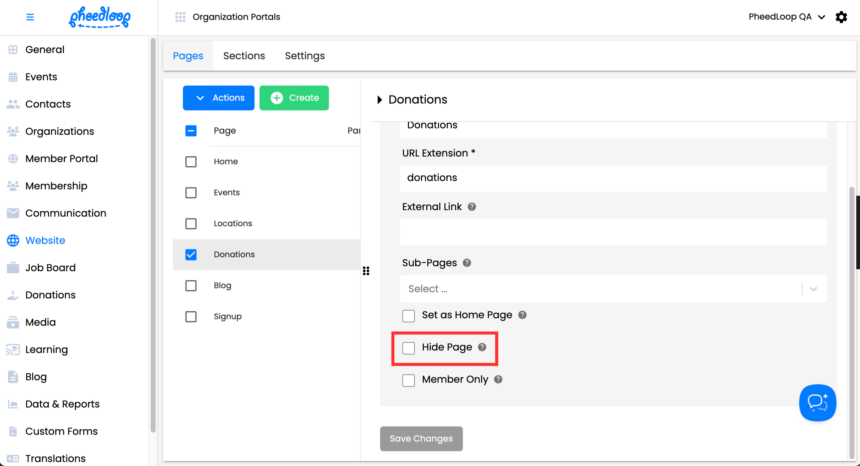 In order for donations to be accessible to members, the Donations page must be visible in the Organization Website.