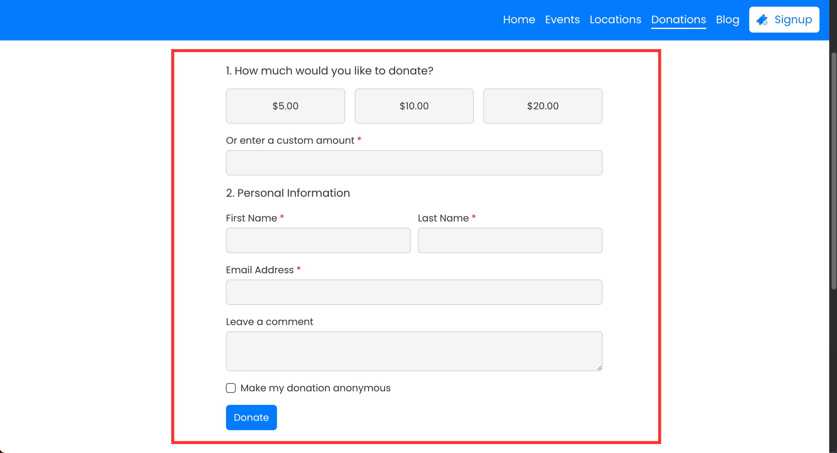 - Under the How much would you like to donate? field, select one of the predetermined amounts