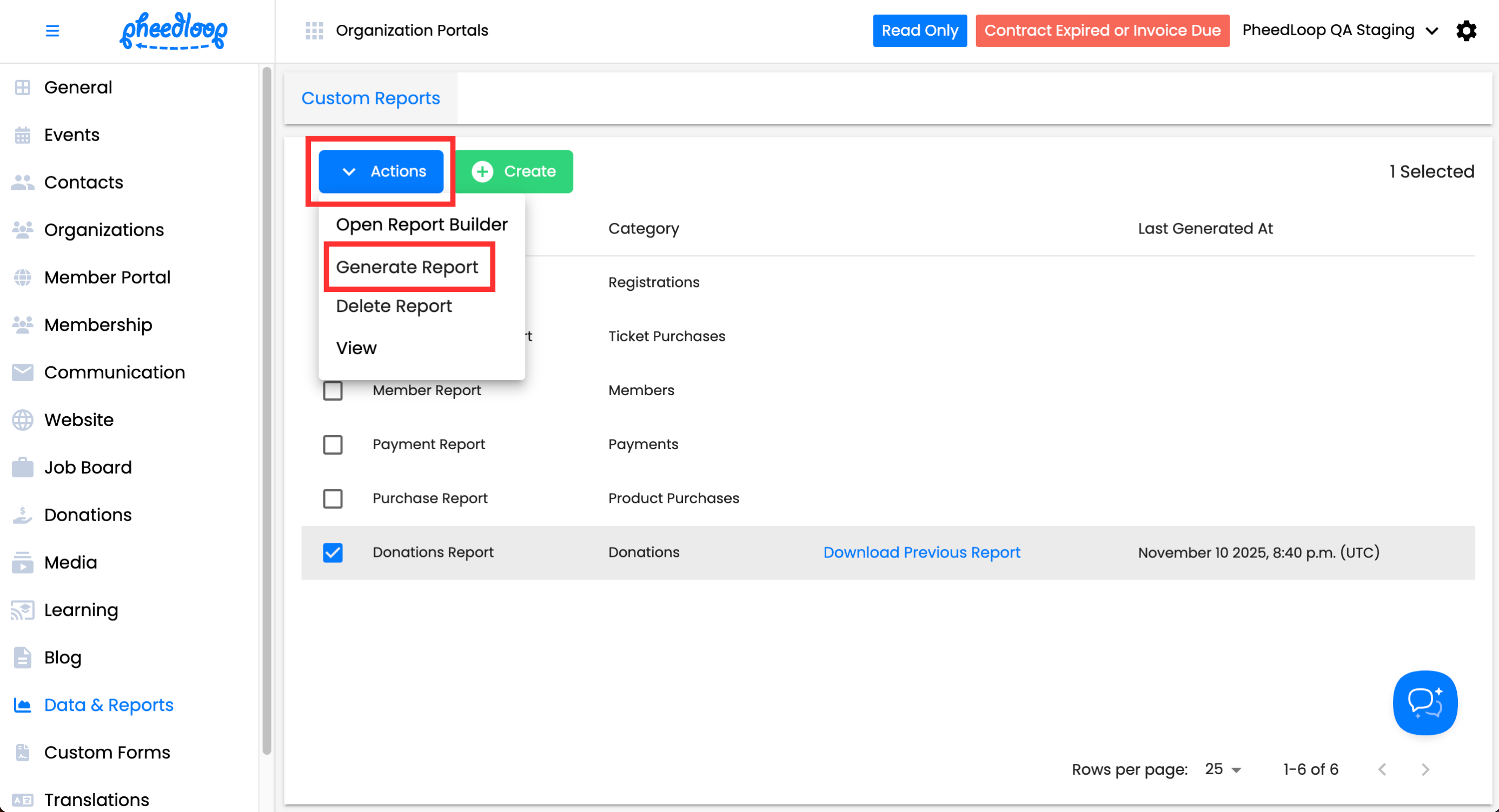 - From the Membership Dashboard, navigate to Data & Reports > Custom Reports