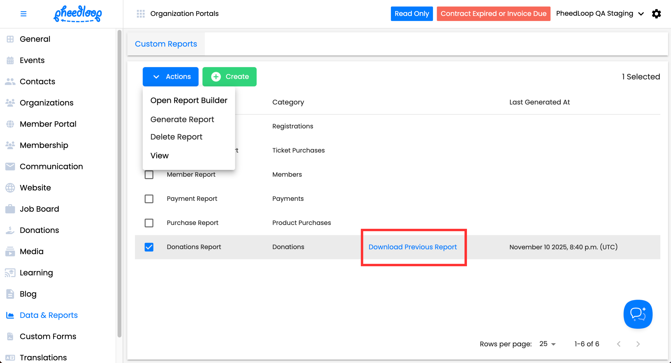 Like with other aspects of the Membership Dashboard, custom reports can be used to gather information on donations. We recommend using custom reports for additional information on donations.