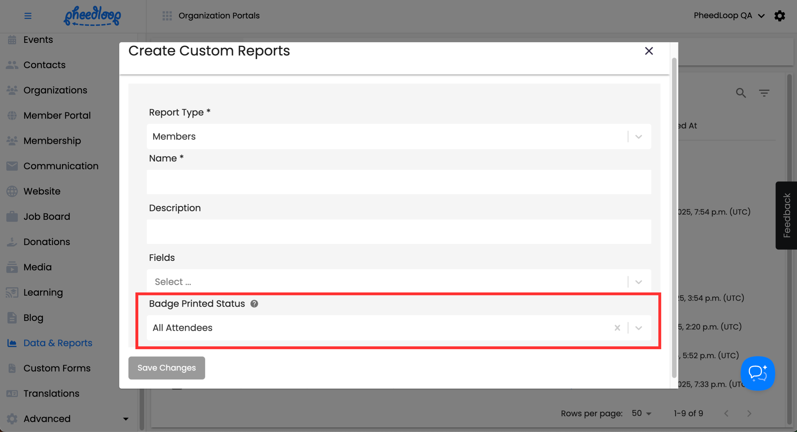 The Members Report also has some unique settings worth considering when creating the report. The Badge Printed Status field filters the attendees (members) by their badge printing status for the current event. Select one of the options that best fits your use case: