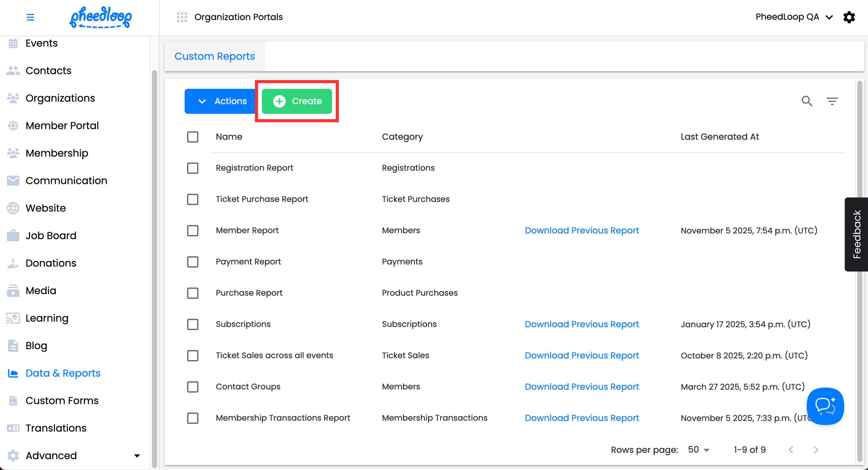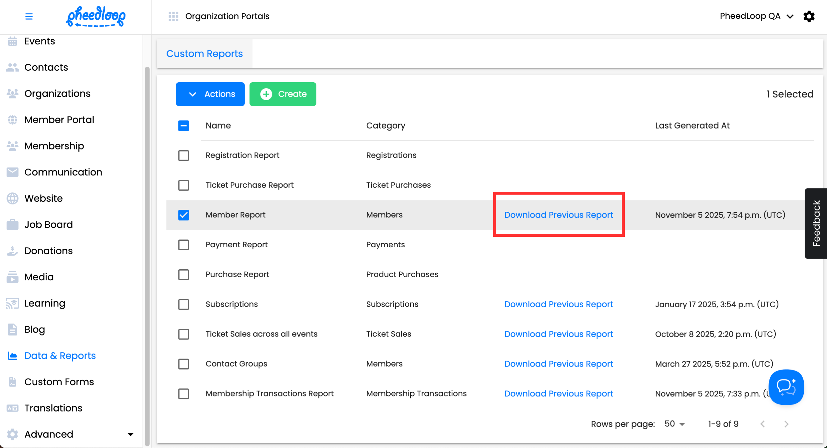 - From the Membership Dashboard, navigate to Data & Reports > Custom Reports