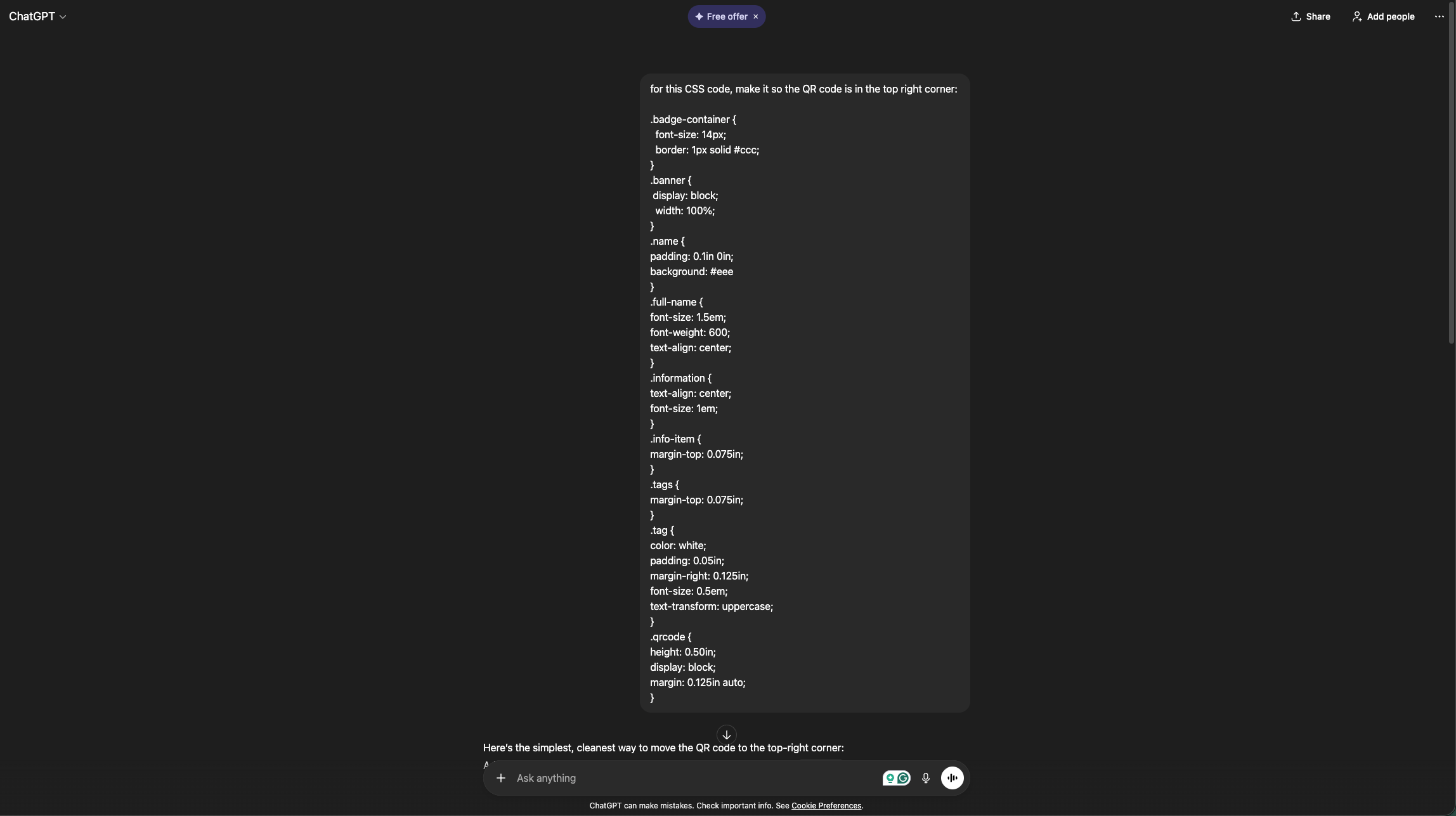 The Badge Sheet Configurator is more technical than the Badge Label Designer and works best if you’re familiar with CSS. If you need to make changes but don’t have experience with CSS, consider using an AI assistant such as ChatGPT. You can paste in the existing code, describe the result you want, and the AI can typically generate the CSS needed to achieve it. Please ensure you edit the Badge Style code and not Badge Content or your desired change will not take effect.