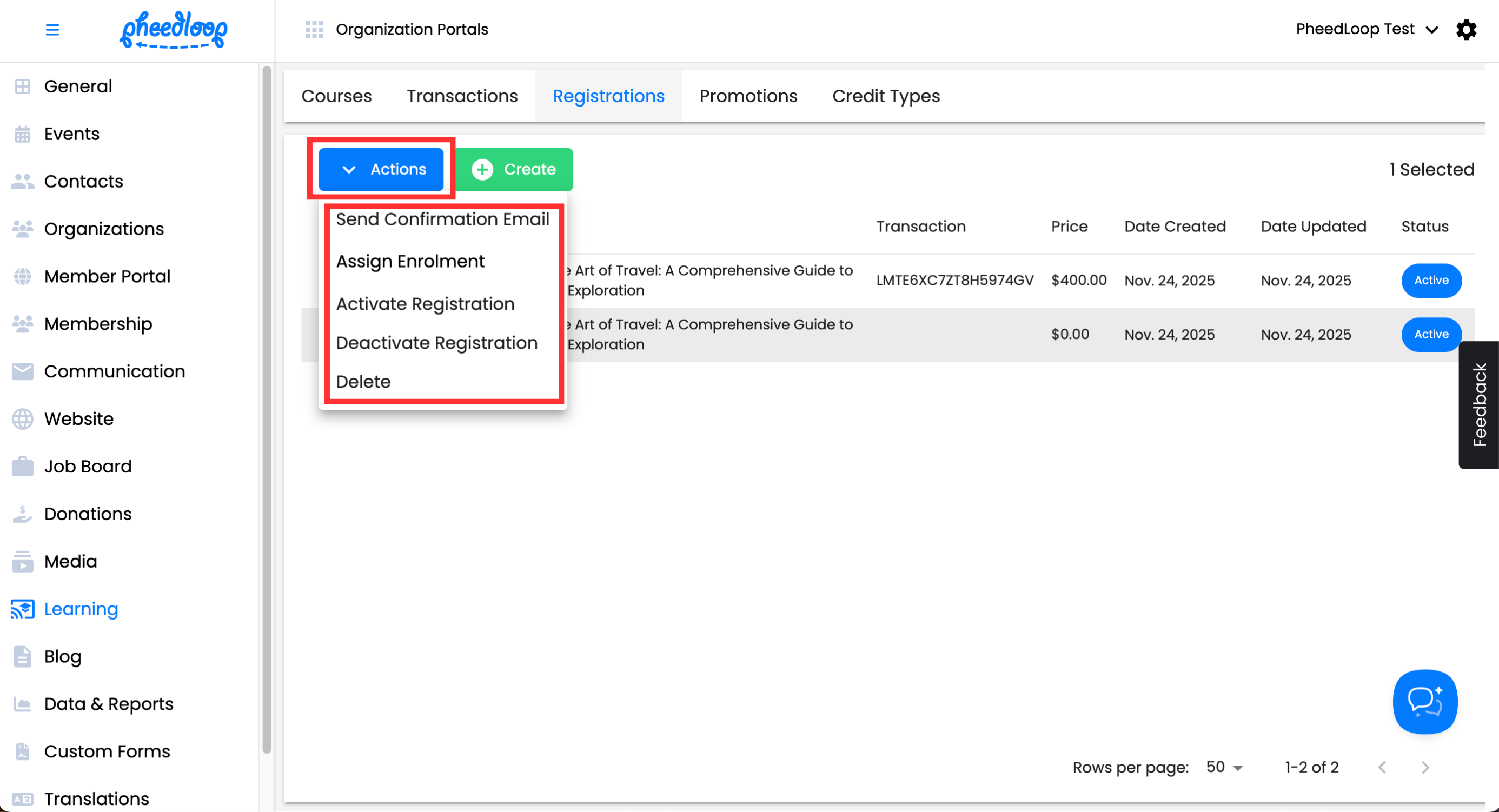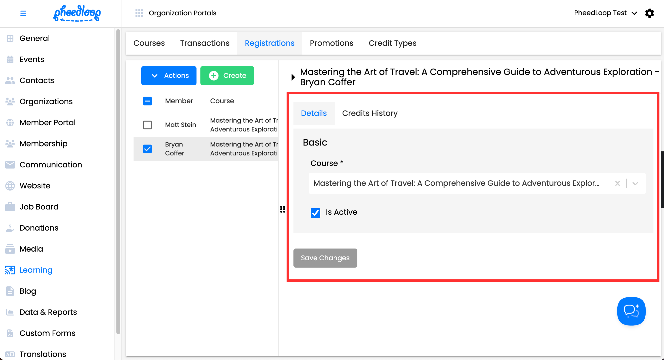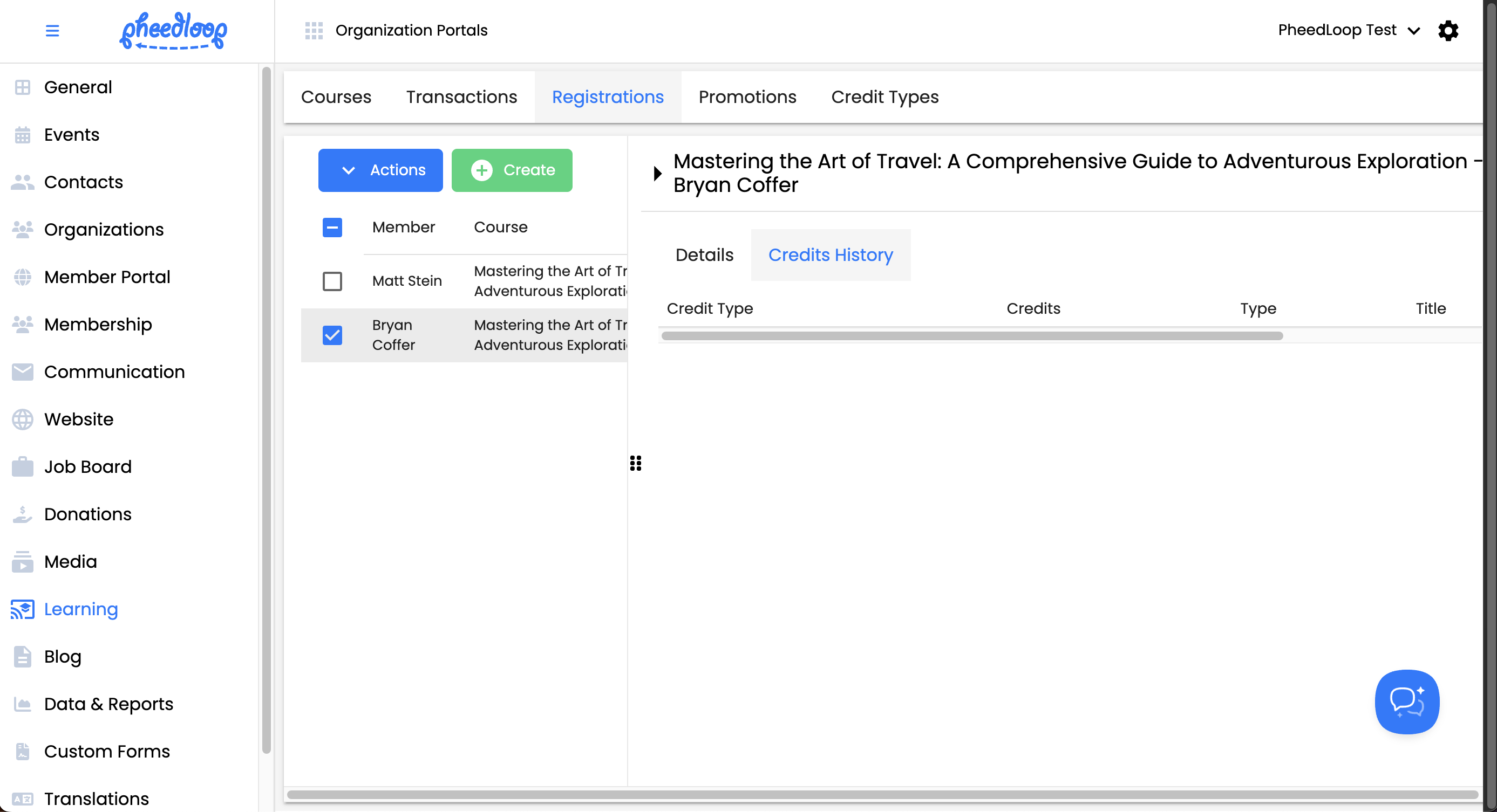 - From the Membership Dashboard, navigate to Learning > Registrations