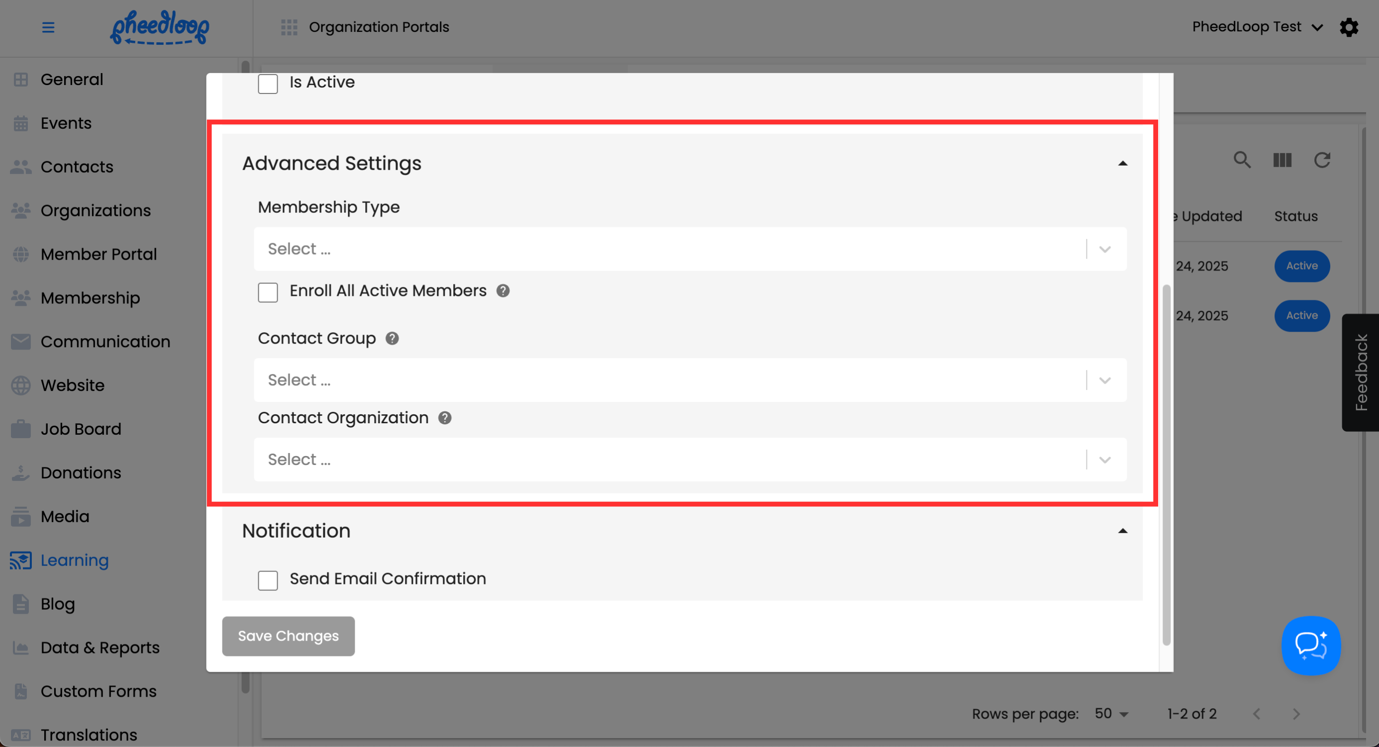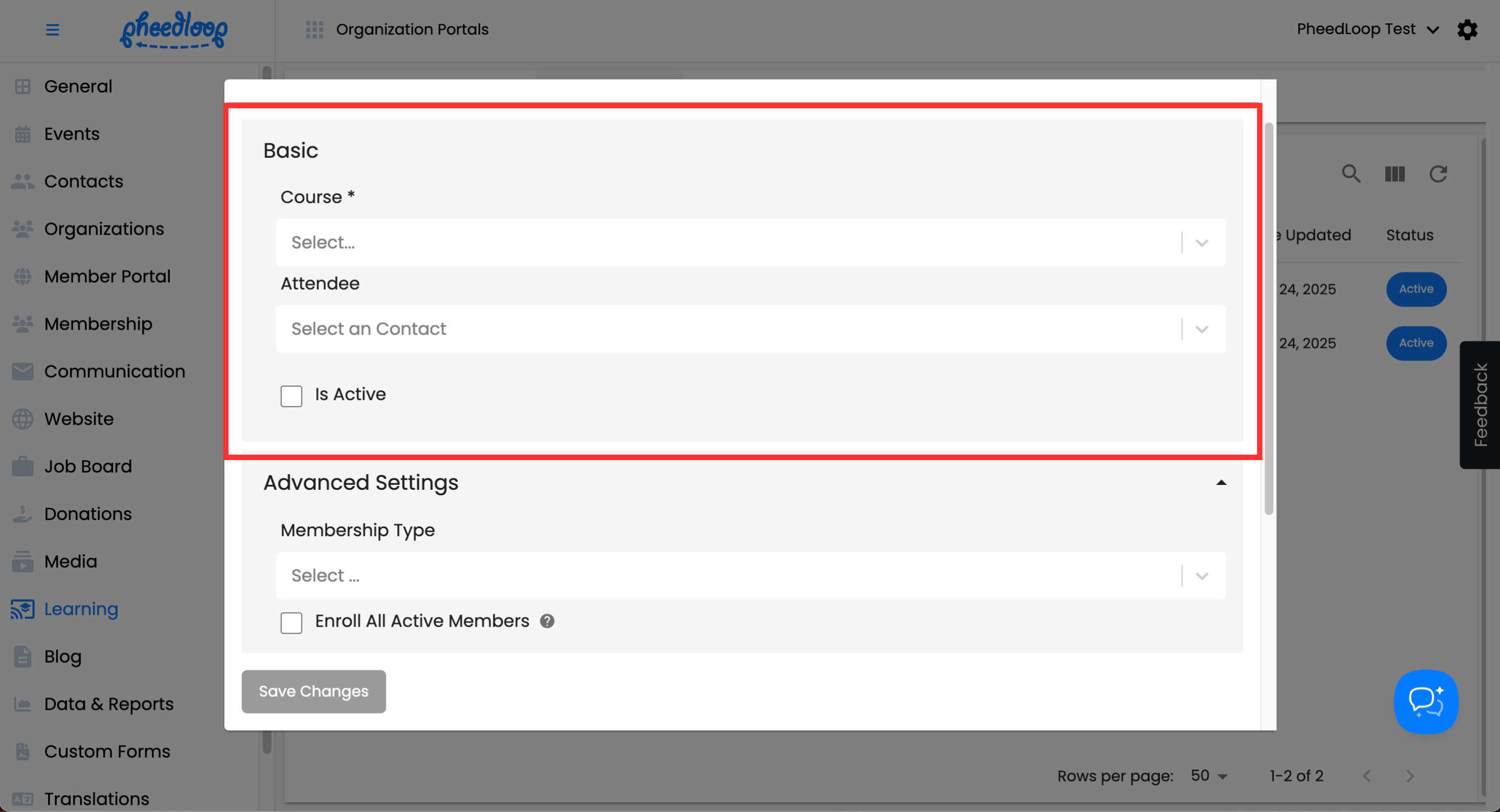 Certain aspects of the Learning Portal can be customized through the Membership Dashboard.