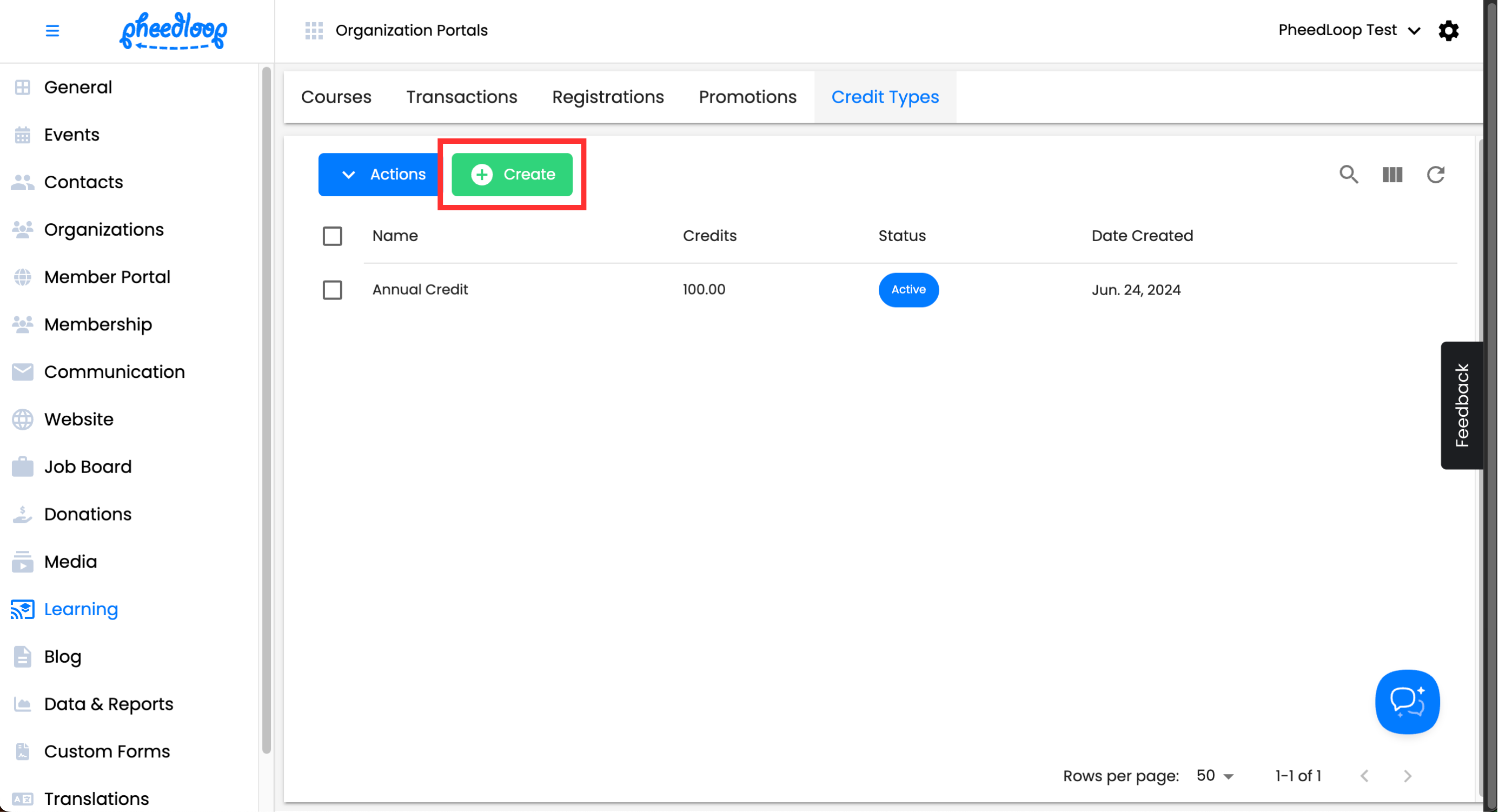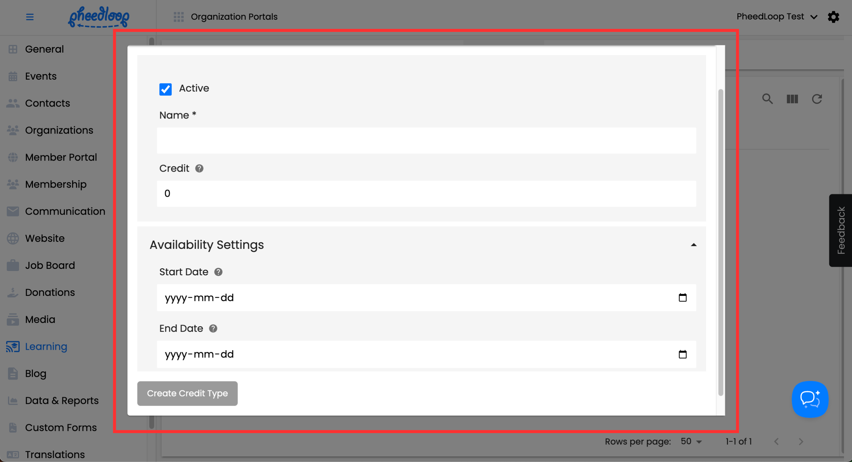 - From the Membership Dashboard, navigate to Learning > Credit Types