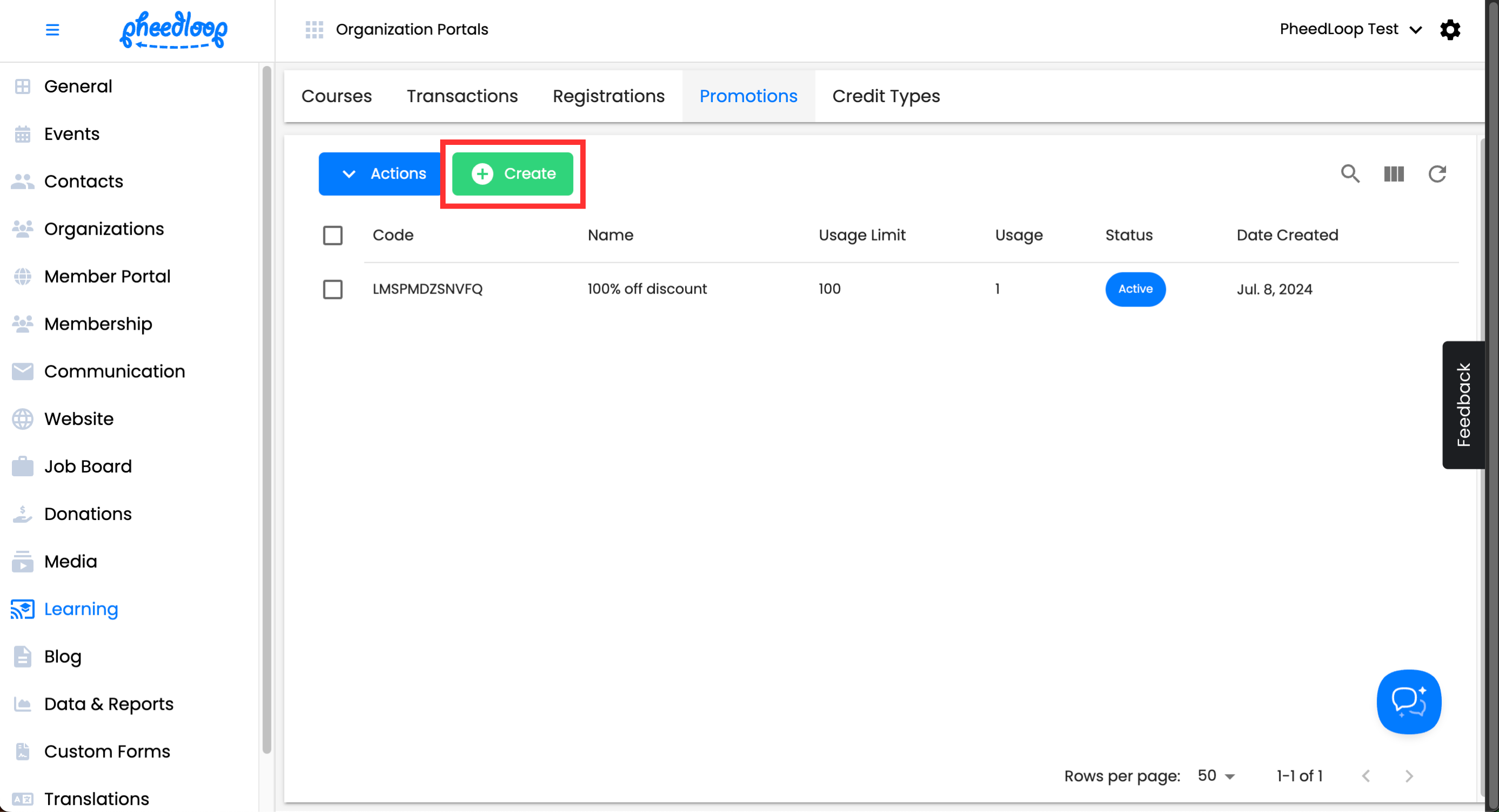 Above the Promotions table, select Create