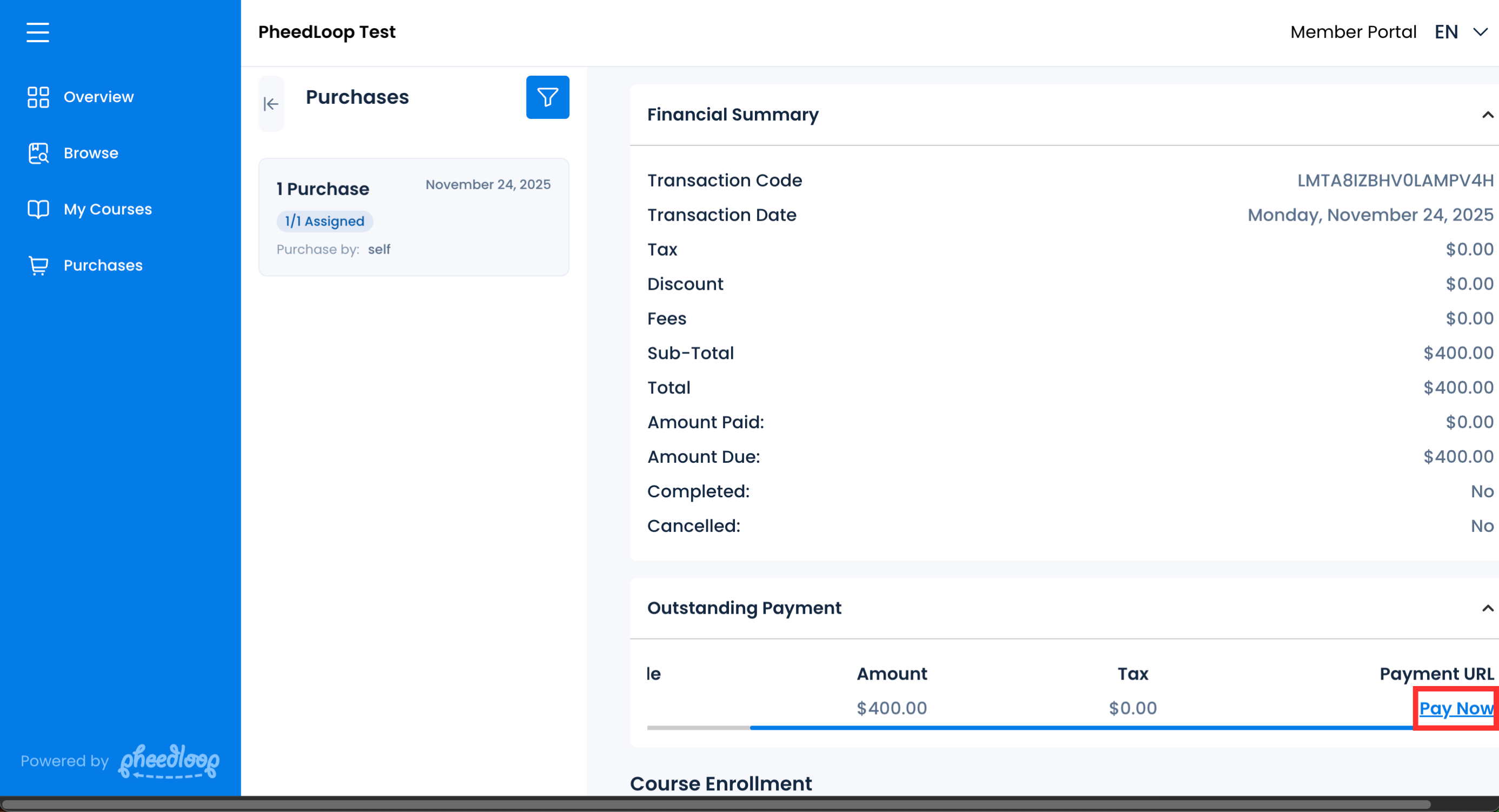 Managing Purchases from the Learning Portal