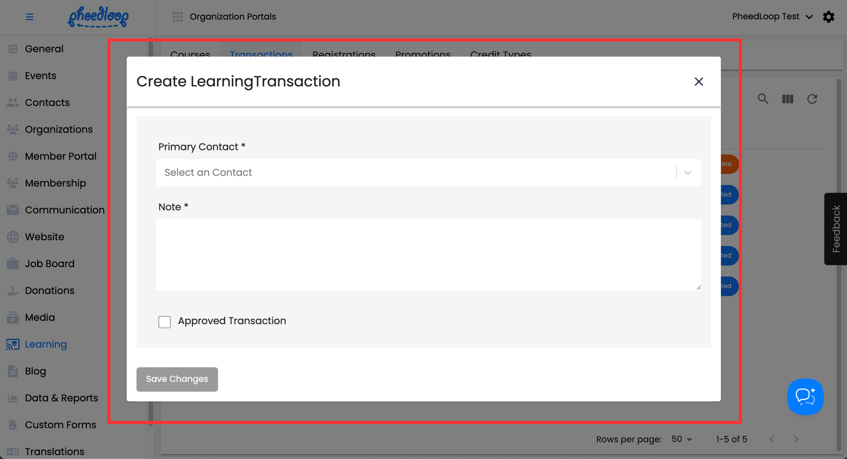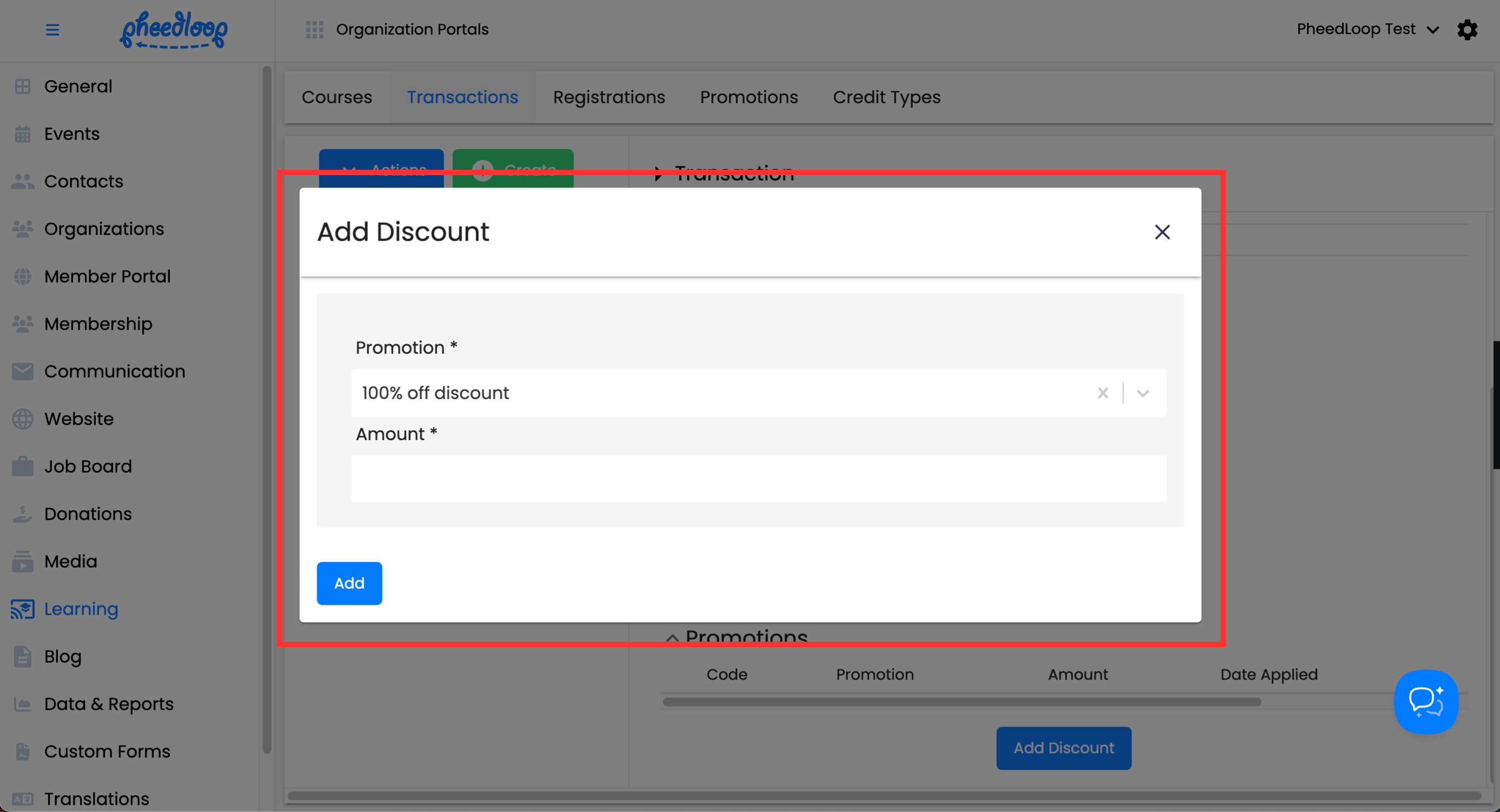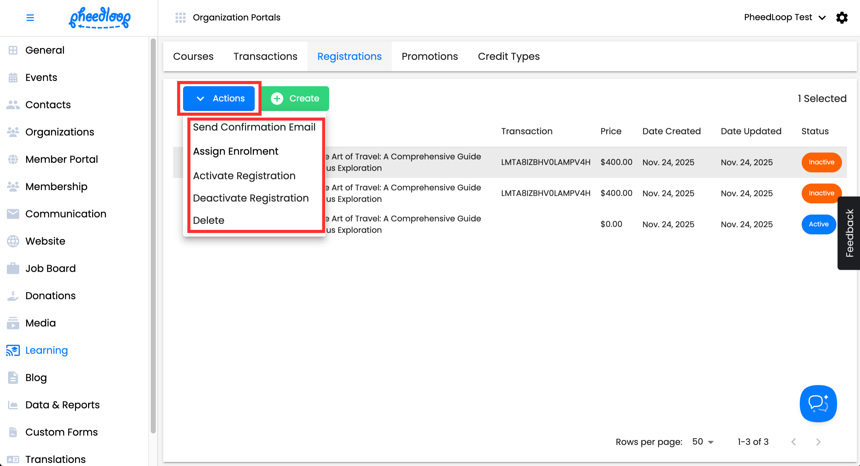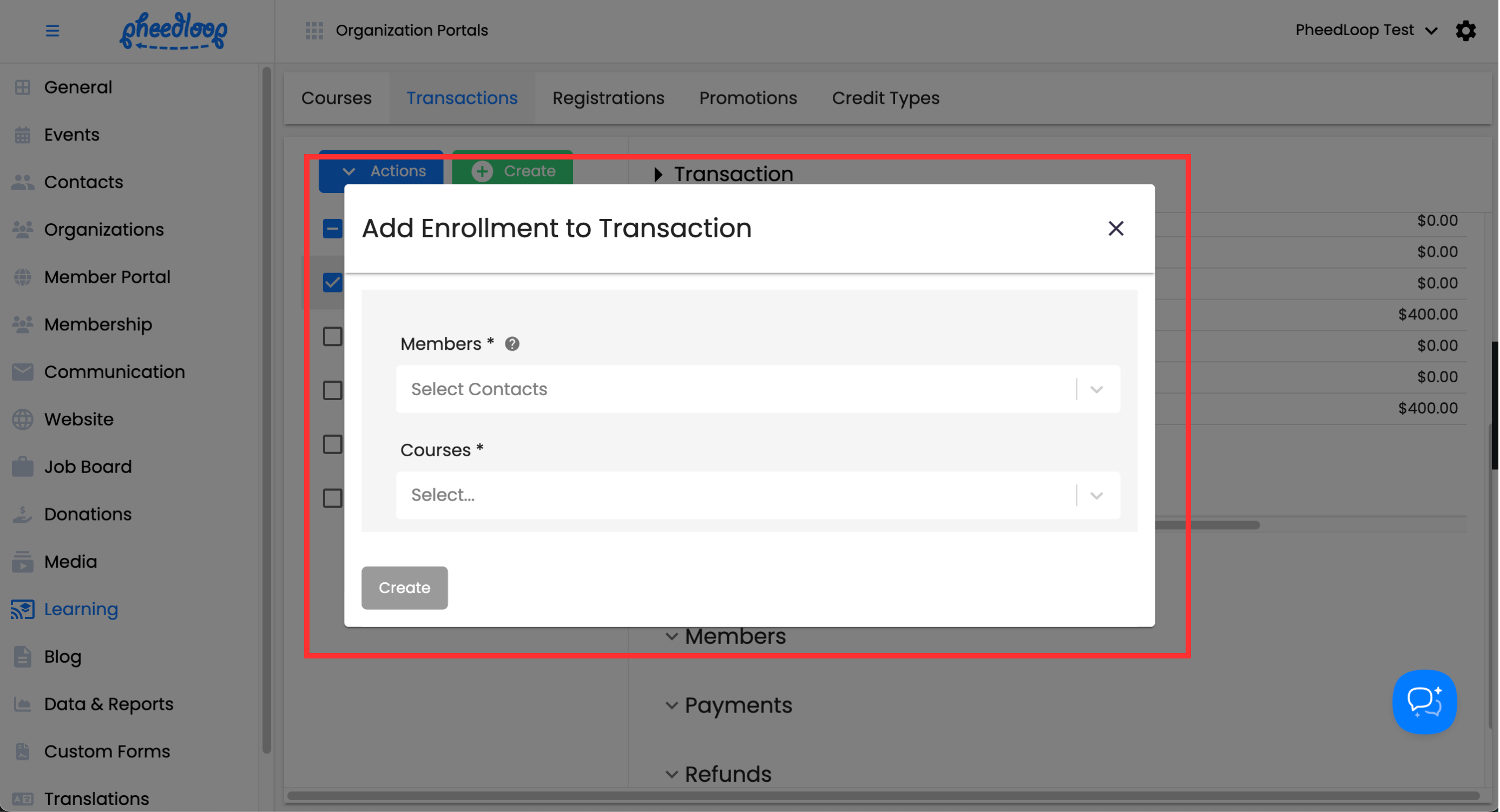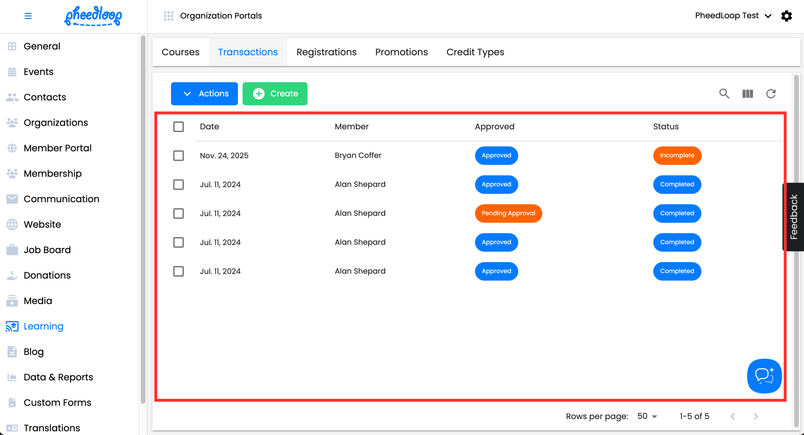 - From the Membership Dashboard, navigate to Learning > Transactions
