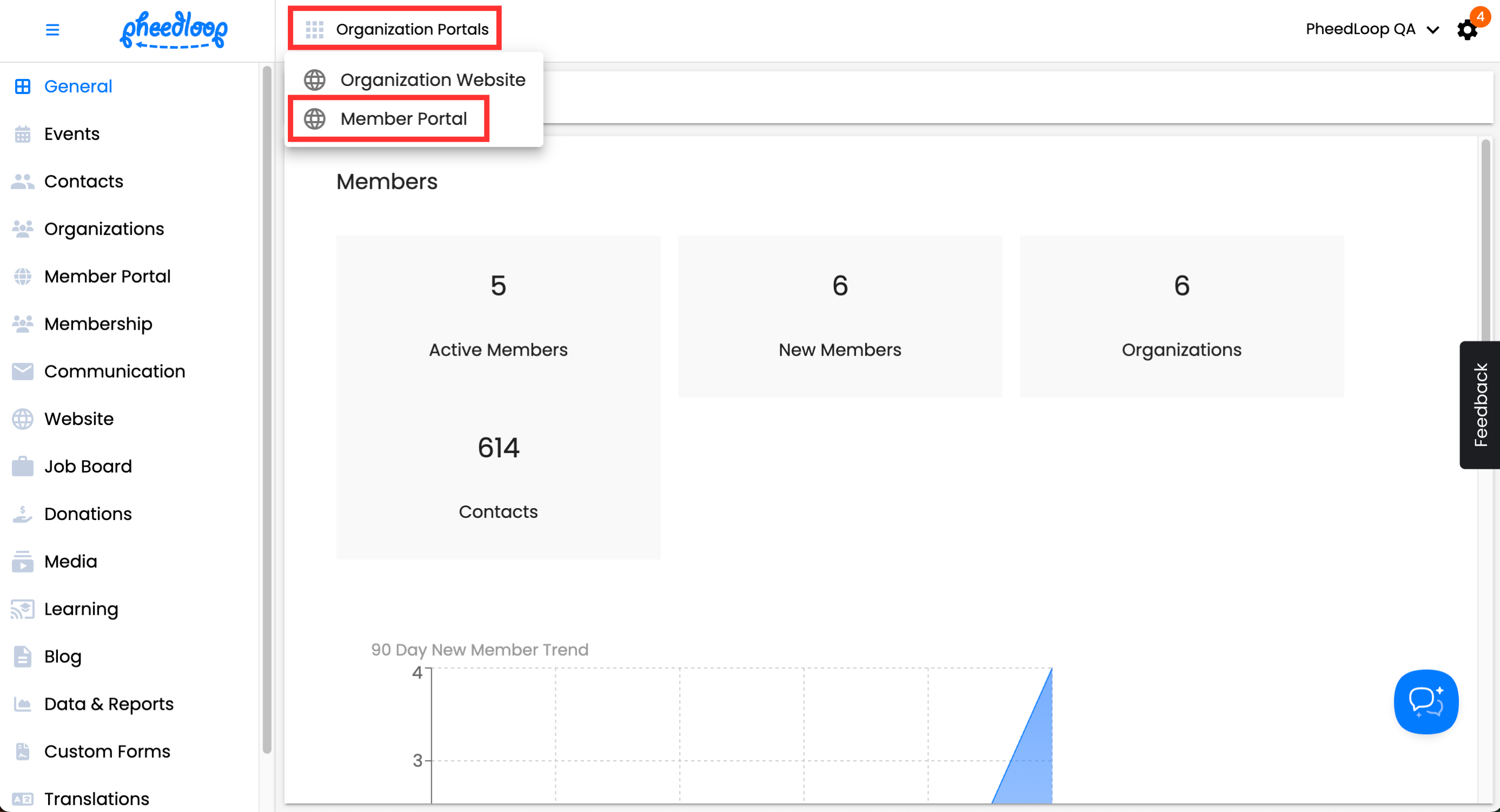From the Membership Dashboard, navigate to Organization Portals > Organization Website