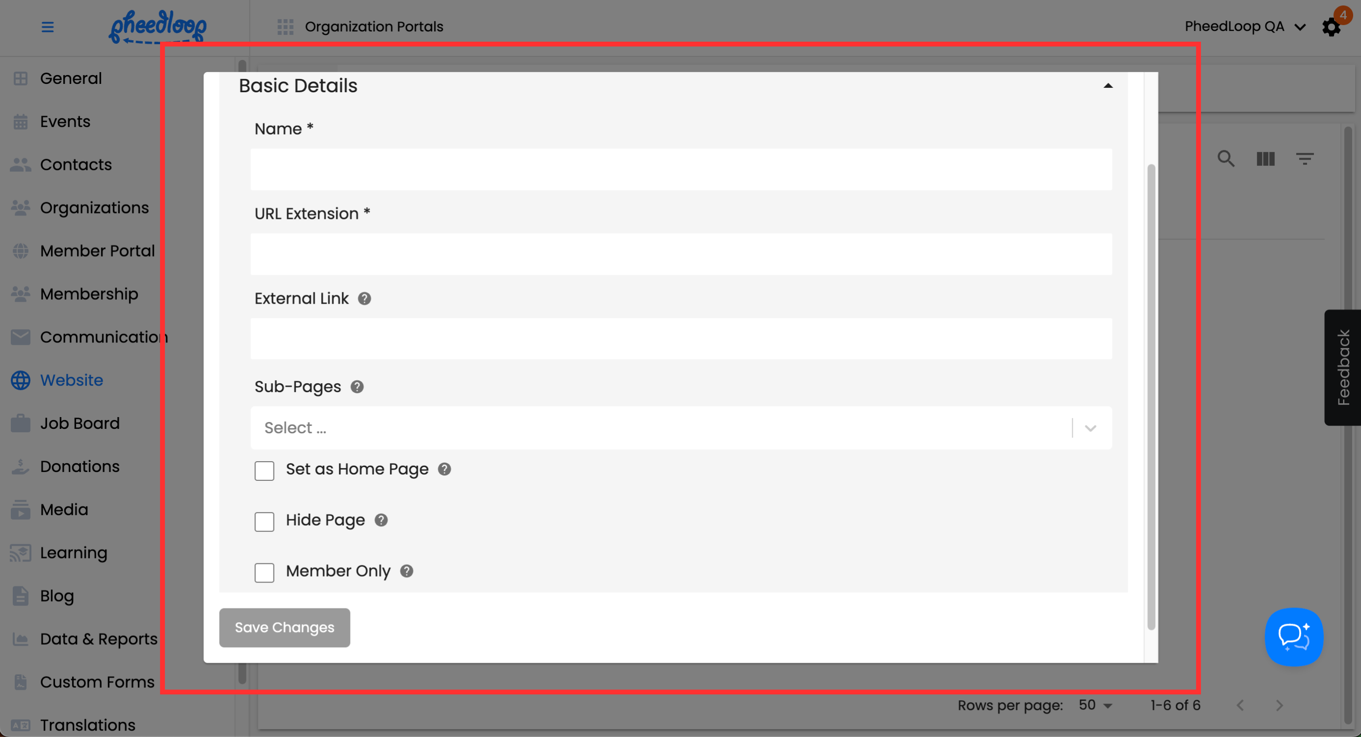 - Toggle on the Set as Home Page checkbox if you would like to set your created page as the new home page. If set, visiting the Organization Website will open this page.