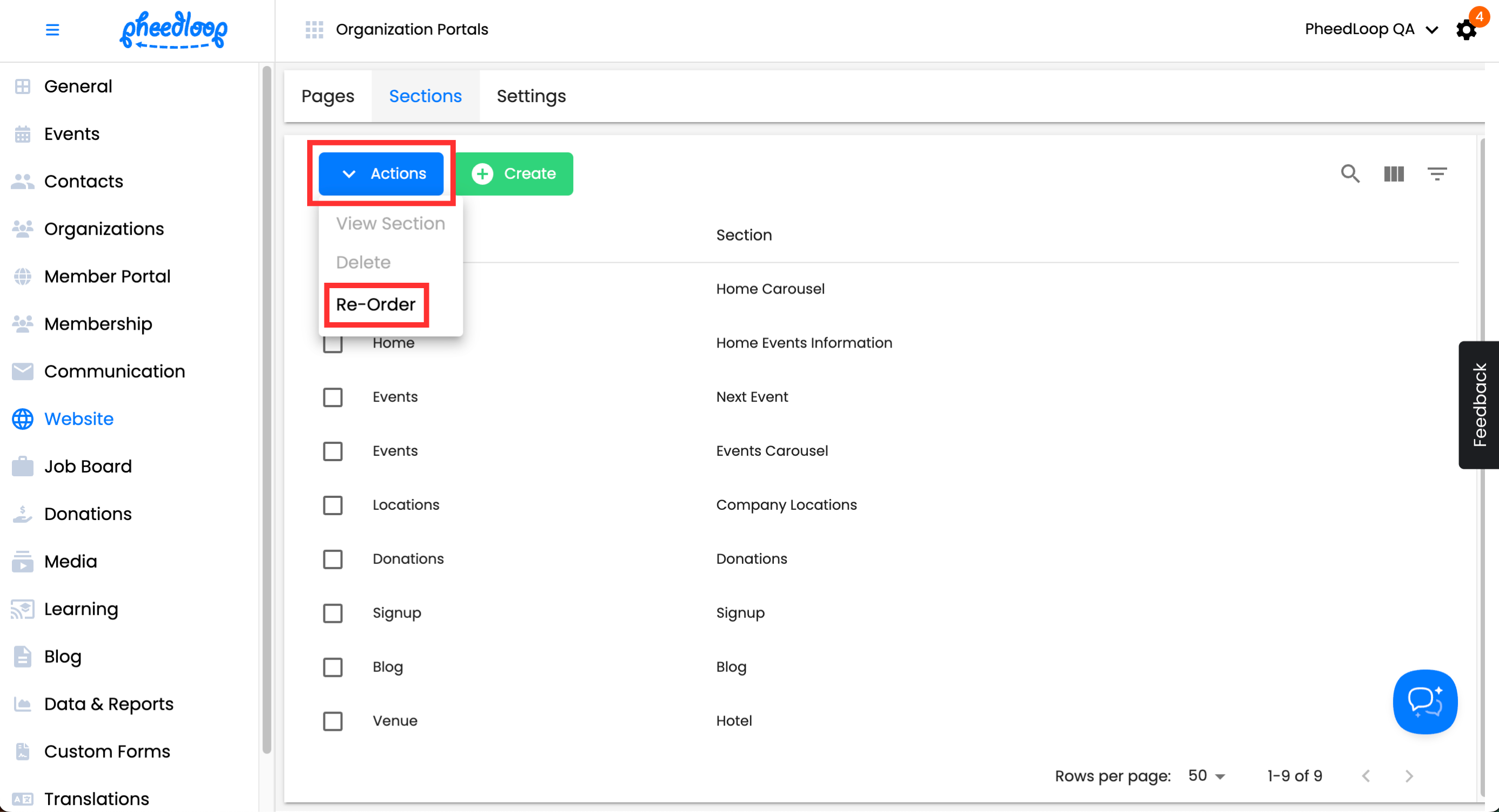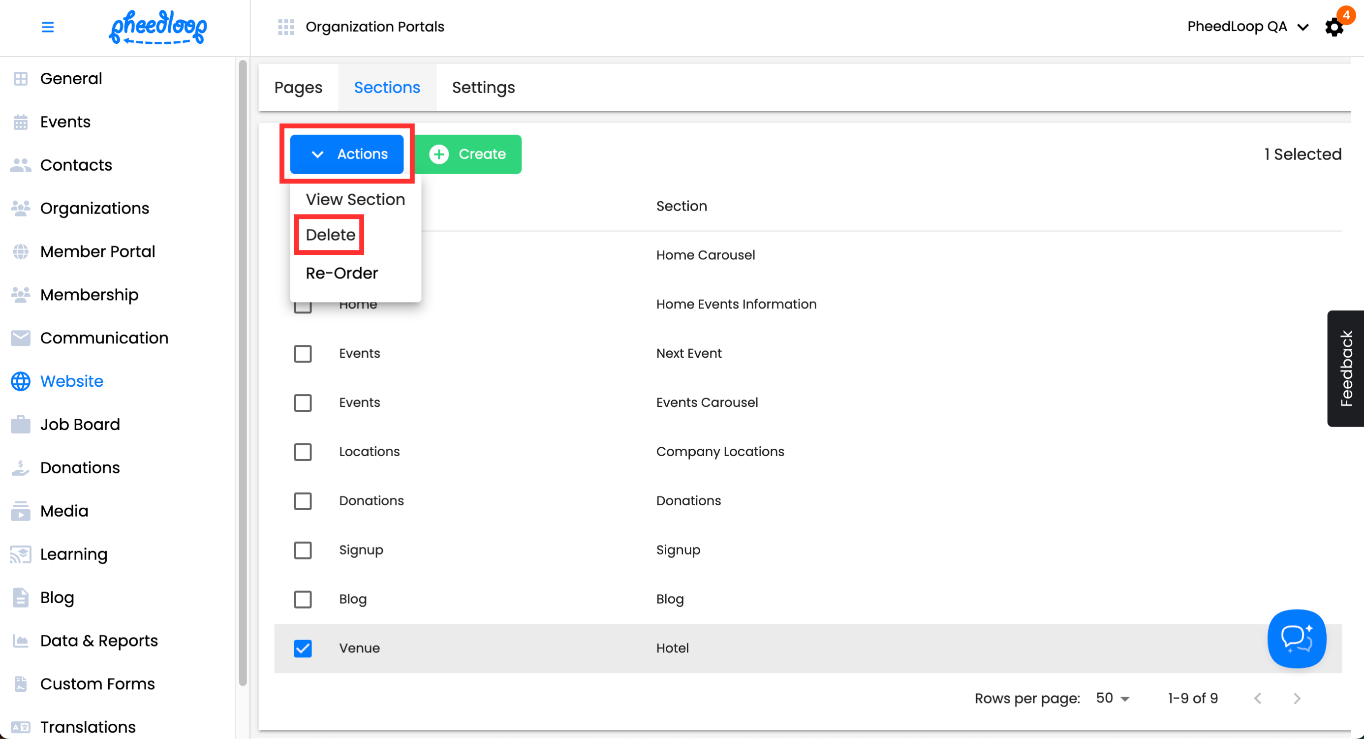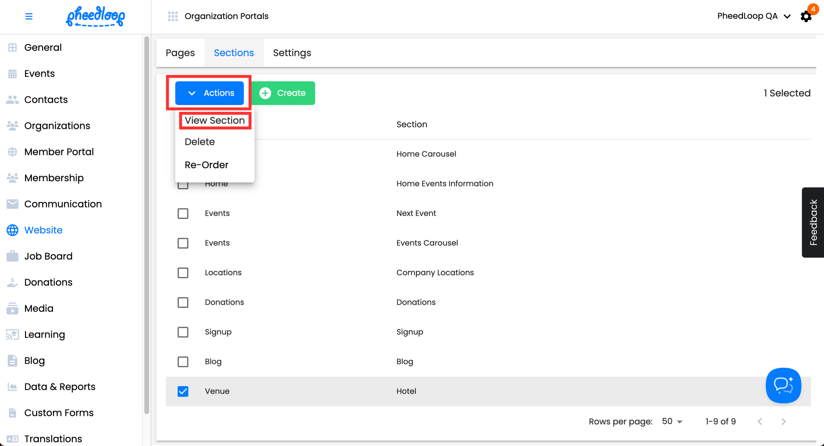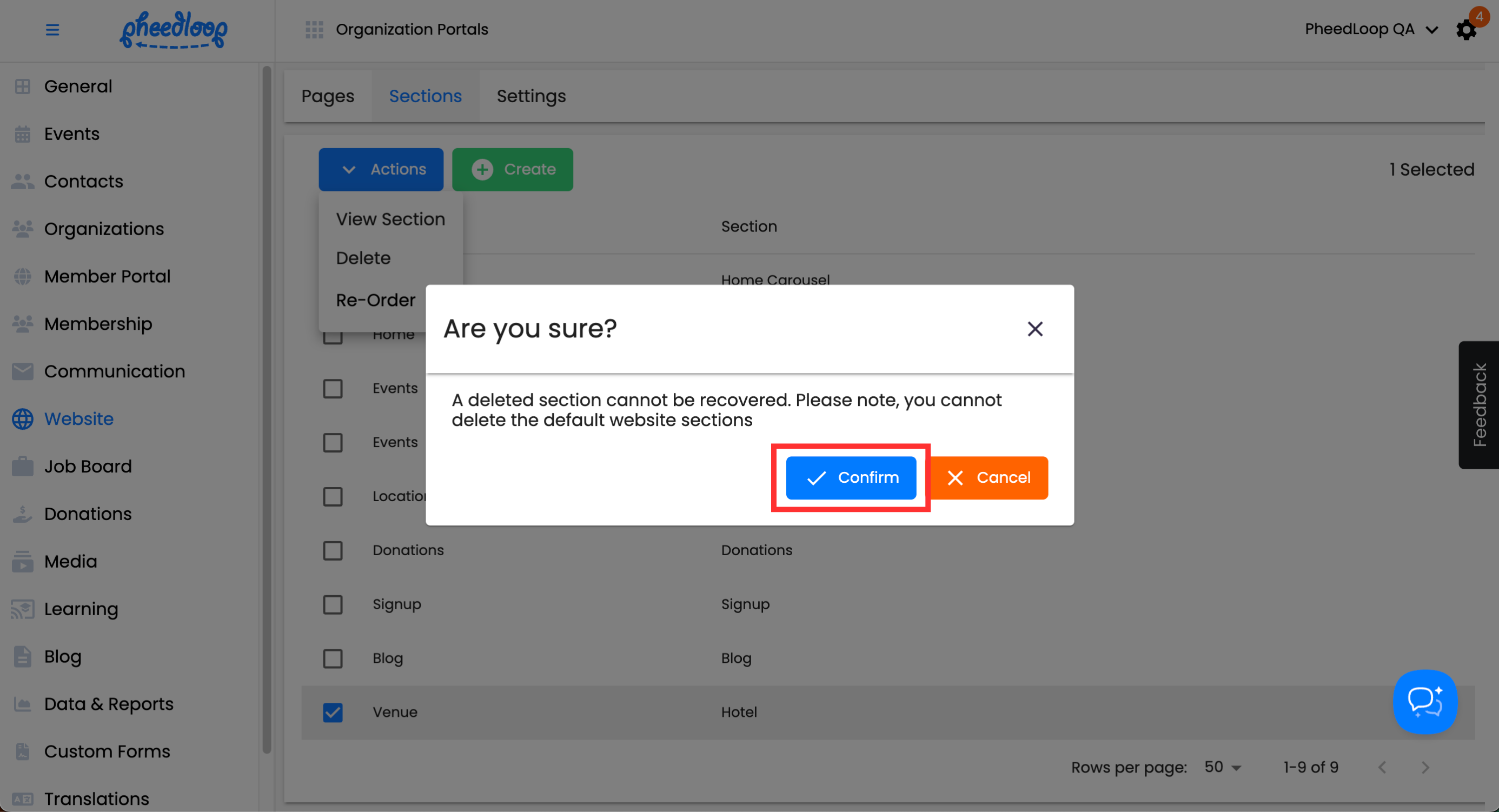 - Toggle on the Hide Section field, if you wish to hide the section in the Organization Website.
