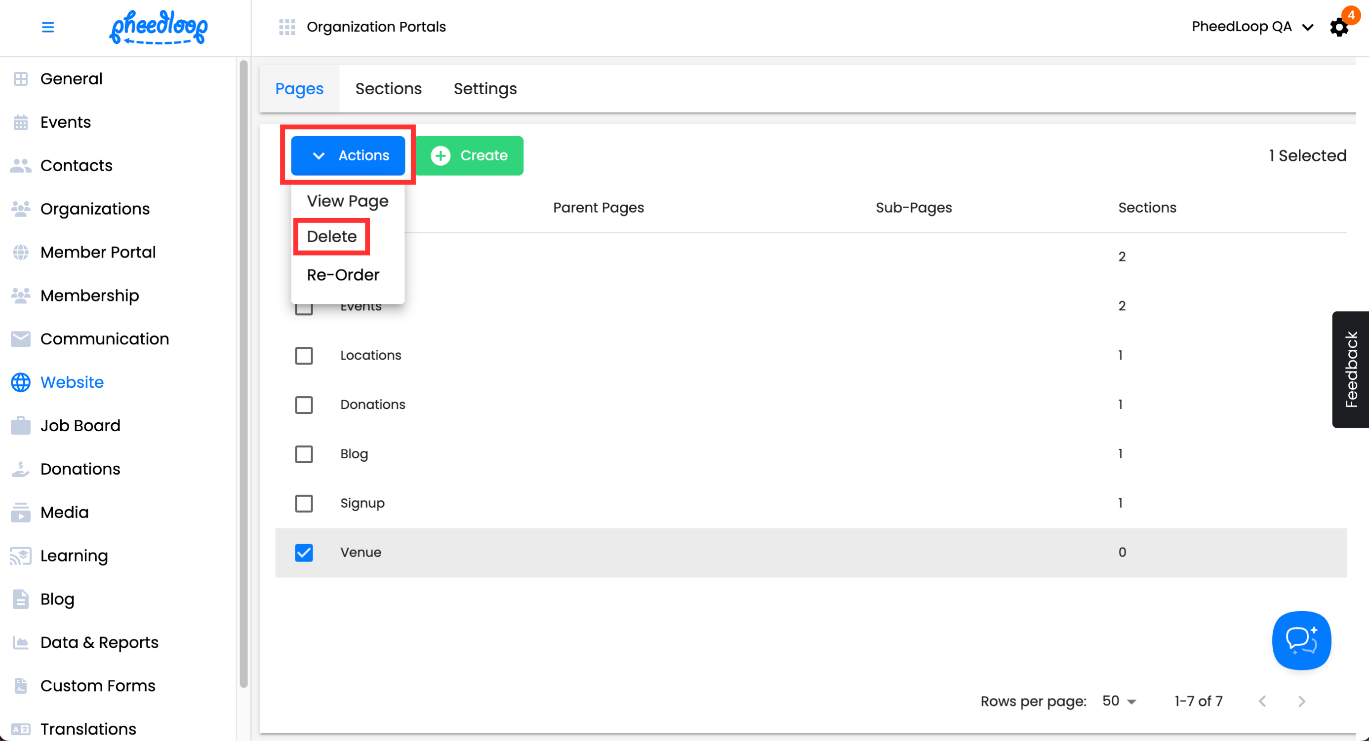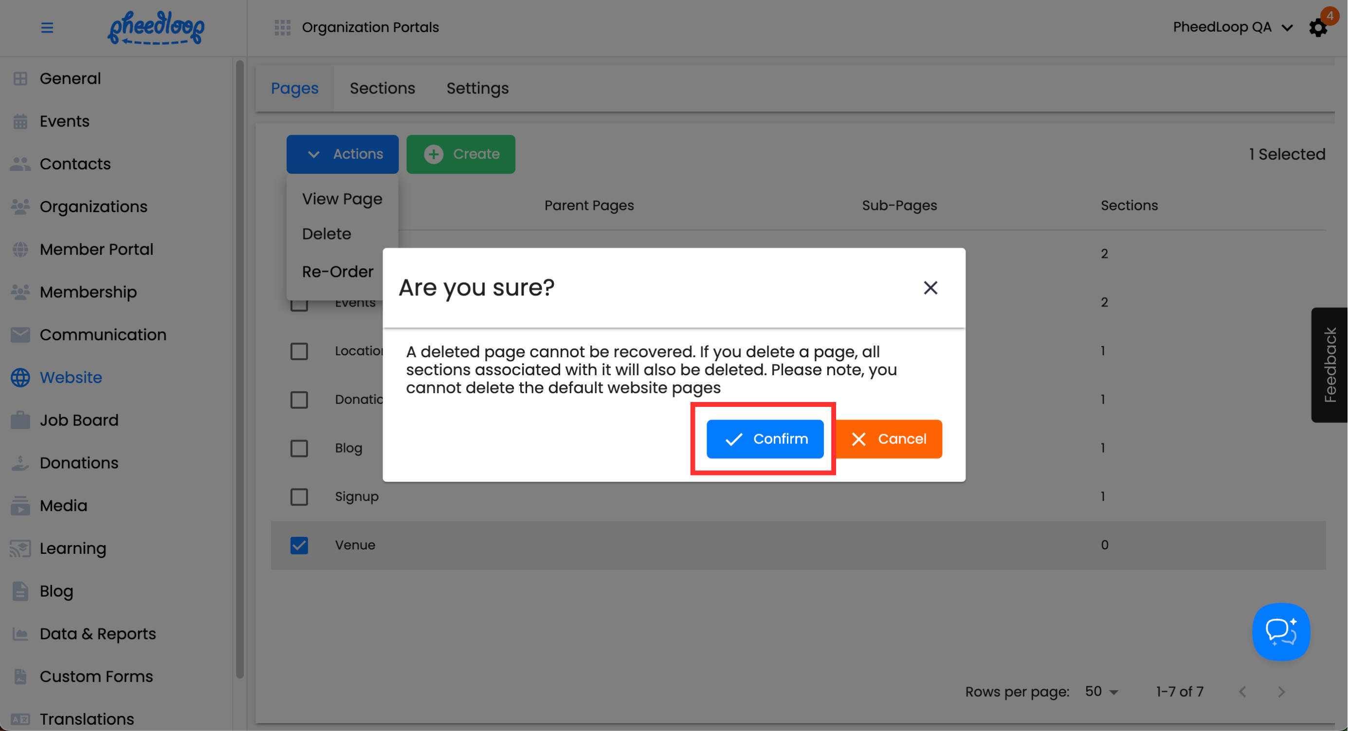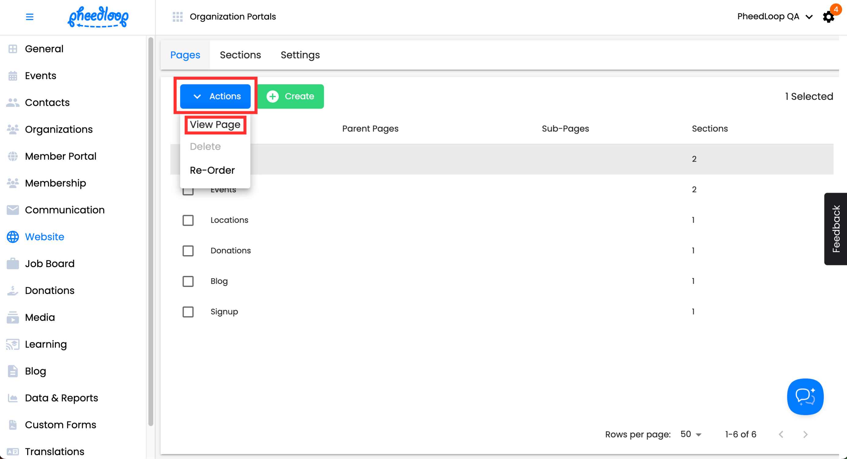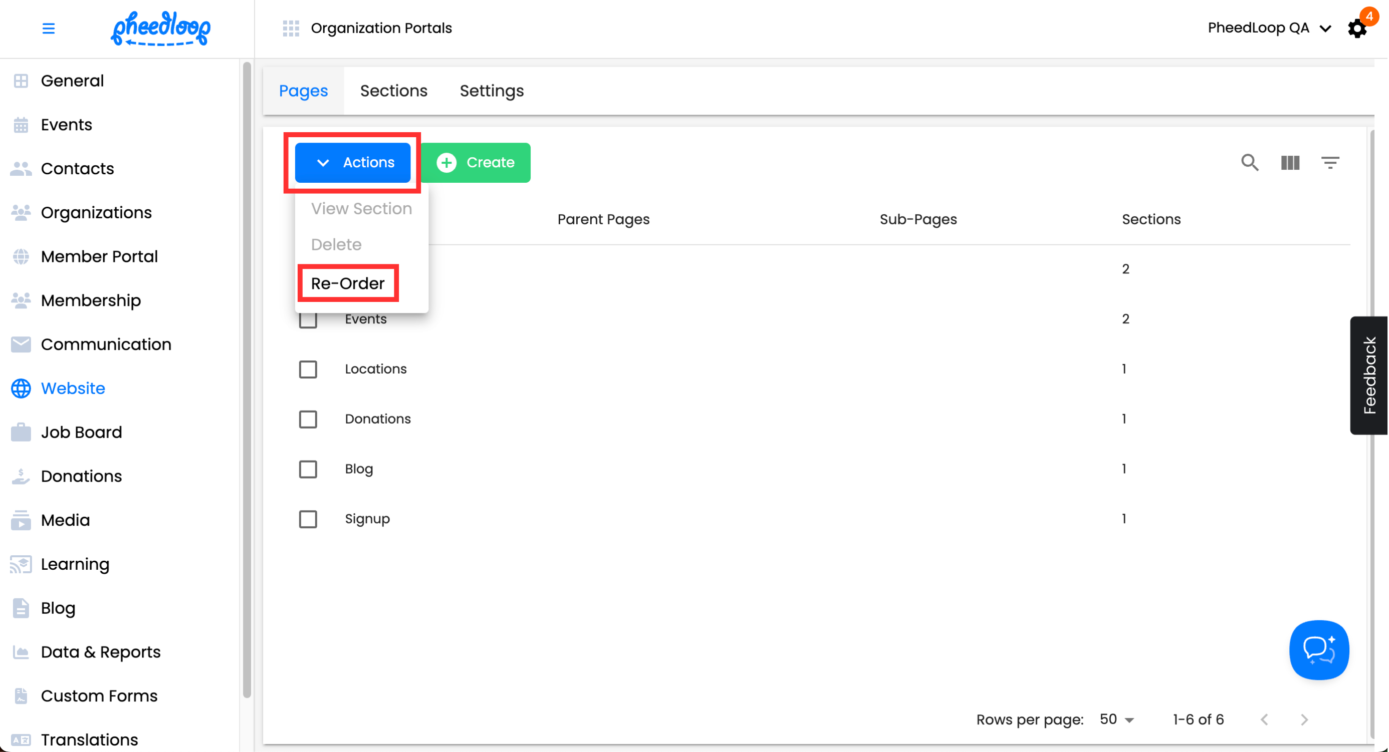- Toggle on the Hide Section field, if you wish to hide the section in the Organization Website.