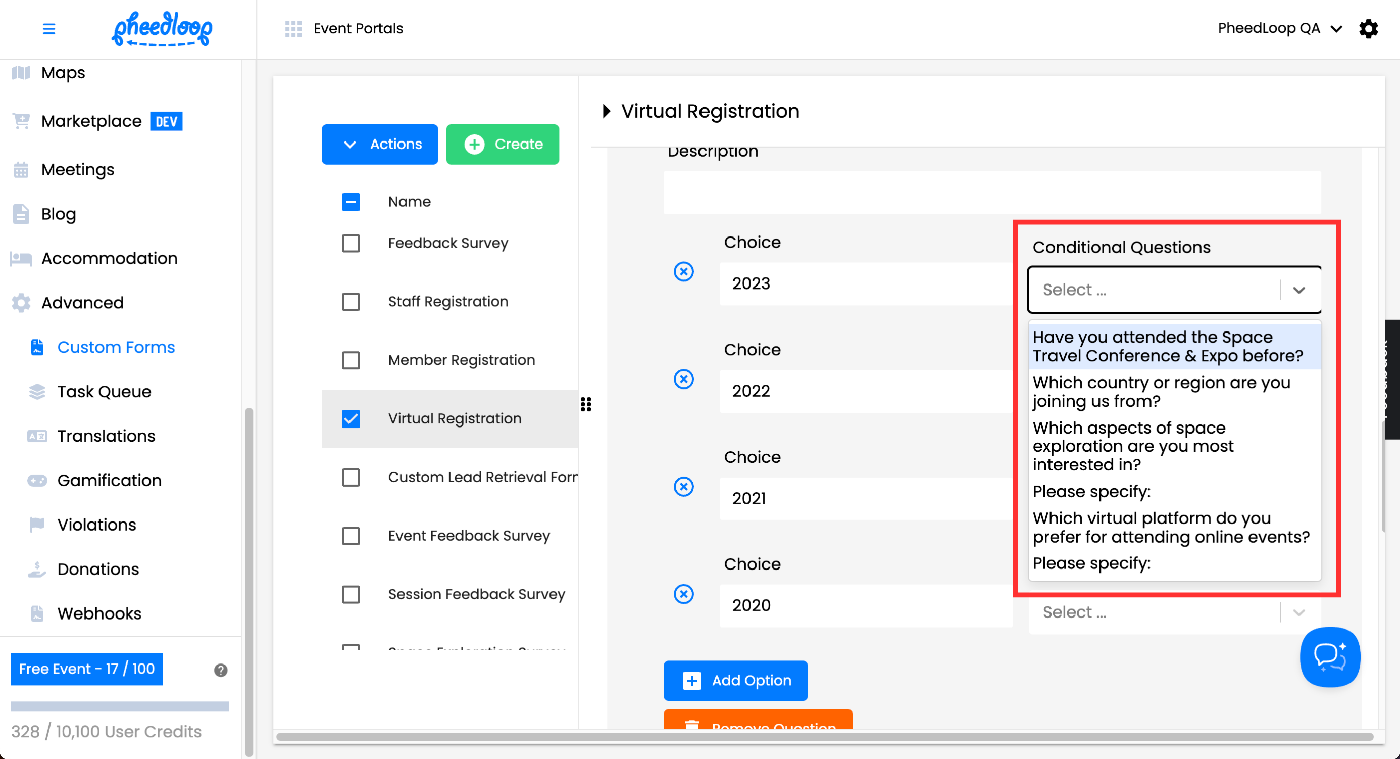 - From the Event Dashboard, navigate to Advanced > Custom Forms