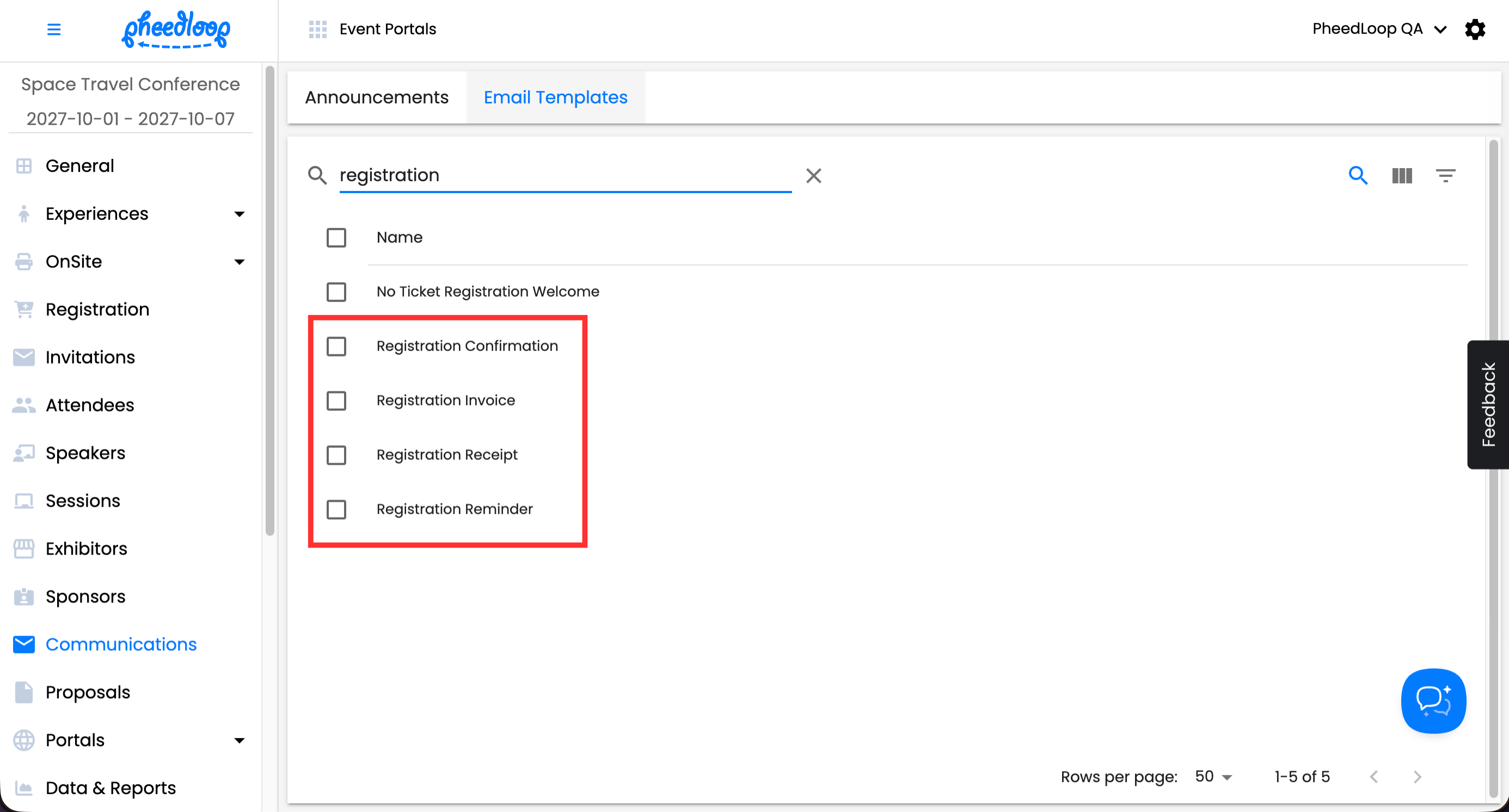 - From the Event Dashboard, navigate to Communications > Email Templates