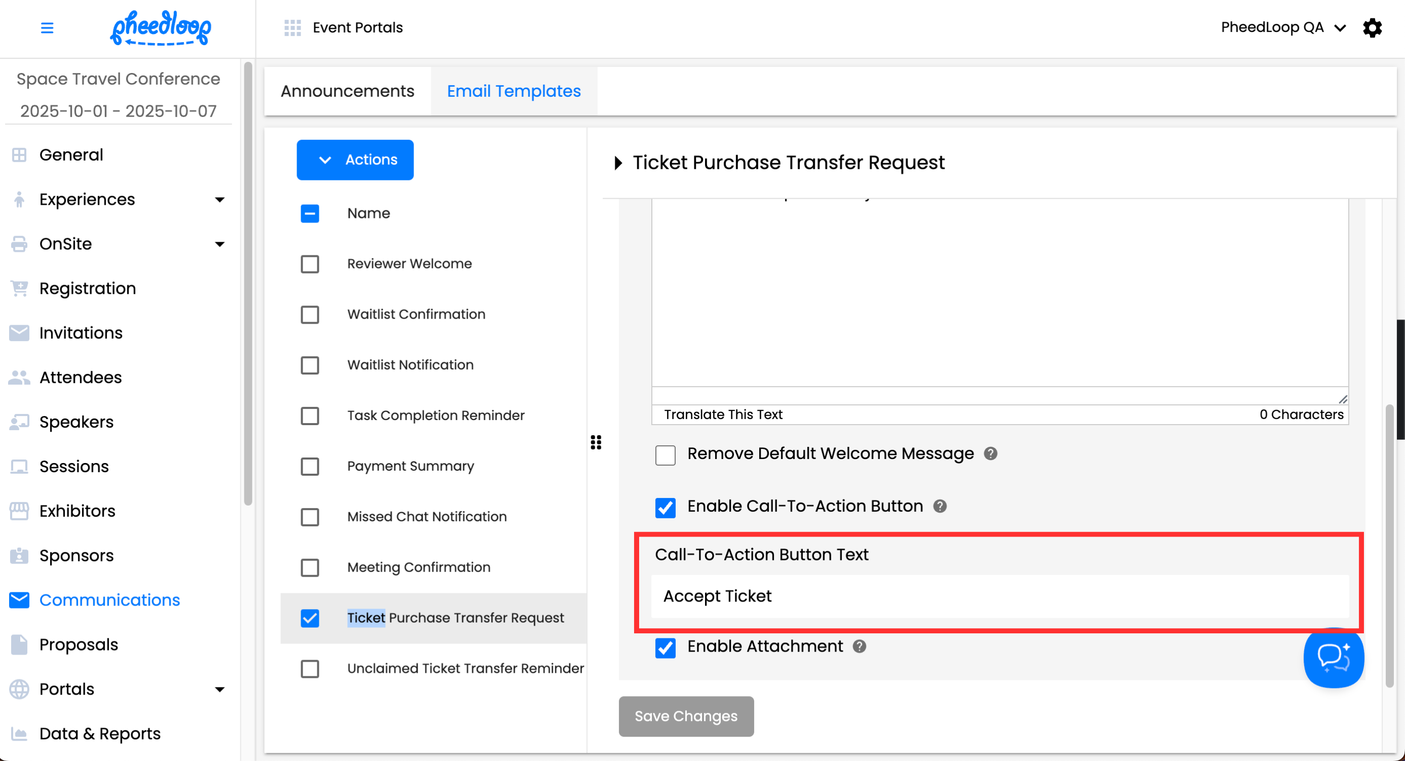 Editing the Ticket Transfer Email Templates