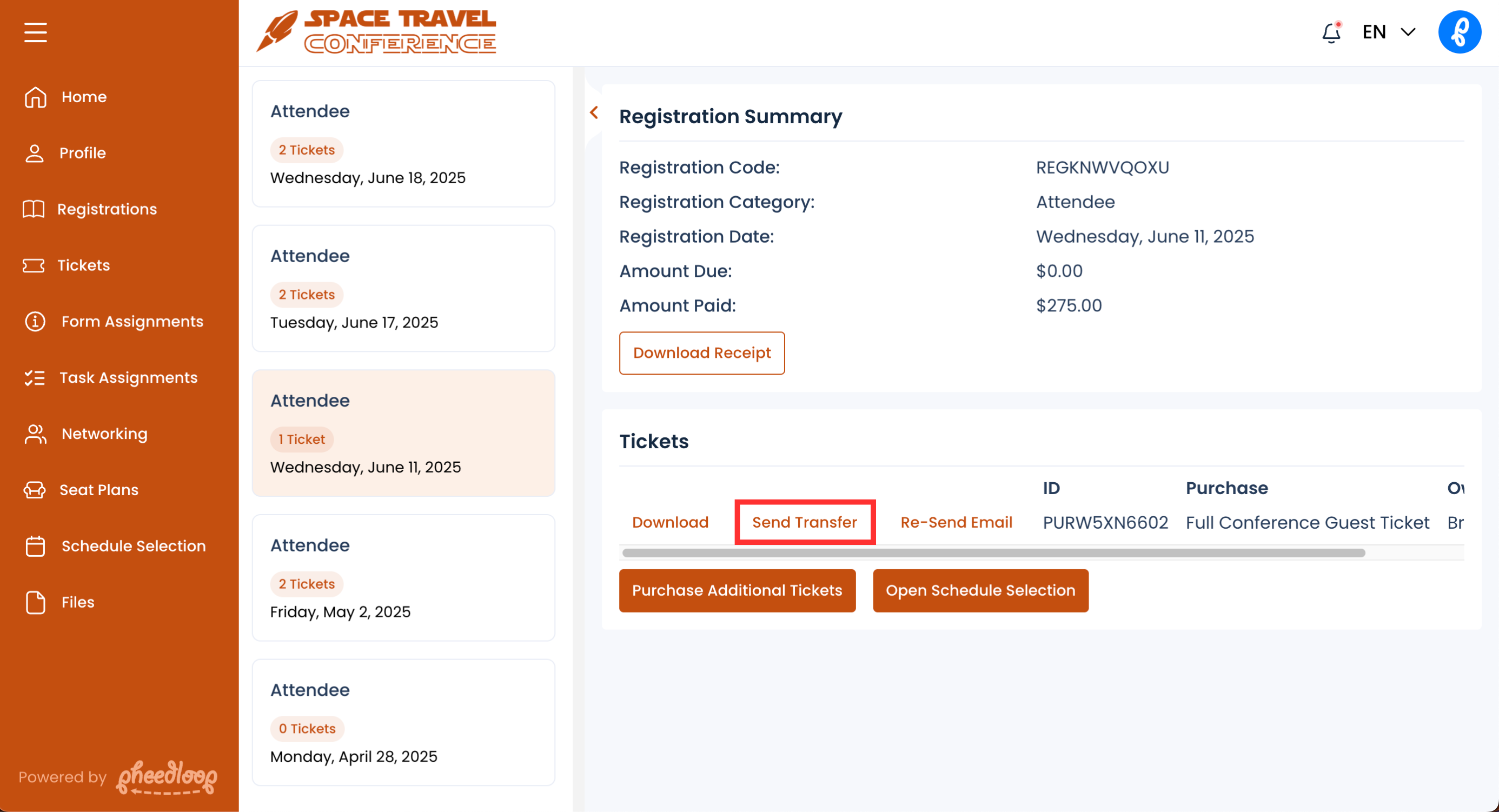 Ticket Transfer as an Attendee