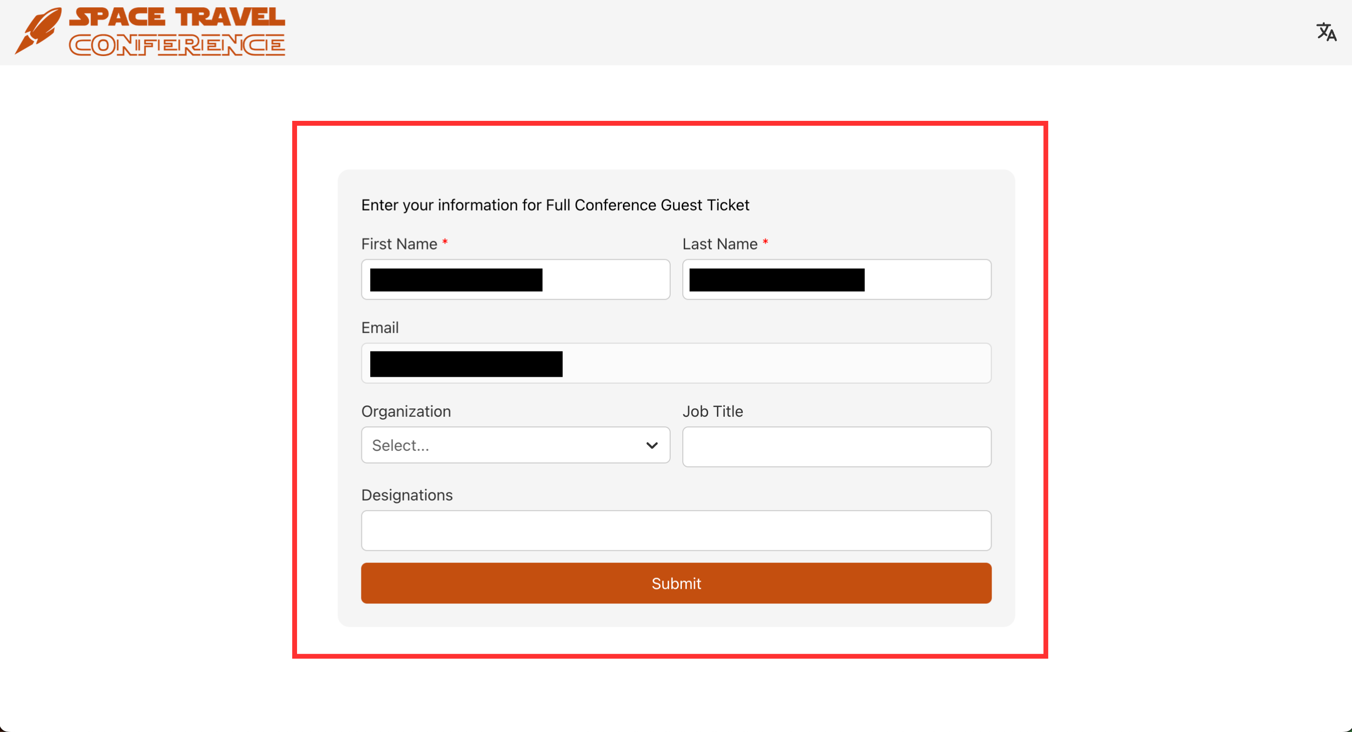 - Fill out the First Name, Last Name, and Email fields